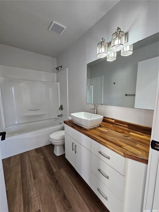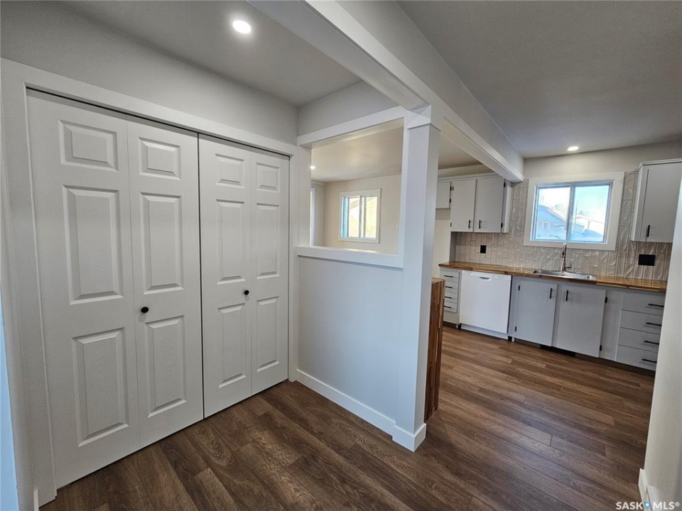 Don't be fooled by the stature of this one's frontage! This home is SPACIOUS inside! This 1444 square foot bungalow has not only seen an addition in its past (2007) bringing it up in size, but also, the whole main floor just saw a massive transformation in aesthetics and functionality in 2025. The current owner eliminated an office and small bedroom to add the large primary bedroom and awesome 5-piece en-suite you see today, featuring it's own soaker tub, a roomy walk-in tiled shower (fully water proofed if you wanted to convert it to a steam shower), a double vanity with 2 blue Vigo glass sinks and space to build custom shelving or a linen closet for storage. The kitchen was updated with fresh paint on the cabinets, new butcher block countertops, fresh tiled backsplash and unique eye-catching butcher block floating shelves. The whole main floor saw new laminate flooring in a soft natural wood tone, fresh white paint, updated hardware, new recessed lighting, plugs and switches throughout. The main floor bathroom was also refreshed with a new tub surround, countertop, sink, lighting, hardware and flooring. The basement is fully developed with 2 rec rooms, 3rd bathroom (also re-done), 2 bedrooms, a craft area and utility room with laundry machines. Outside you'll enjoy the new 13' x 27' deck, large garden plot, a garden shed and an attached single car garage with electric heat and cat door from the home with its own kitty ramp! Other notable features include central air, hot water heater new in 2023, shingles redone in 2021, a sump pump, and central vac with attachments. Great family friendly location with 5 bedrooms and 3 baths just a skip away from the schools and parks! Great value for your money here!