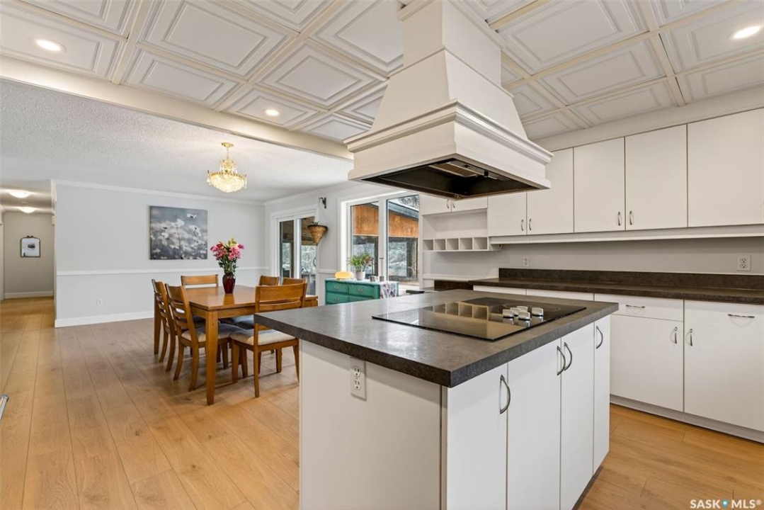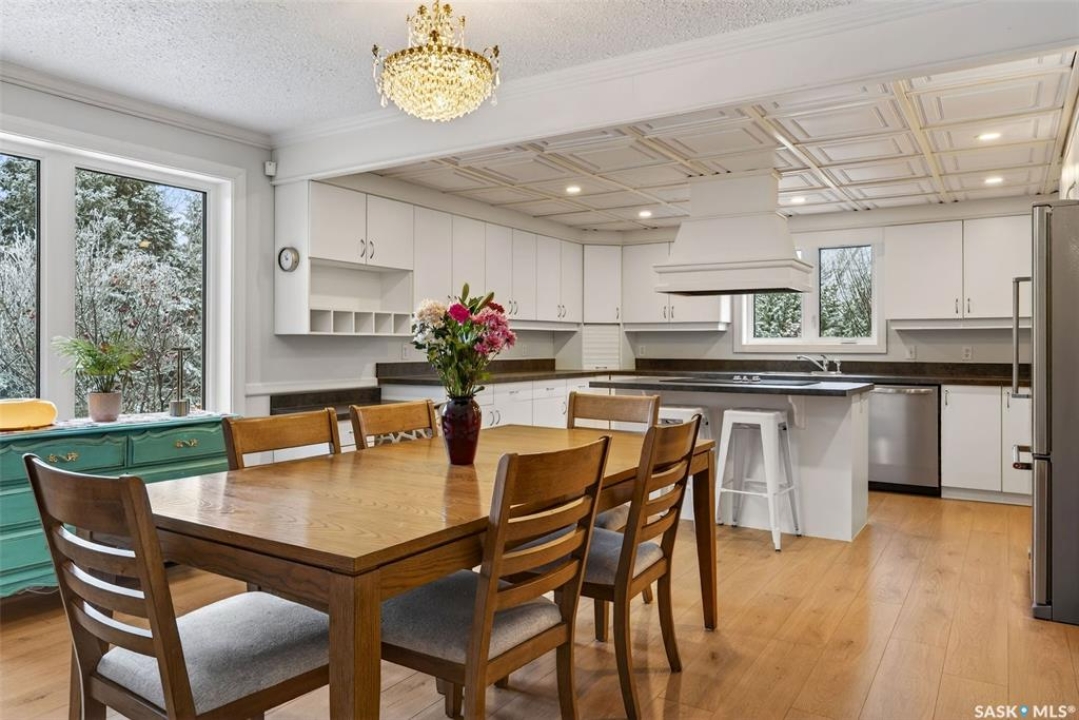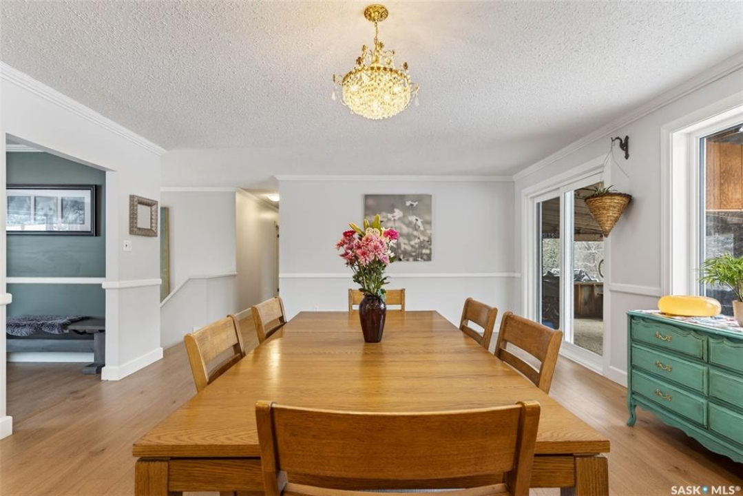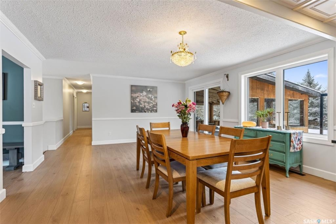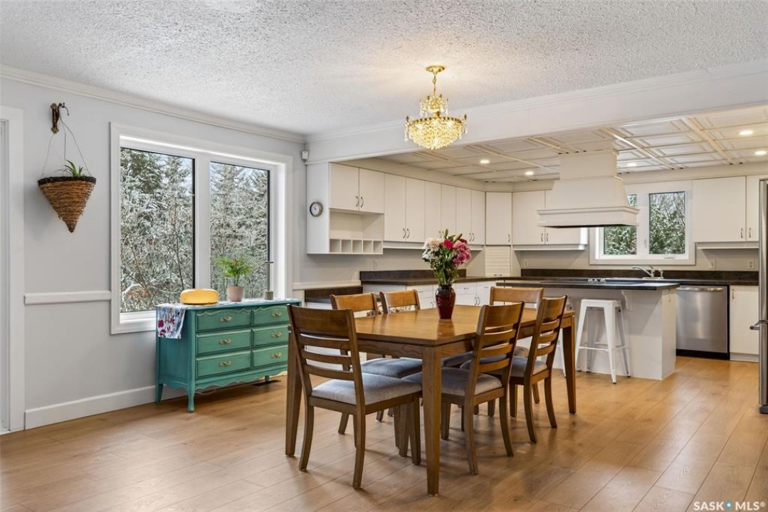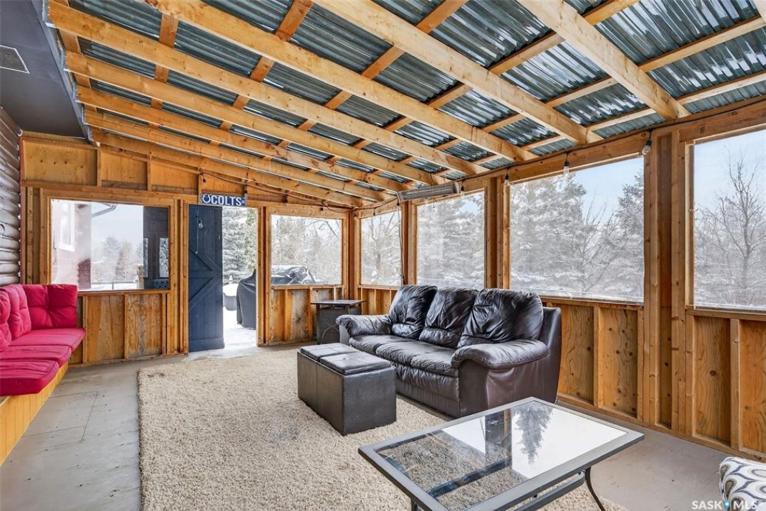 Just five minutes northeast of Prince Albert, this exceptional 1840 square foot extensively renovated raised bungalow with walkout basement sits on 7.48 beautifully treed acres, offering the privacy of country living with the convenience of a quick commute to the city. Fully developed and extensively updated, this five bedroom, three bathroom home is move-in ready and designed for both family living and entertaining. The main floor welcomes you with a massive front entry featuring built-in seating, ideal for acreage life. The bright, spacious layout includes a large kitchen with island and abundant cabinetry, flowing into the dining area with sliding doors leading to a three season sunroom and massive back deck overlooking the 18' x 32' above ground heated pool. The living room is anchored by a cozy gas fireplace, creating a warm and inviting gathering space. A four piece bathroom and three generously sized bedrooms complete the level. The primary suite features a walk-in closet, second closet, and private four piece ensuite. The fully developed walkout lower level offers excellent additional living space with a mudroom entry, large rec room with slate pool table included, games area, cold room, storage, two additional bedrooms (one currently used as an large office or family room), and laundry/utility area. Recent upgrades include new flooring throughout (2025), windows (2022), shingles on the home and triple detached garage (2025), solar panels (2026), exterior doors (2025), rebuilt furnace (2025), new water heater and water softener (2025), and serviced central air, sunroom & chain link fence (2016). Outside feels like your own private park with mature trees, an orchard with apple, plum and chokecherry trees, an 18 × 33 above ground pool with natural gas heater, triple detached garage, fenced yard, huge custom firepit and tree house and close access to quad trails.