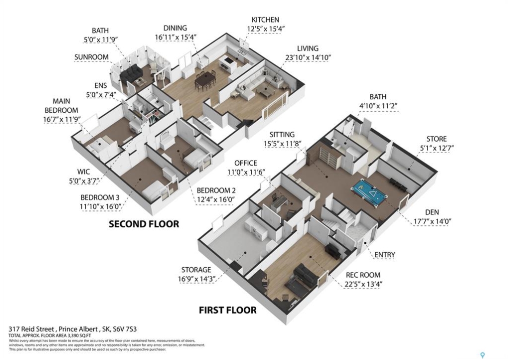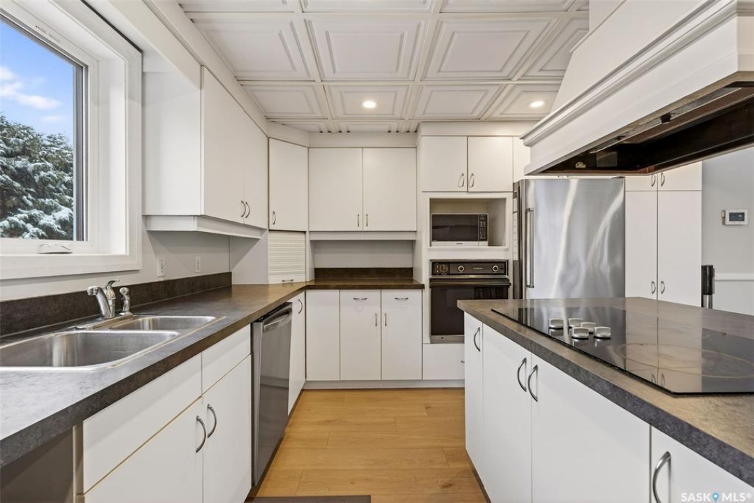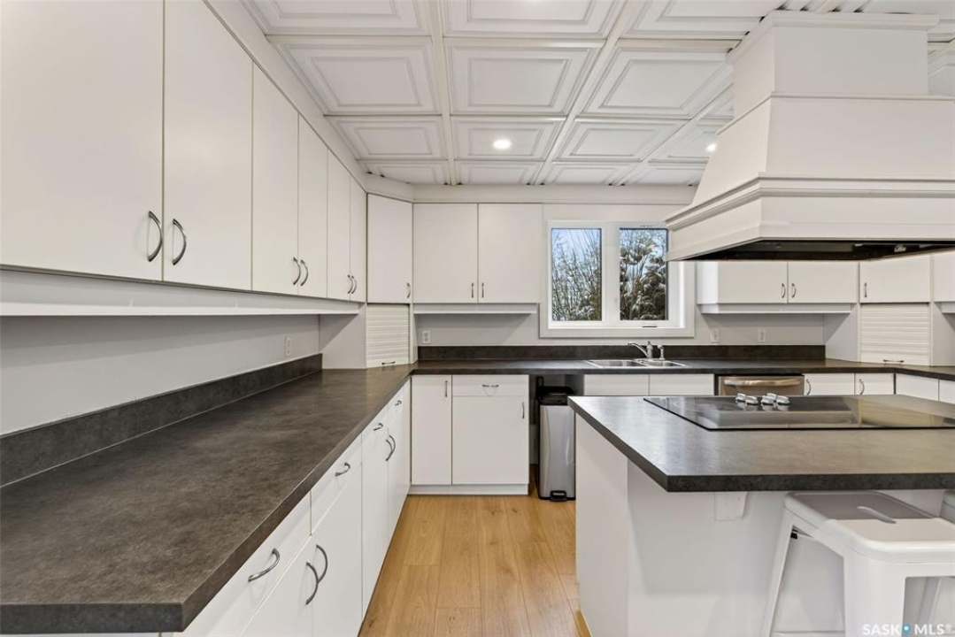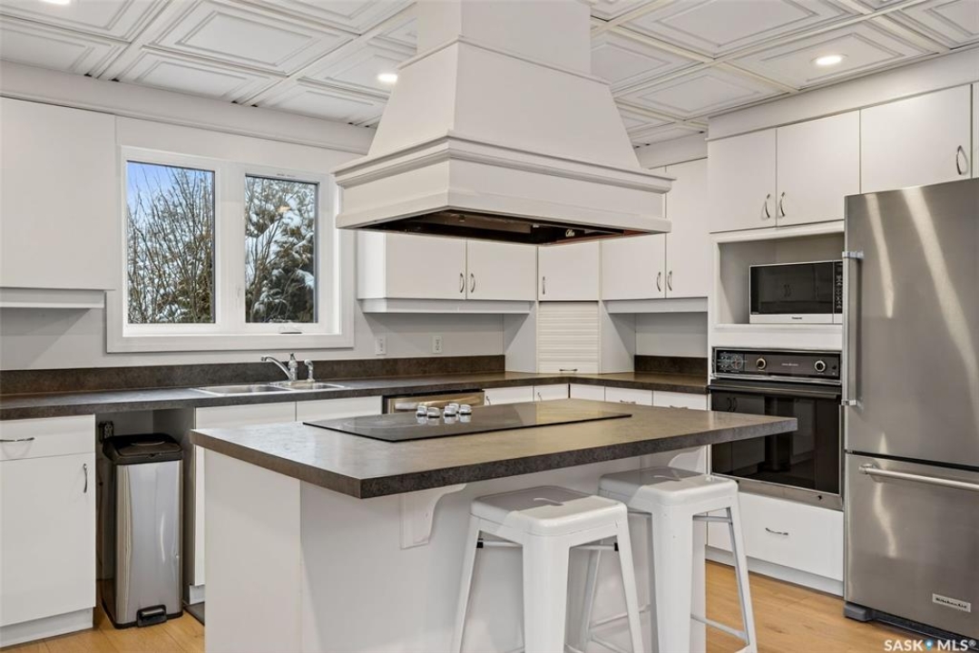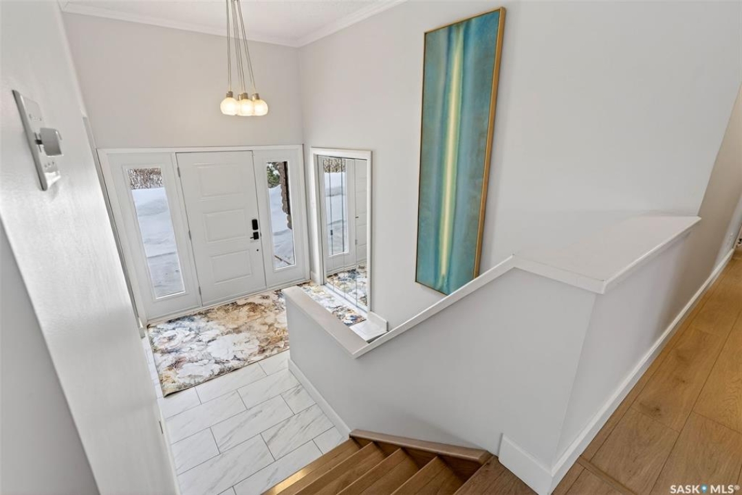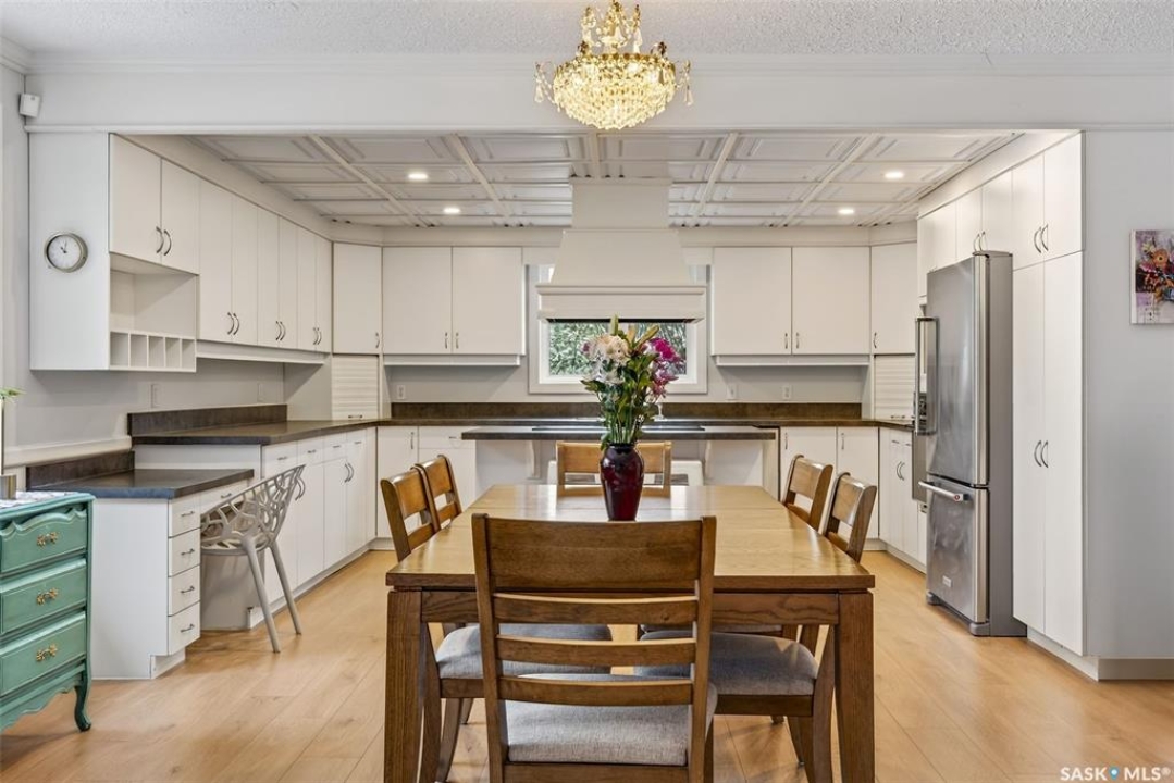 Just five minutes northeast of Prince Albert, this exceptional 1840 square foot extensively renovated raised bungalow with walkout basement sits on 7.48 beautifully treed acres, offering the privacy of country living with the convenience of a quick commute to the city. Fully developed and extensively updated, this five bedroom, three bathroom home is move-in ready and designed for both family living and entertaining. The main floor welcomes you with a massive front entry featuring built-in seating, ideal for acreage life. The bright, spacious layout includes a large kitchen with island and abundant cabinetry, flowing into the dining area with sliding doors leading to a three season sunroom and massive back deck overlooking the 18' x 32' above ground heated pool. The living room is anchored by a cozy gas fireplace, creating a warm and inviting gathering space. A four piece bathroom and three generously sized bedrooms complete the level. The primary suite features a walk-in closet, second closet, and private four piece ensuite. The fully developed walkout lower level offers excellent additional living space with a mudroom entry, large rec room with slate pool table included, games area, cold room, storage, two additional bedrooms (one currently used as an large office or family room), and laundry/utility area. Recent upgrades include new flooring throughout (2025), windows (2022), shingles on the home and triple detached garage (2025), solar panels (2026), exterior doors (2025), rebuilt furnace (2025), new water heater and water softener (2025), and serviced central air, sunroom & chain link fence (2016). Outside feels like your own private park with mature trees, an orchard with apple, plum and chokecherry trees, an 18 × 33 above ground pool with natural gas heater, triple detached garage, fenced yard, huge custom firepit and tree house and close access to quad trails.