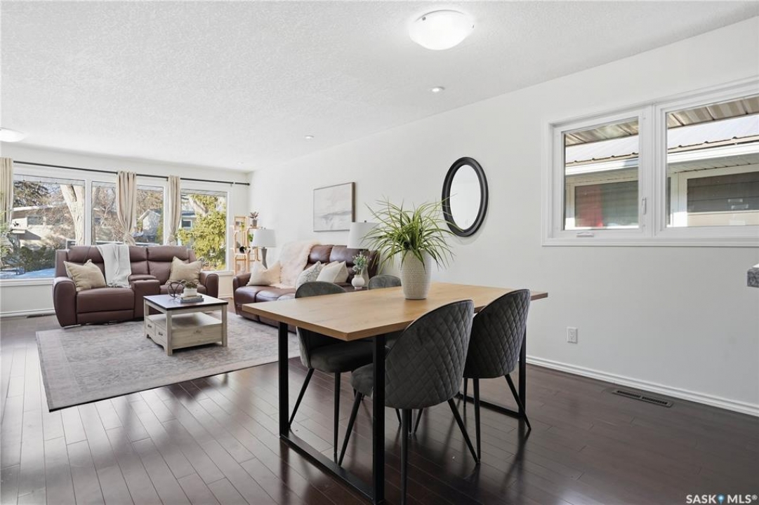 Welcome to this spacious, over 1,300 sq. ft. bungalow, ideally situated on a generous 60 x 109 ft. lot in a quiet, tucked-away crescent in highly sought-after Hillsdale. With 6 bedrooms, 3 bathrooms, and a flexible layout, this home offers exceptional space and comfort for families, multi-generational living, or anyone seeking room to grow. The thoughtfully updated main floor features an open-concept living, dining, and kitchen area that creates a warm, inviting space for everyday living and entertaining. Most main-floor windows have been upgraded to PVC, and the primary bedroom includes a convenient 2-piece ensuite, while a full bathroom serves the additional bedrooms. The fully developed basement adds even more versatility, offering a non-regulated mortgage helper suite—an ideal setup for students attending nearby, University of Regina. Complete with separate entry, a kitchenette, living and dining area, and 3 additional bedroom spaces. Laundry is conveniently located in the utility room. Step outside and enjoy the fully fenced backyard with a new fence (2025), perfect for relaxing, entertaining, or family activities. Just a one-minute stroll away is Munroe Park, a beautiful green space ideal for recreation, sports, and leisurely walks. With convenient backyard access to the park, it truly feels like an extension of your outdoor living space. Additional highlights include a detached double garage, central air conditioning, high-efficiency furnace (2009), updated electrical panel, and quick possession available. This is a rare opportunity to own a spacious, well-located home in one of Regina's most desirable neighbourhoods. Contact your agent today to book your private showing.