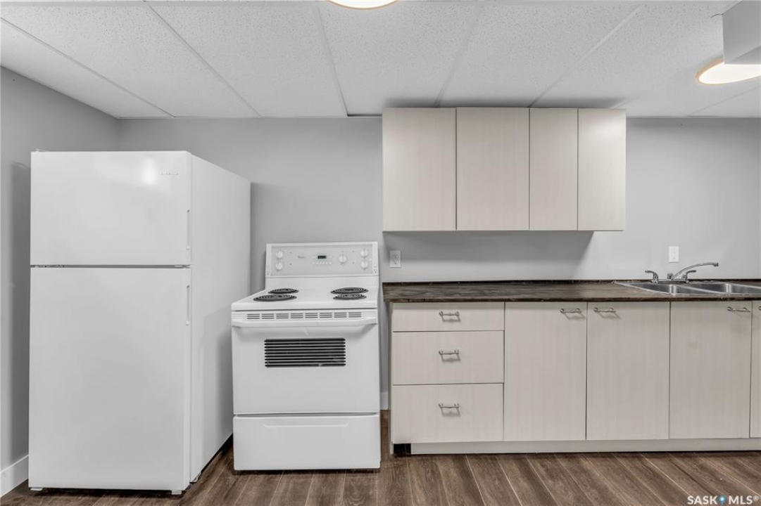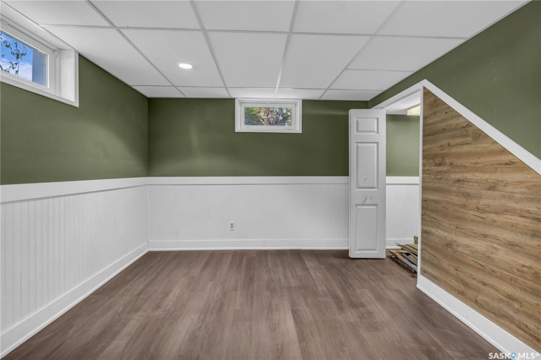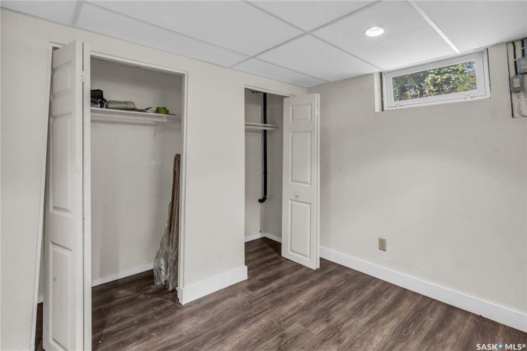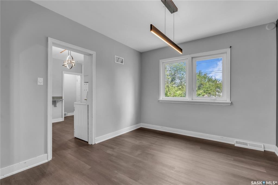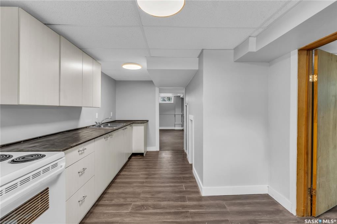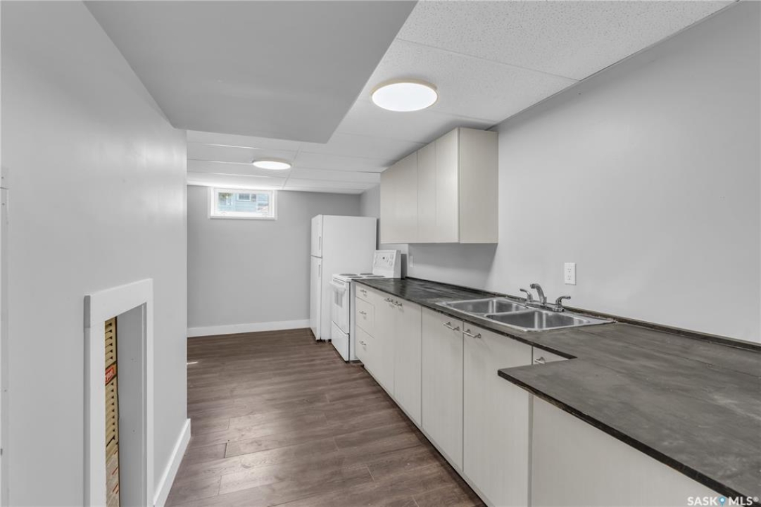 Charming bungalow on a large corner lot in a great location! This bright and inviting 960 sq ft home features a sun-filled main floor with two bedrooms, a full bathroom and one bedroom + den basement suite. Recent upgrades in 2025 include vinyl plank flooring, modern lighting, and fresh interior paint, while the exterior was repainted in 2019 to enhance curb appeal. The fully developed basement offers even more value with a non-conforming suite, ideal for extended family or potential rental income. It includes a kitchenette with appliances, one spacious bedroom + den, and a beautifully renovated bathroom/laundry area. Additional features include a newer water heater, some updated windows, new ceiling tiles in the basement, and a fully fenced yard with a storage shed—perfect for pets, kids, or relaxing summer BBQs. Located directly behind John Paul II Collegiate and close to parks, shopping, and amenities, this home offers excellent value for first-time buyers, investors, or those looking to downsize. Book your private showing today.