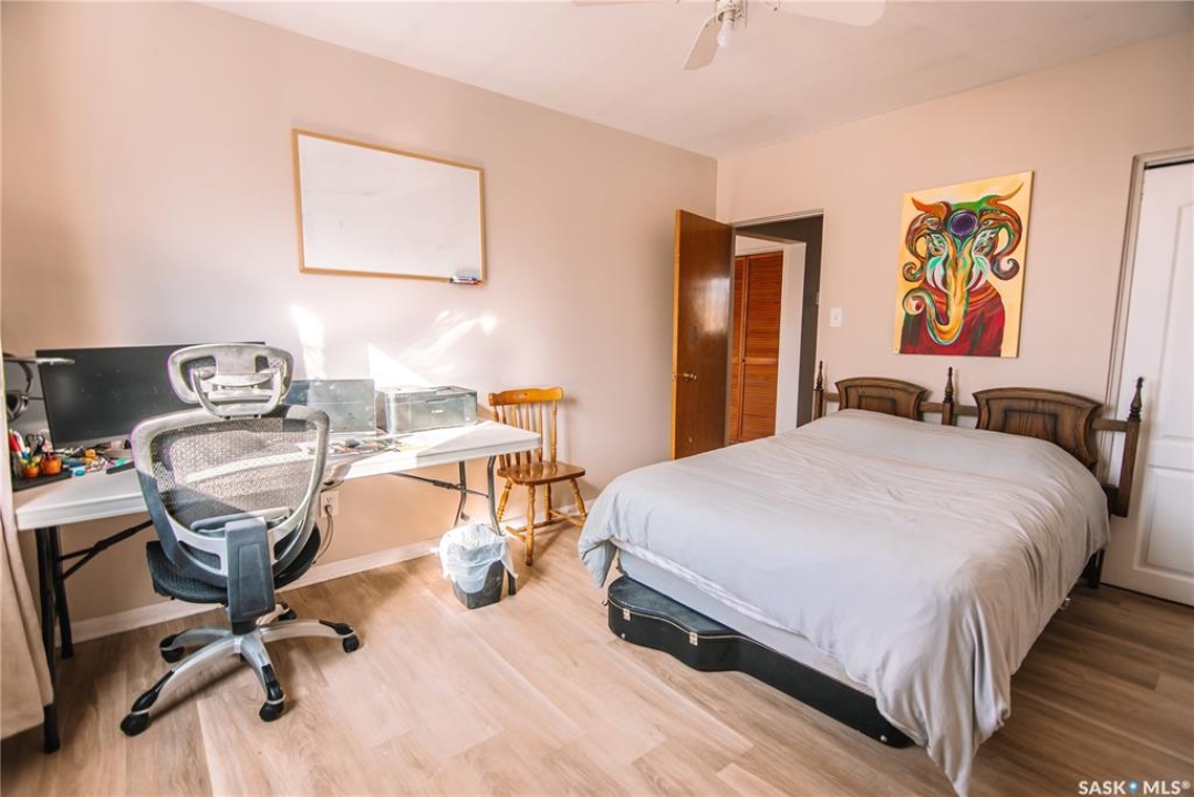 Located in an exceptional south Regina location just steps from the scenic walking and biking paths of Wascana Park and the family-friendly attractions of Candy Cane Park, this well-maintained two-bedroom, one-bathroom condo in Douglas Place offers comfortable living with excellent access to outdoor recreation and city amenities. Situated on the top floor, this unit benefits from added privacy and an abundance of natural light that fills the living spaces throughout the day. Upon entering the suite, you are welcomed into a spacious living room featuring hardwood flooring and large windows that create a bright and inviting atmosphere. The adjoining kitchen offers ample cabinet and counter space providing a functional layout for everyday cooking and entertaining. The unit features two well-sized bedrooms, offering flexibility for a guest room, home office, or additional living space. A full four-piece bathroom completes the interior layout. The courtyard includes a deck and BBQ area available for owners to use, adding to the community atmosphere of the complex. One electrified parking stall is included with the unit, and the monthly condo fees are a reasonable $350, helping keep ownership affordable while covering the maintenance of common areas and building amenities. Whether you are a first-time buyer, student, or someone looking to be close to Regina's beautiful Wascana Centre, this top-floor condo offers a great combination of location, value, and comfortable living.