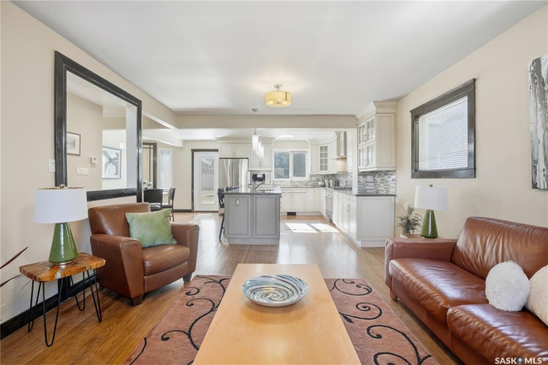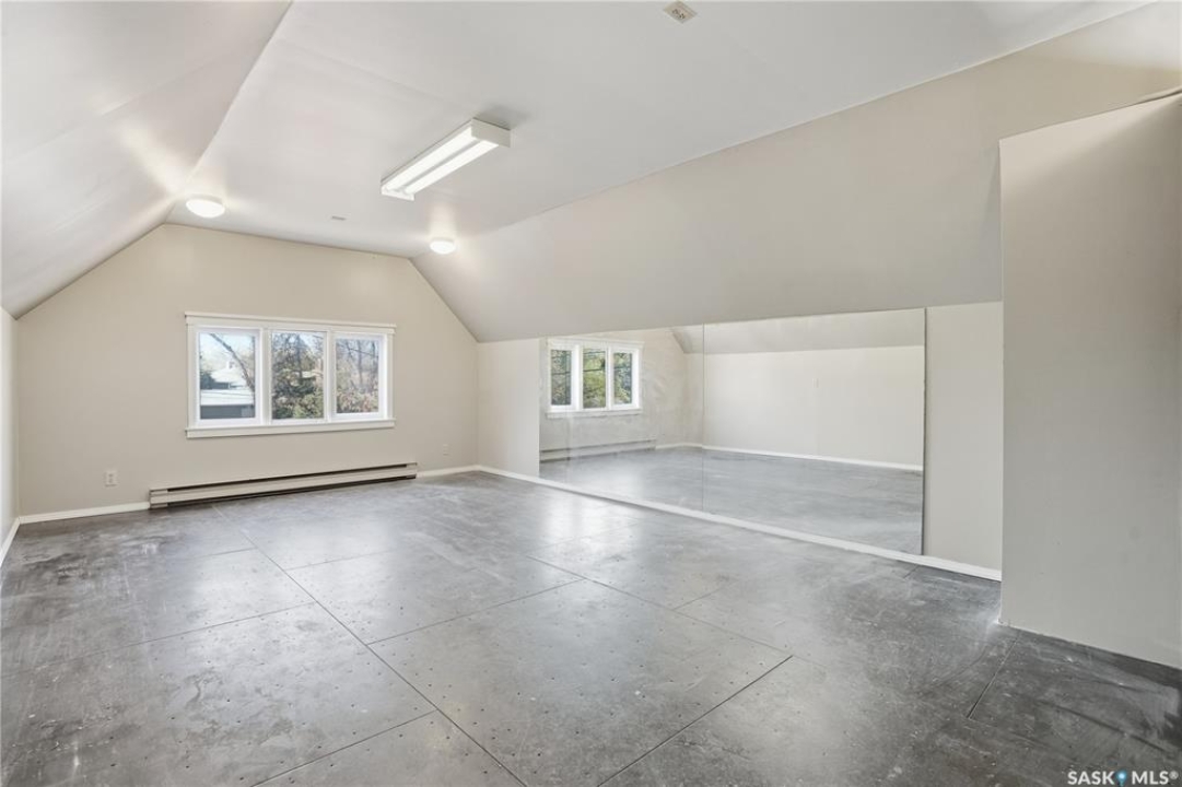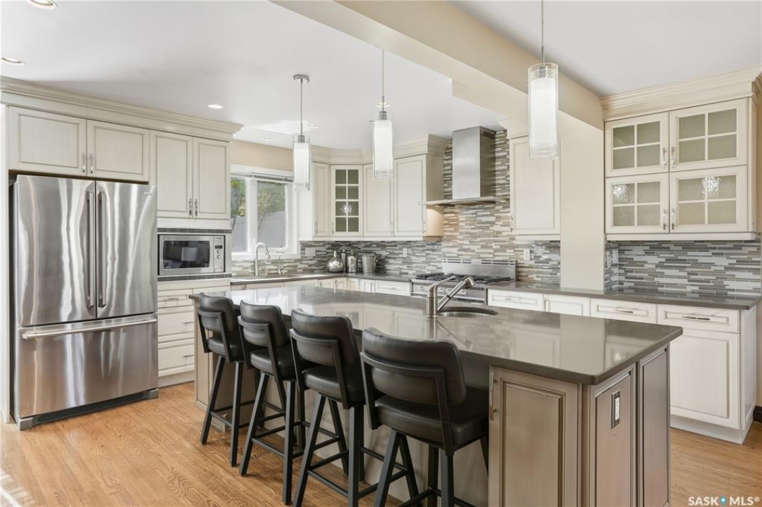 Unique Lakeview Residence in a Premiere Location! Wascana Park, the Norman Mackenzie Gallery and Great Schools are all within walking distance. The inviting foyer leads into a spacious living room with its feature fireplace and display shelves, overlooking a sunroom with huge south-facing windows that fill both rooms with beautiful sunlight all year round. The perfect powder room is conveniently tucked away off the sunroom. Step down into the versatile family room, dining room and kitchen combination—fantastic for entertaining or daily family life. The gorgeous custom kitchen features quartz countertops, stainless steel appliances including a gas stove, an abundance of cabinets, and an immense sit-up island. This open area also has dual-aspect windows to capture natural light throughout the day and walks out to the back patio, while the sunroom opens to the deck—creating a seamless indoor-outdoor living experience. Upstairs are the first three bedrooms and a family bath, with one bedroom large enough to serve as a second primary suite. A few steps up are two more bedrooms. The main primary bedroom features a lovely fireplace, a spa-inspired ensuite, and access to a large private balcony overlooking the yard. The bedroom near the primary suite would be an ideal office, nursery or fabulous closet. The lower level offers laundry facilities and a long row of built-in storage cabinets. The backyard is private and spacious, featuring a detached heated garage with a bonus 13'4" x 20' loft/studio above. Outfitted with a rubber floor and mirrored wall, it's perfect for a gym, yoga or dance studio, home office, or creative space. The front of the home offers an exposed aggregate double driveway for additional parking, plus space in the backyard for a playset or additional parking if desired. New Furnace 2025, Shingles 2018, Attic Spray Foam Insulation 2014, 2 x 100 Amp Panels, 220 Garage Service. Book your private showing today to experience this truly one-of-a-kind property!