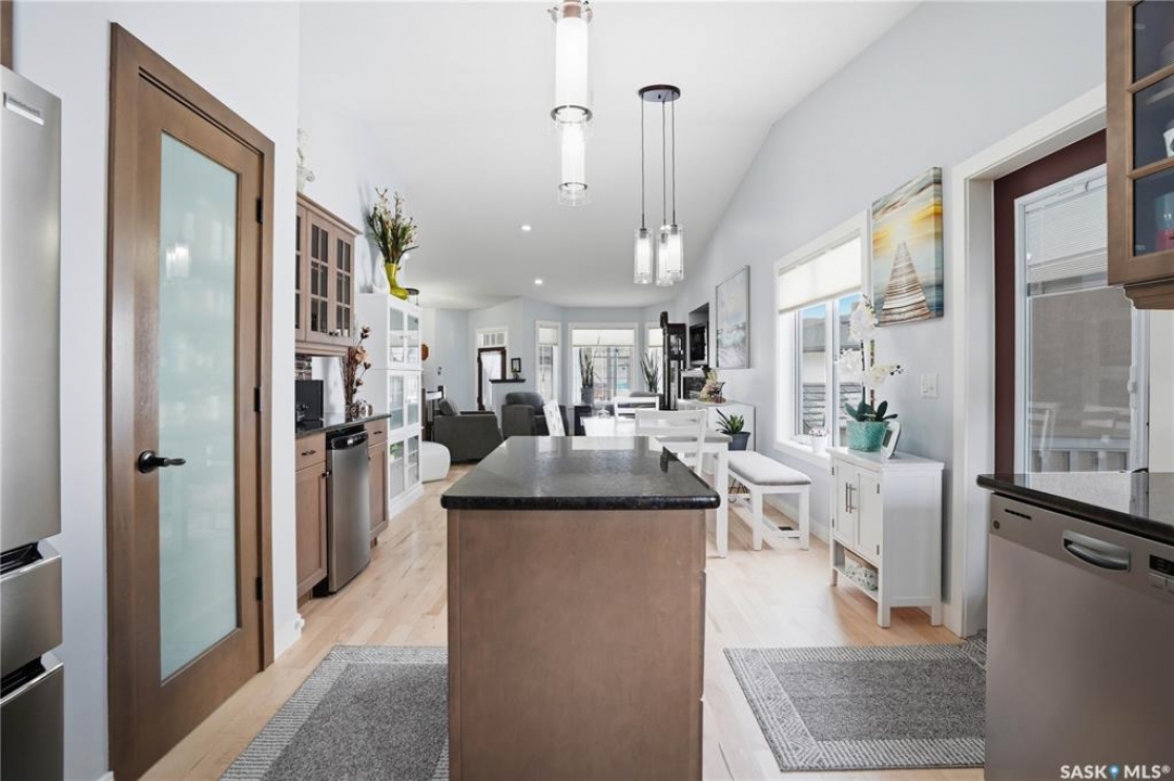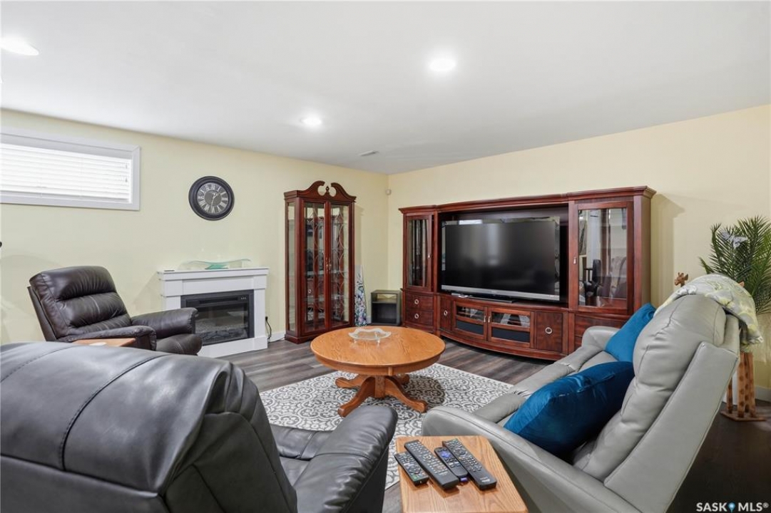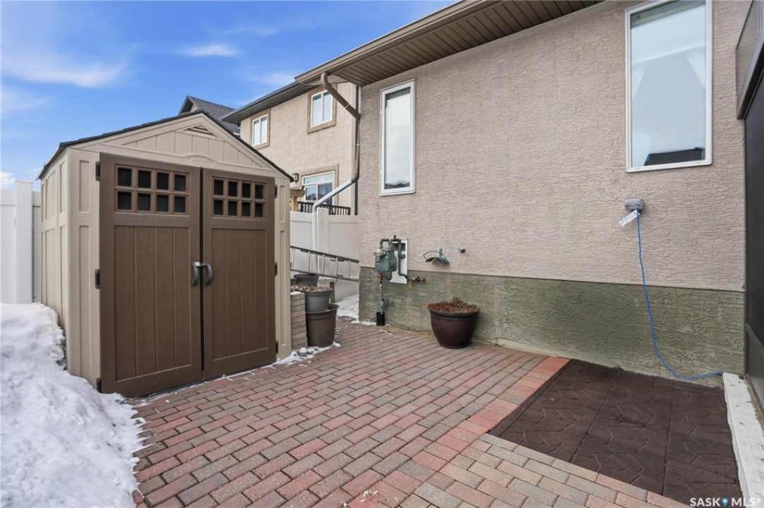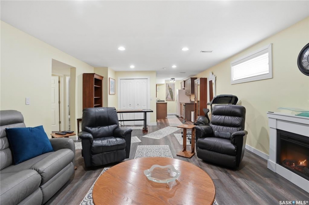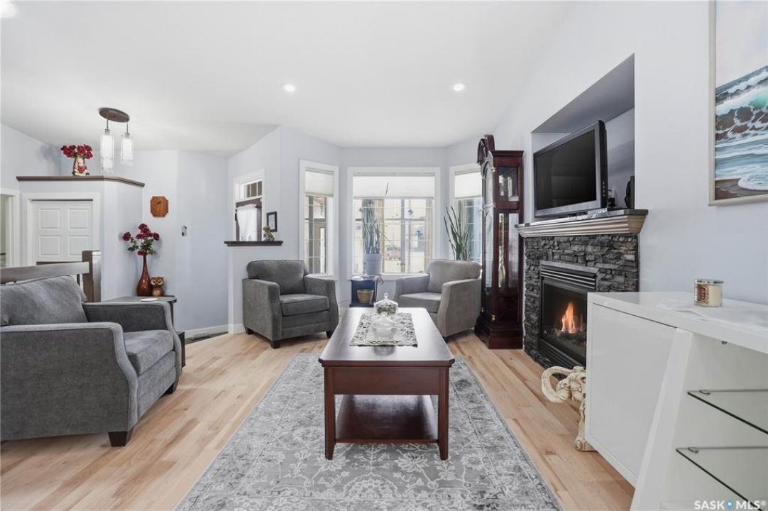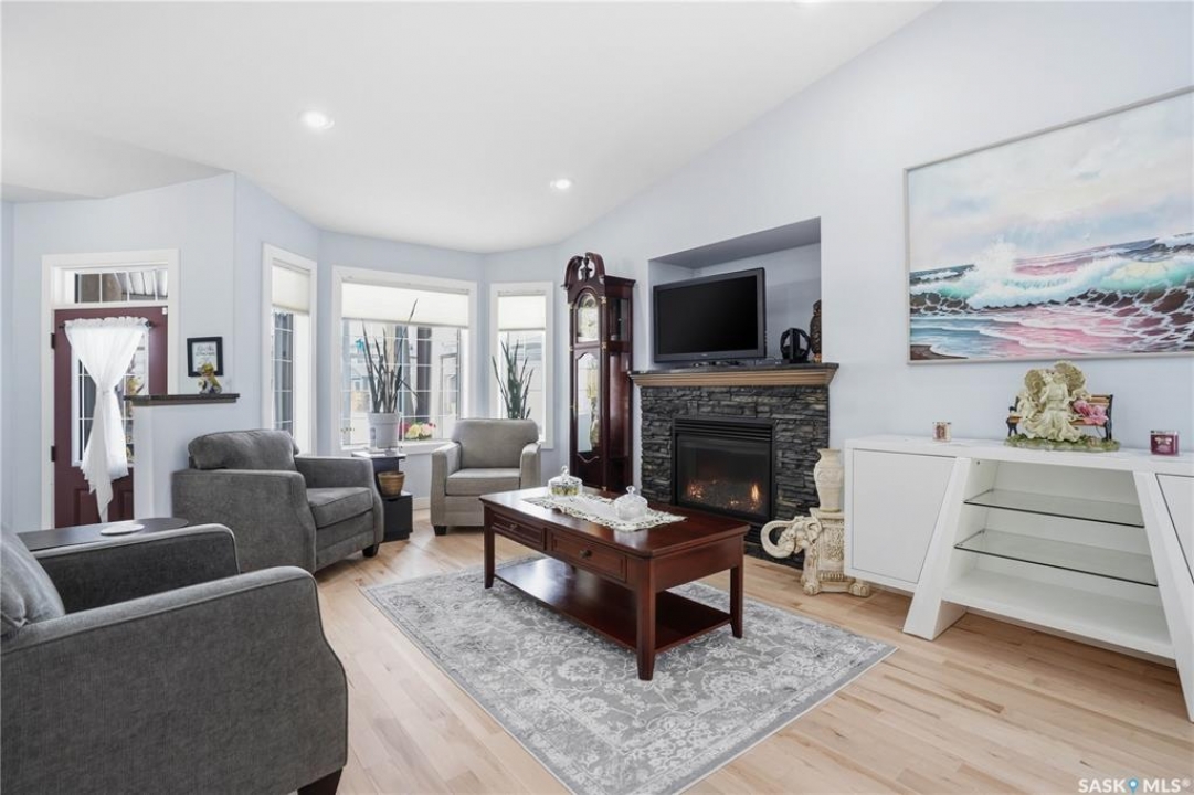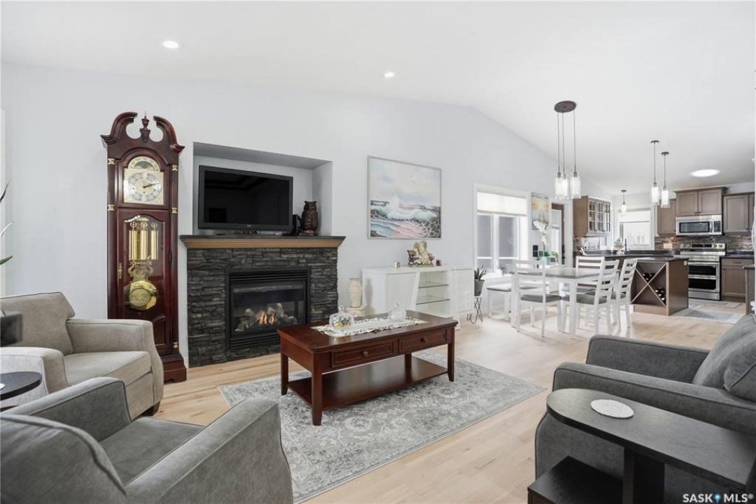 Welcome to 5053 Canuck Crescent, a spacious, bright and fully developed 1,257 sq ft bungalow on a quiet crescent in a desirable neighborhood. The main floor features an inviting front foyer with vaulted ceilings leading into an open-concept living space. The living room offers a cozy gas fireplace and flows into the dining area and kitchen, making it ideal for everyday living and entertaining. The kitchen is finished with custom cabinetry, granite countertops, tile backsplash, pantry, island with wine rack, and stainless steel appliances (fridge and stove approx. 5 months old).There are two good-sized bedrooms on the main level, along with a four-piece bathroom. The primary bedroom includes a walk-in closet and a three-piece ensuite with a double-wide shower. A well-planned mudroom with laundry completes the main floor.The fully developed basement offers a large recreation room with wet bar and two additional bedrooms, all with durable vinyl plank flooring and plenty of natural light. With space and layout suitable for a future kitchen, this level has strong potential for a mother-in-law suite. A four-piece bathroom and a second laundry room complete the lower level. Additional features include central air conditioning, on-demand water heater, water softener, energy-efficient triple-pane PVC windows, RO water system, three sun tubes, heat-traced eaves, motorized living room blind and radon mitigation. Outdoor living is enhanced by low-maintenance landscaping, a screened-in front deck and back deck and patio within a fully fenced backyard. An exposed aggregate driveway leads to the heated double attached garage with separate central vacuum and 220V wiring. This fantastic location is close to parks, an elementary school, and all the shops and services of Harbour Landing. Kitchen bar fridge and three garden sheds are included.