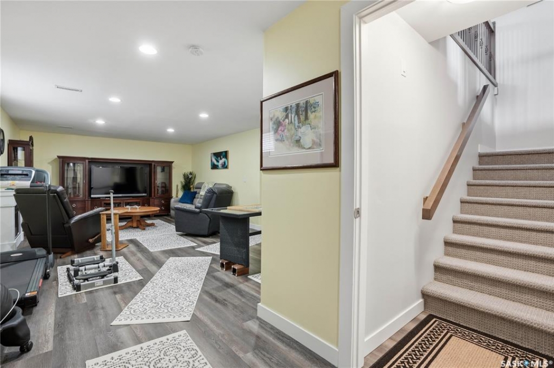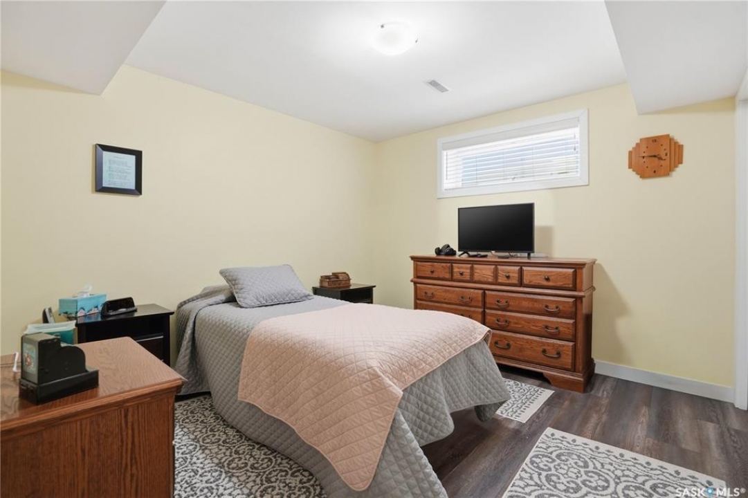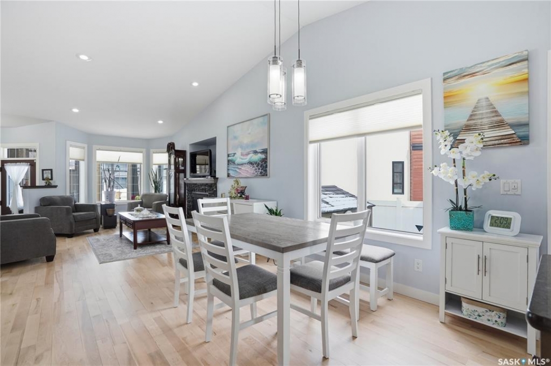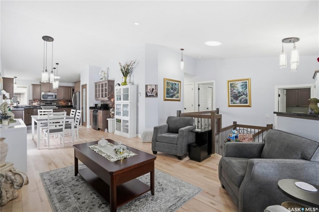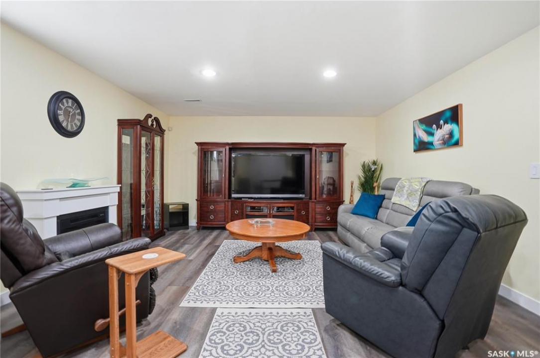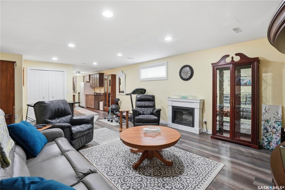 Welcome to 5053 Canuck Crescent, a spacious, bright and fully developed 1,257 sq ft bungalow on a quiet crescent in a desirable neighborhood. The main floor features an inviting front foyer with vaulted ceilings leading into an open-concept living space. The living room offers a cozy gas fireplace and flows into the dining area and kitchen, making it ideal for everyday living and entertaining. The kitchen is finished with custom cabinetry, granite countertops, tile backsplash, pantry, island with wine rack, and stainless steel appliances (fridge and stove approx. 5 months old).There are two good-sized bedrooms on the main level, along with a four-piece bathroom. The primary bedroom includes a walk-in closet and a three-piece ensuite with a double-wide shower. A well-planned mudroom with laundry completes the main floor.The fully developed basement offers a large recreation room with wet bar and two additional bedrooms, all with durable vinyl plank flooring and plenty of natural light. With space and layout suitable for a future kitchen, this level has strong potential for a mother-in-law suite. A four-piece bathroom and a second laundry room complete the lower level. Additional features include central air conditioning, on-demand water heater, water softener, energy-efficient triple-pane PVC windows, RO water system, three sun tubes, heat-traced eaves, motorized living room blind and radon mitigation. Outdoor living is enhanced by low-maintenance landscaping, a screened-in front deck and back deck and patio within a fully fenced backyard. An exposed aggregate driveway leads to the heated double attached garage with separate central vacuum and 220V wiring. This fantastic location is close to parks, an elementary school, and all the shops and services of Harbour Landing. Kitchen bar fridge and three garden sheds are included.