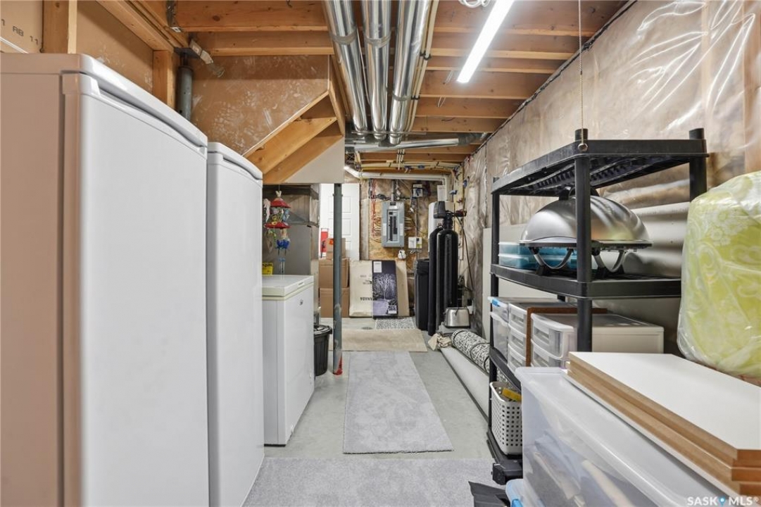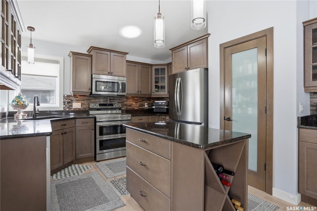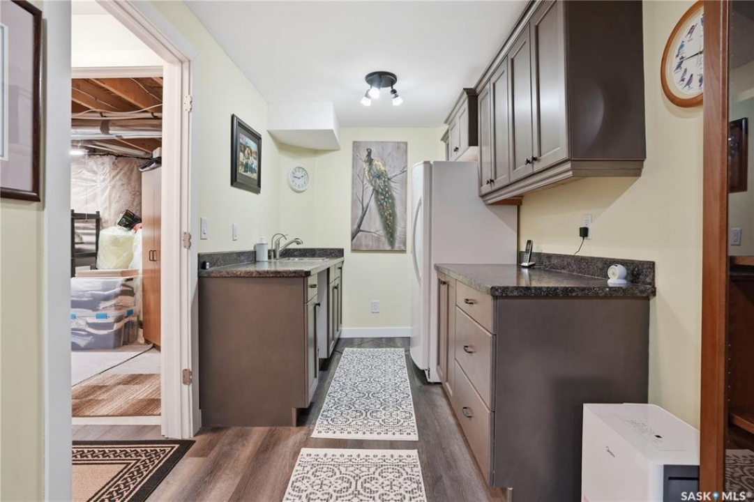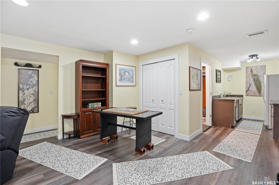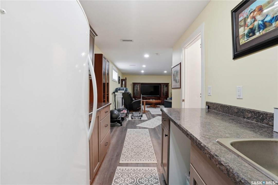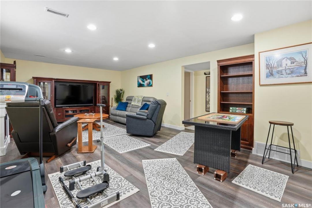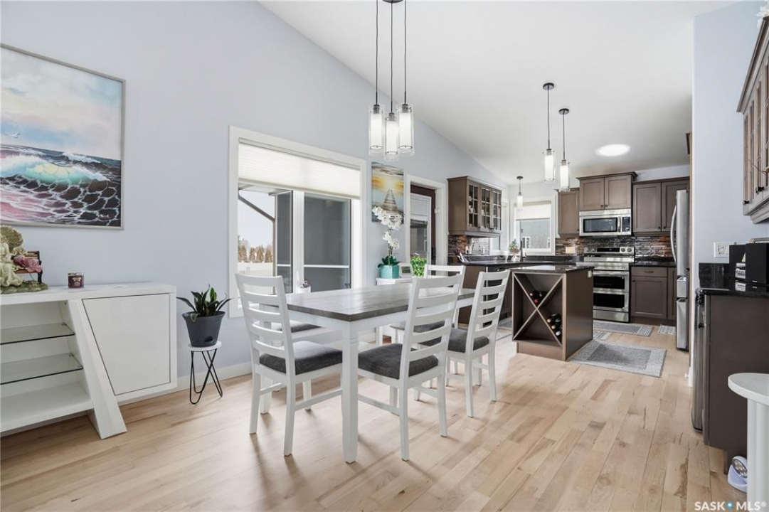 Welcome to 5053 Canuck Crescent, a spacious, bright and fully developed 1,257 sq ft bungalow on a quiet crescent in a desirable neighborhood. The main floor features an inviting front foyer with vaulted ceilings leading into an open-concept living space. The living room offers a cozy gas fireplace and flows into the dining area and kitchen, making it ideal for everyday living and entertaining. The kitchen is finished with custom cabinetry, granite countertops, tile backsplash, pantry, island with wine rack, and stainless steel appliances (fridge and stove approx. 5 months old).There are two good-sized bedrooms on the main level, along with a four-piece bathroom. The primary bedroom includes a walk-in closet and a three-piece ensuite with a double-wide shower. A well-planned mudroom with laundry completes the main floor.The fully developed basement offers a large recreation room with wet bar and two additional bedrooms, all with durable vinyl plank flooring and plenty of natural light. With space and layout suitable for a future kitchen, this level has strong potential for a mother-in-law suite. A four-piece bathroom and a second laundry room complete the lower level. Additional features include central air conditioning, on-demand water heater, water softener, energy-efficient triple-pane PVC windows, RO water system, three sun tubes, heat-traced eaves, motorized living room blind and radon mitigation. Outdoor living is enhanced by low-maintenance landscaping, a screened-in front deck and back deck and patio within a fully fenced backyard. An exposed aggregate driveway leads to the heated double attached garage with separate central vacuum and 220V wiring. This fantastic location is close to parks, an elementary school, and all the shops and services of Harbour Landing. Kitchen bar fridge and three garden sheds are included.