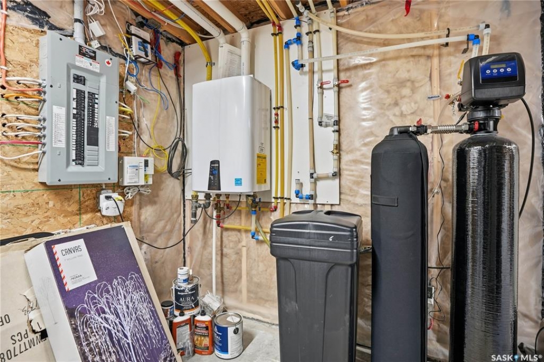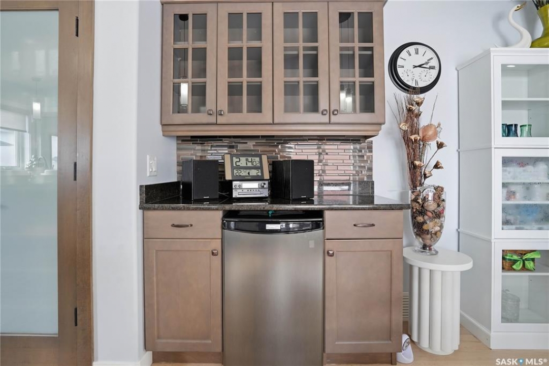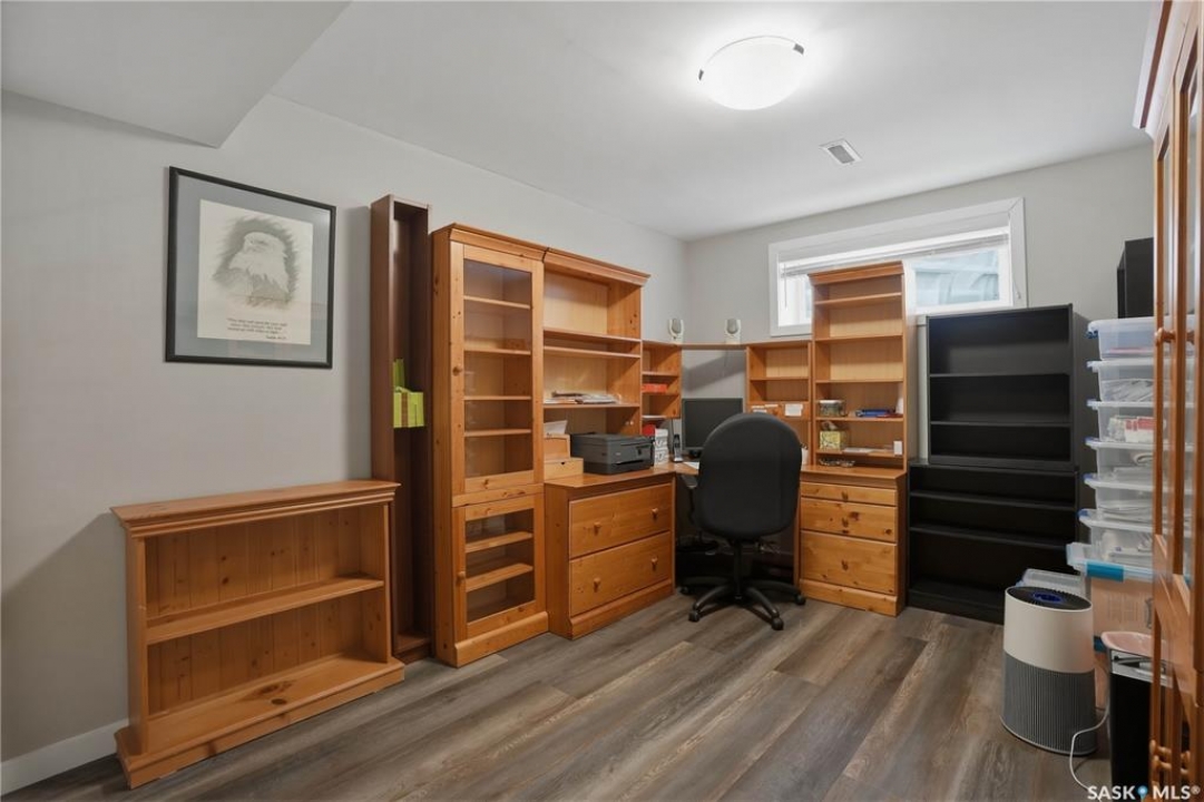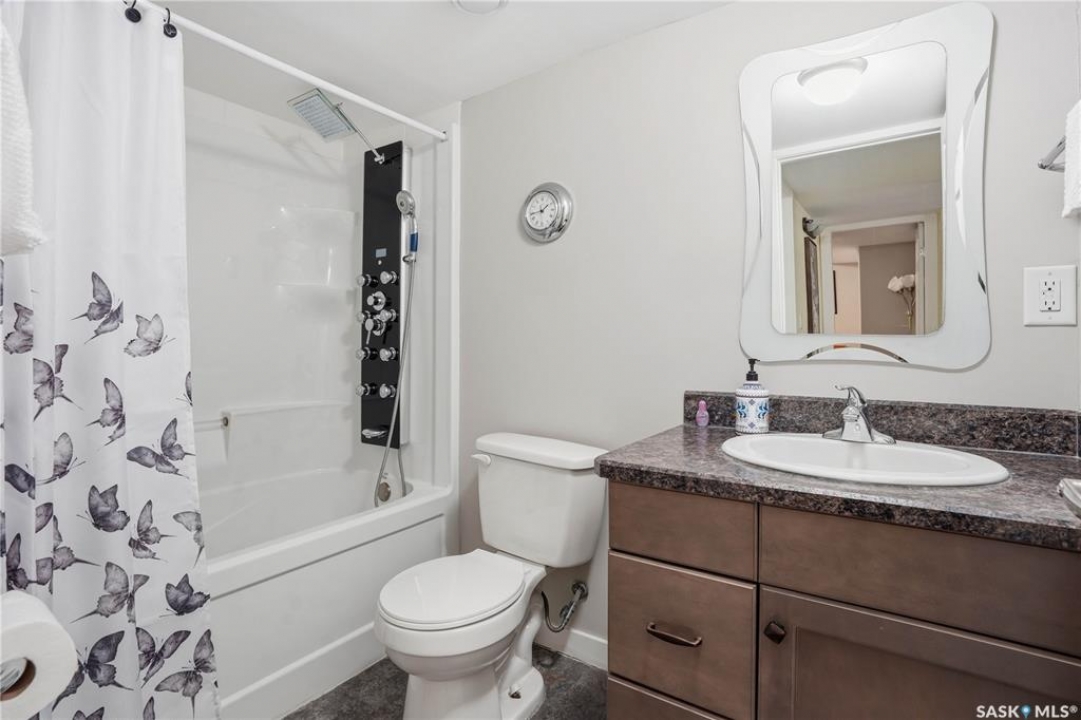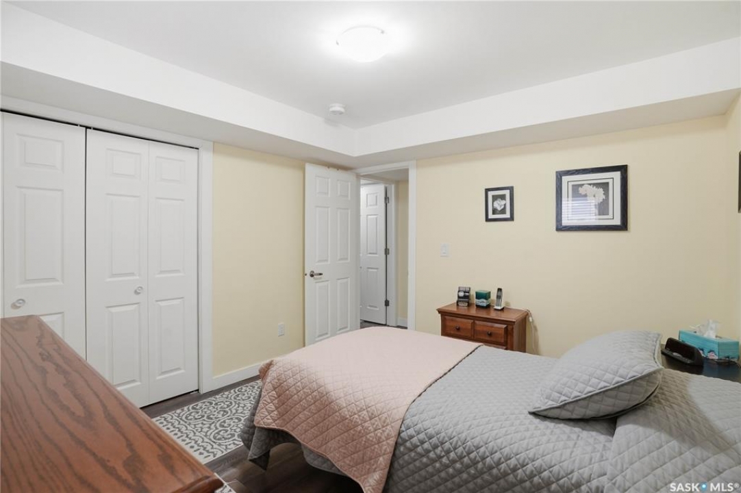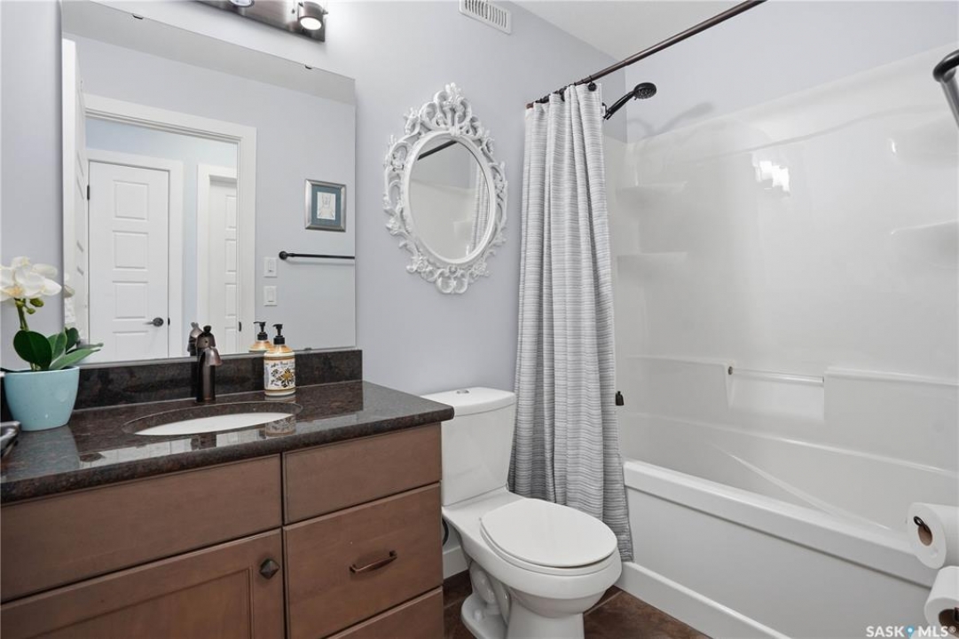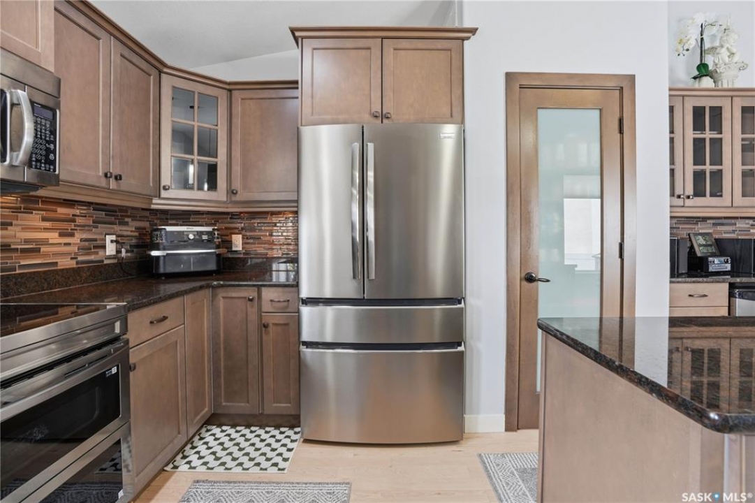 Welcome to 5053 Canuck Crescent, a spacious, bright and fully developed 1,257 sq ft bungalow on a quiet crescent in a desirable neighborhood. The main floor features an inviting front foyer with vaulted ceilings leading into an open-concept living space. The living room offers a cozy gas fireplace and flows into the dining area and kitchen, making it ideal for everyday living and entertaining. The kitchen is finished with custom cabinetry, granite countertops, tile backsplash, pantry, island with wine rack, and stainless steel appliances (fridge and stove approx. 5 months old).There are two good-sized bedrooms on the main level, along with a four-piece bathroom. The primary bedroom includes a walk-in closet and a three-piece ensuite with a double-wide shower. A well-planned mudroom with laundry completes the main floor.The fully developed basement offers a large recreation room with wet bar and two additional bedrooms, all with durable vinyl plank flooring and plenty of natural light. With space and layout suitable for a future kitchen, this level has strong potential for a mother-in-law suite. A four-piece bathroom and a second laundry room complete the lower level. Additional features include central air conditioning, on-demand water heater, water softener, energy-efficient triple-pane PVC windows, RO water system, three sun tubes, heat-traced eaves, motorized living room blind and radon mitigation. Outdoor living is enhanced by low-maintenance landscaping, a screened-in front deck and back deck and patio within a fully fenced backyard. An exposed aggregate driveway leads to the heated double attached garage with separate central vacuum and 220V wiring. This fantastic location is close to parks, an elementary school, and all the shops and services of Harbour Landing. Kitchen bar fridge and three garden sheds are included.