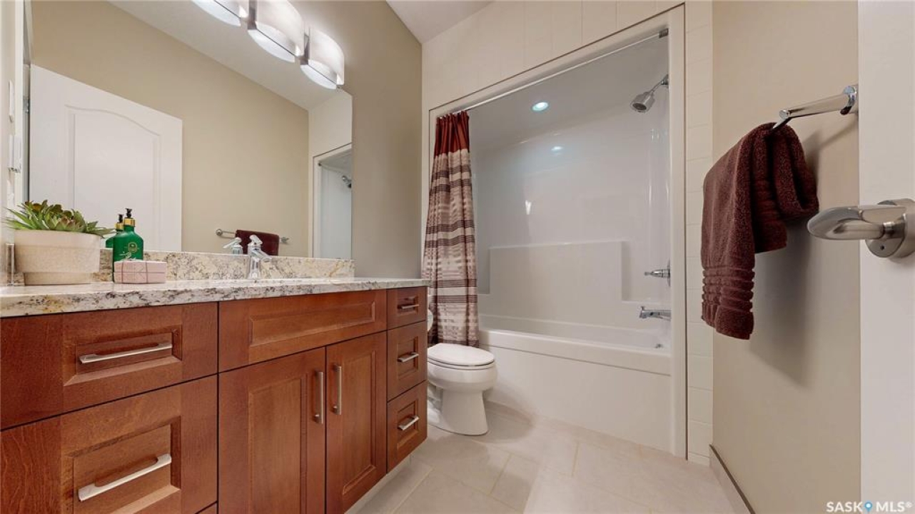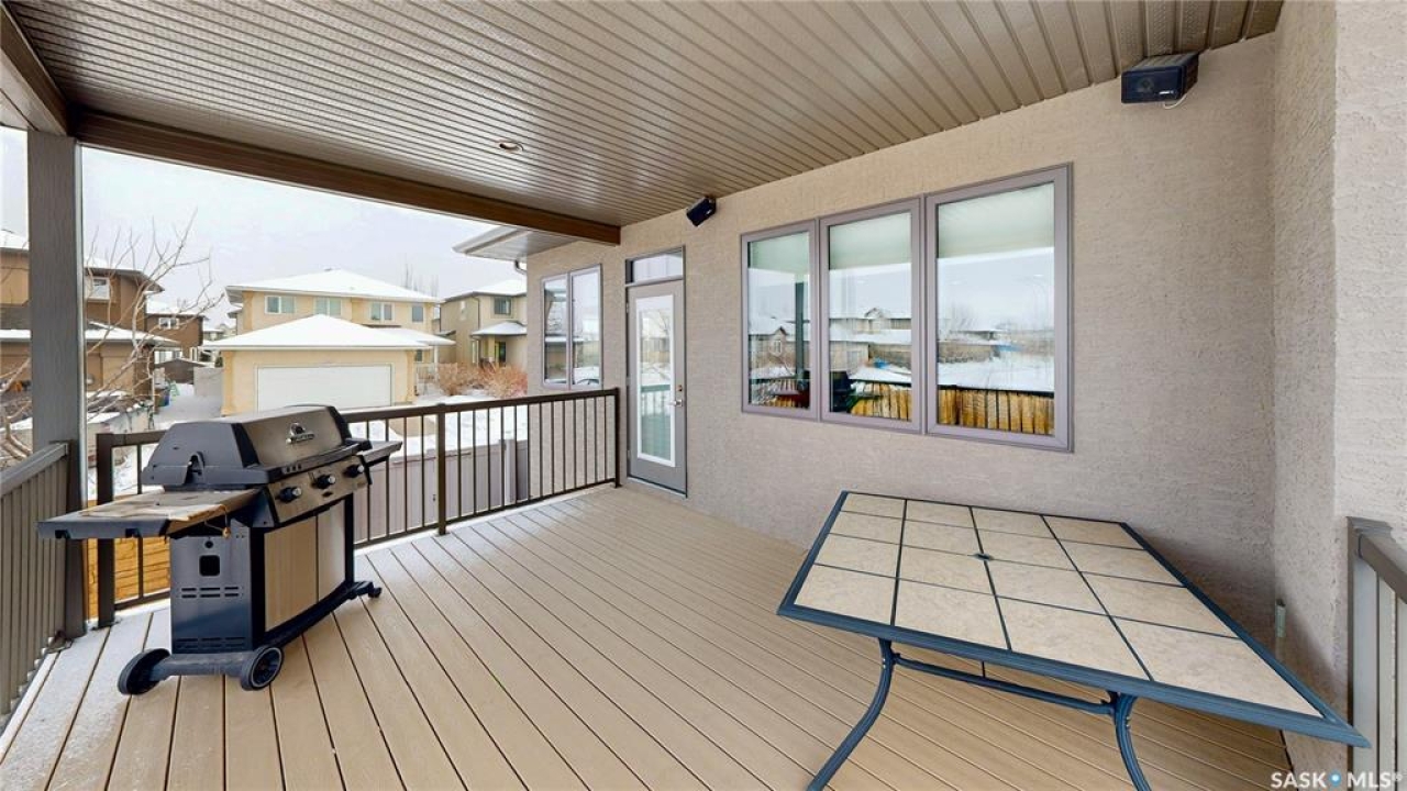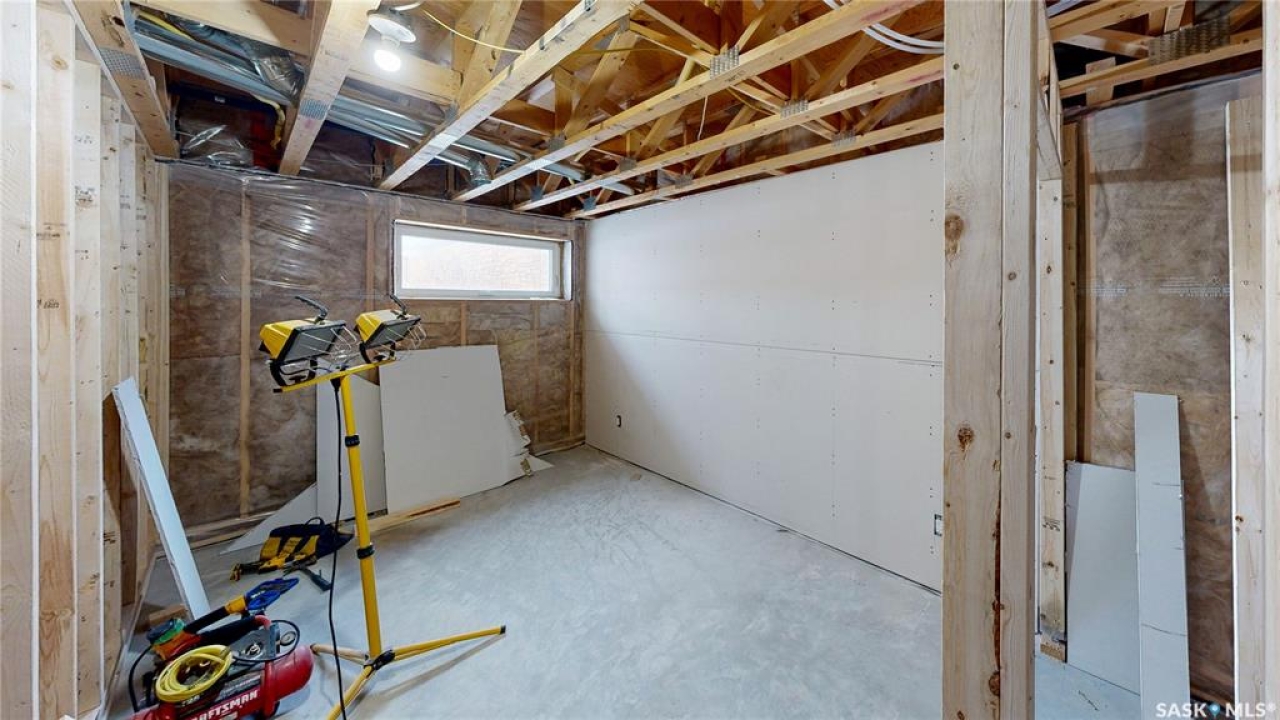 This 1,381 sq ft bungalow is ideally positioned on a quiet, low-traffic bay with a park directly behind—something the current owners have especially appreciated as it provides a safe setting for kids to play. The home was custom-built in 2013 by Ripplinger and offers 3 bedrooms and 2 bathrooms on the main level, along with an additional bedroom and bathroom partially developed downstairs. The front yard is professionally landscaped with underground sprinklers. There's a 24 x 26 attached garage which is heated and insulated, featuring 14 ft ceilings (great for anyone considering a car lift), a 220 volt plug-in, and a full drain pit connected to the sewer. The fully fenced backyard is also professionally landscaped and features a stone wall, underground sprinklers, a covered deck, natural gas BBQ hookup, exposed aggregate patio, and an included storage shed. Inside, the living room features laminate flooring and 9 ft ceilings that continue throughout the main level. There are LED pot lights, a built-in speaker system (also connected to the primary bedroom and deck), and a natural gas fireplace. The open layout flows into the dining area and kitchen, complete with soft-close drawers, corner pantry, glass tile backsplash, granite countertops, an island with bar seating, and included stainless steel appliances. The main floor continues with a bedroom, followed by the laundry room with included washer and dryer, another bedroom, and a 4-piece bathroom with ceramic tile heated flooring. The primary suite features a walk-in closet and a 4-piece ensuite, also with ceramic tile heated flooring. Downstairs, the partially finished basement offers excellent potential for future development, including a large rec room, framed bedroom, additional den or storage area, and bathroom. There is also roughed-in plumbing for a future bar area if desired. The mechanical room includes a 200 amp electrical panel, owned water softener, gas water heater and high efficiency furnace.