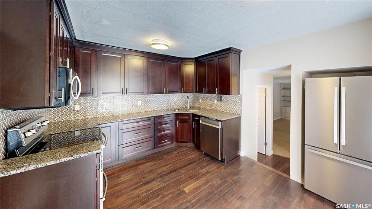 Welcome to 50 Lowry Place on a quiet cul-de-sac in the Albert Park neighbourhood. This 1973 built, 1729 square foot, 4 bedroom 3 bathroom, 2 storey split sits on a generous 7312 square foot, rectangular lot. The front yard has a lawn, professional landscaping with mature trees and a double driveway leading to the fully insulated, double, attached garage. The backyard is fully fenced and features a covered deck with a vaulted roof, eavestroughs, and sunshades, along with a sprawling lawn, mature trees, plenty of greenery and a back alley for easy access. You enter this home into the foyer with tile flooring, a coat closet and room for a bench. The entire interior has been freshly painted in 2025 giving it a fresh new feel. The living room has beautiful floor to ceiling bay windows and hardwood flooring. It flows seamlessly into the dining room with ample space for a large table and chairs. The kitchen was renovated in 2018 with custom cabinetry, granite countertops, tile backsplash and stainless-steel fridge, stove, microwave hood fan and dishwasher that were purchased in 2023 are all included. Next is a handy 2 piece bathroom. The cozy family room has a brick fireplace with built-in shelving and cabinets. Upstairs is the primary bedroom with a walk-in closet and a massive 4 piece en-suite bathroom featuring a large jet tub, separate shower, and a built-in vanity. Next is a good sized bedroom followed by the updated 4 piece bathroom and another bedroom. Downstairs in the fully finished basement is a large rec room with a unique workshop area. The laundry room has storage space and the included washer, dryer and freezer! Finishing off the home is one more bedroom. The home has also seen many upgrades including new central A/C, a stucco finish with 2” insulation, triple-pane windows, new shingles, soffits, and garage door, dual high-efficiency furnaces, new entry doors, sump pumps, updated plumbing fixtures, and an owned water heater. Listed for appraised value!