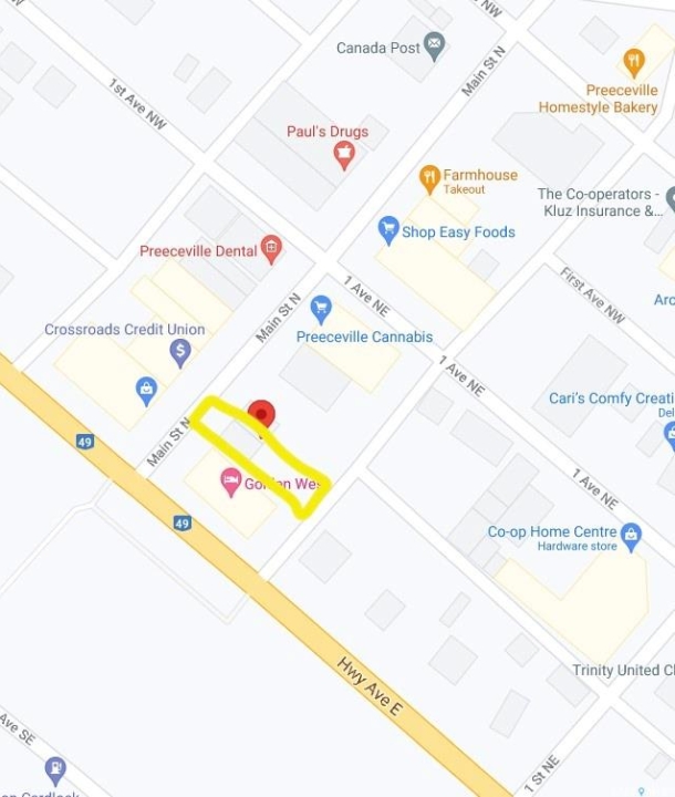 $1.00 Lot - Vacant commercial lot in the Town of Preeceville SK. Lot measures 30ft x 130ft. Power, gas, water, and sewer services are located at the street or back alley. Preeceville is a full service town including health center, K-12 School, grocery store, gas stations, hardware and home improvement stores, restaurants, beautiful lakes, year round outdoor activities, and friendly people. Nearest city is Yorkton at 100KM away. All offers must contain Schedule A. Subject to the Town of Preeceville approving business plan and/or lot development plan on or before 14 days of offer acceptance.