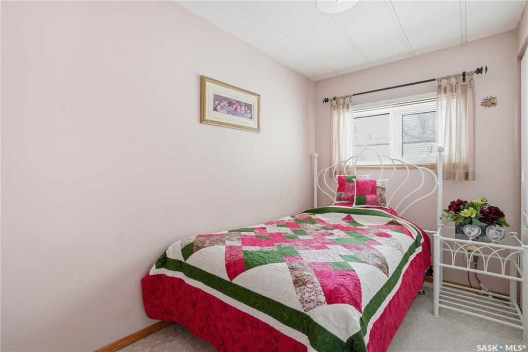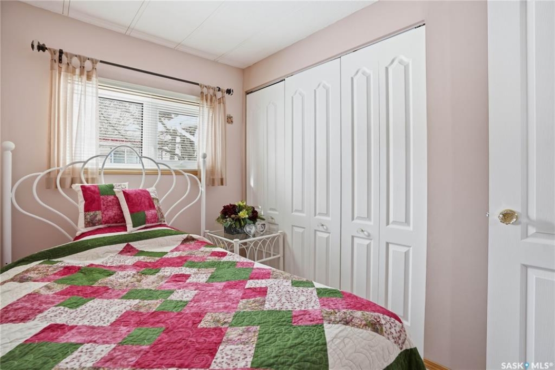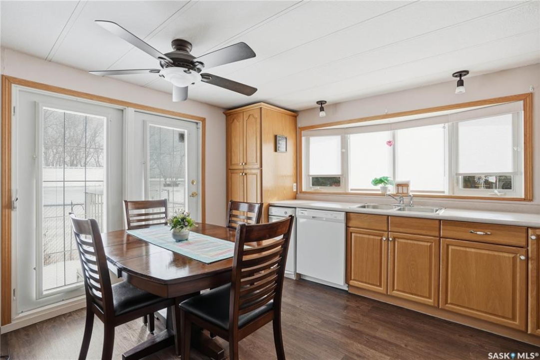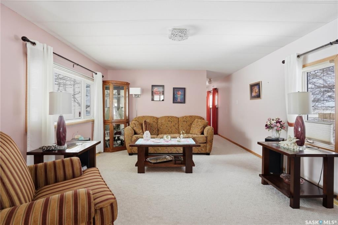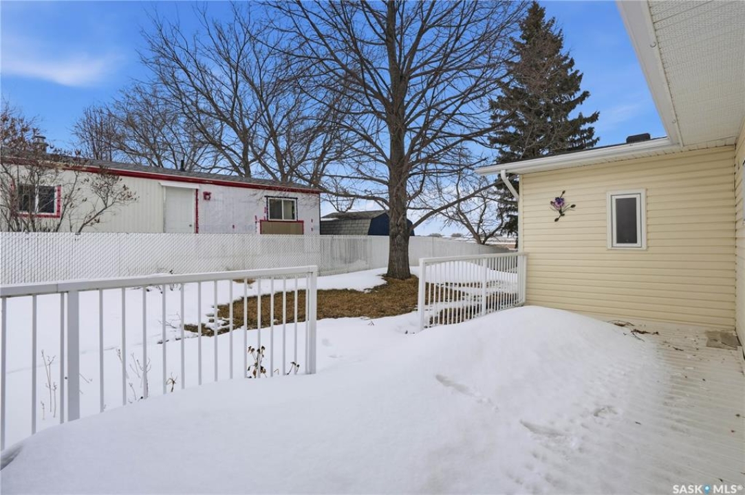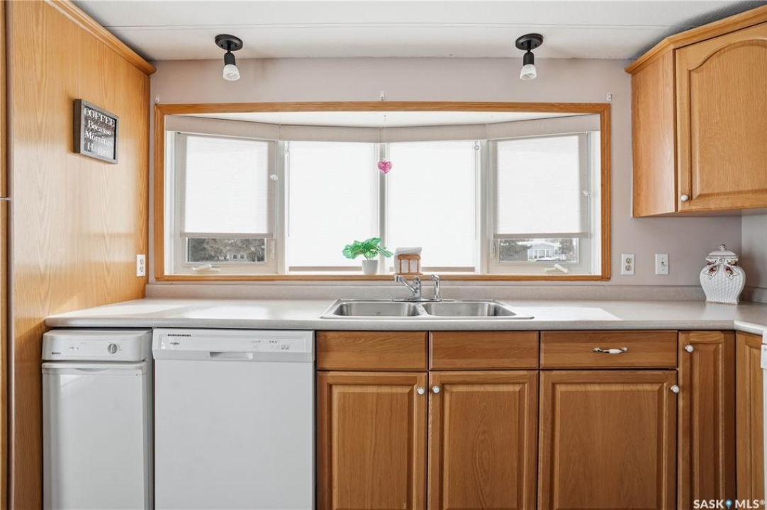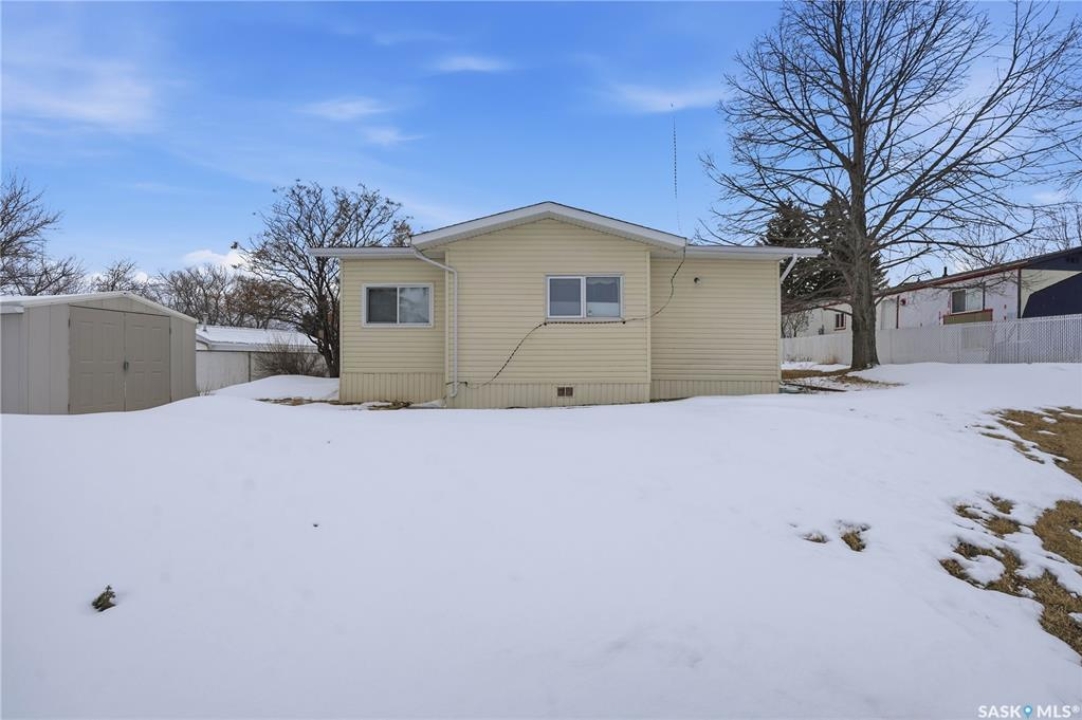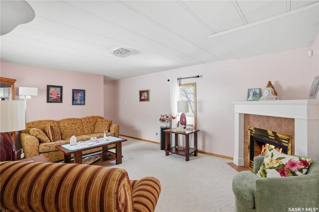 Welcome to a home filled with care, pride, and wonderful memories. Lovingly owned and enjoyed for decades, this original owner property in the community of Coppersands offers a warm and inviting place to call home. Situated on a spacious, fully fenced lot, the outdoor space is truly special. Fully landscaped yard has been beautifully maintained with underground sprinklers, a maintenance free PVC deck and two garden sheds for storage. Front yard offers an abundance of perennials returning year after year. Garden doors from the kitchen lead to an interlocking brick patio area—perfect for relaxing or enjoying time outdoors. A PVC front entry deck welcomes you at the front door, while an asphalt double driveway provides convenient off-street parking for two and easy access to the home. Inside, the home has been thoughtfully expanded with three additions over the years, creating comfortable and functional living spaces. The bright family room addition provides welcoming front entry access, while the second added a storage room plus expanded the bathroom to include a relaxing jetted tub and second vanity alongside the original tub and shower. The third, a large den along the back of the home and features built-in cabinetry and direct access to the PVC landing leading to the side yard and patio. The kitchen offers beautiful oak cabinetry, including a built-in china cabinet and plenty of cupboard space. The living room provides a cozy atmosphere with a corner gas fireplace complete with mantle, while the spacious primary bedroom offers a comfortable retreat at the end of the day. Updates over the years include peaked roof, vinyl windows, drywall interior finishing, updated kitchen cupboards and counters, newer flooring, central vacuum, and shingles. Pad rental is $675/month and includes water, garbage pickup, and street snow removal. Come experience the warmth and pride of ownership this home offers—you may just find it feels like home the moment you arrive.