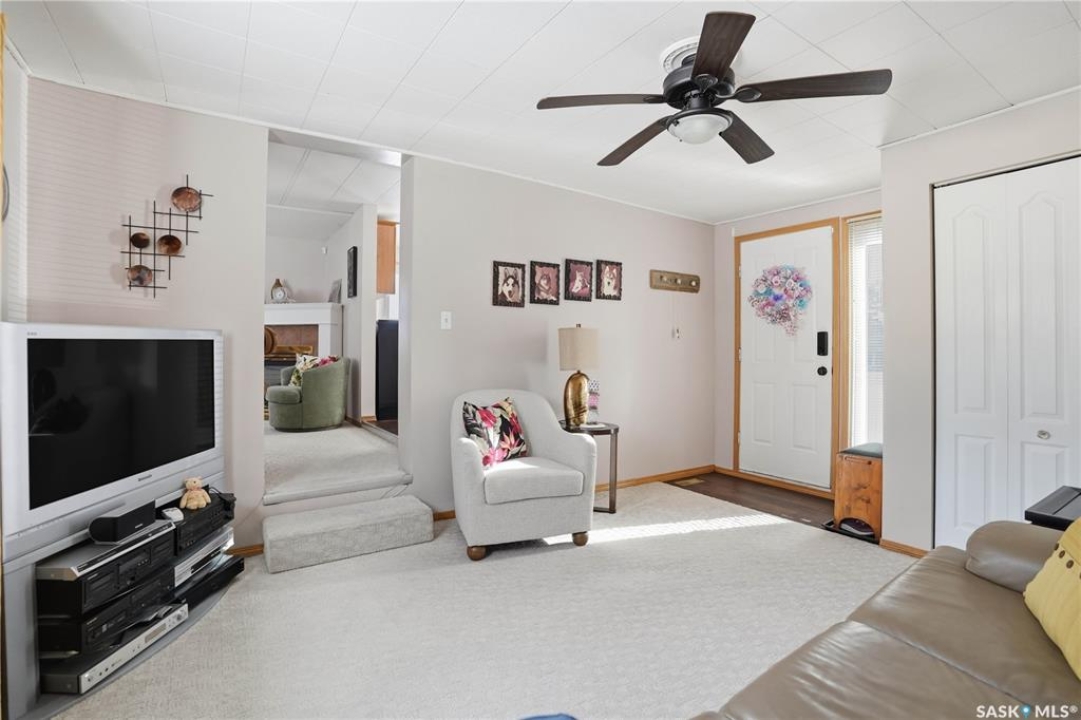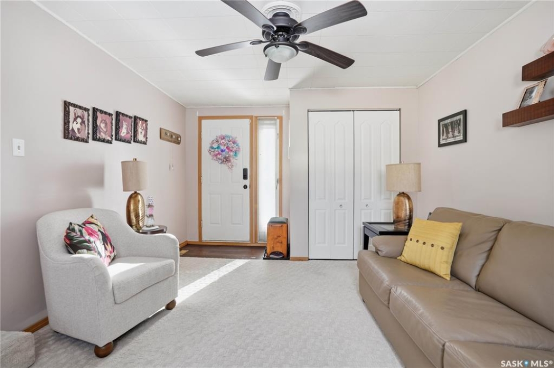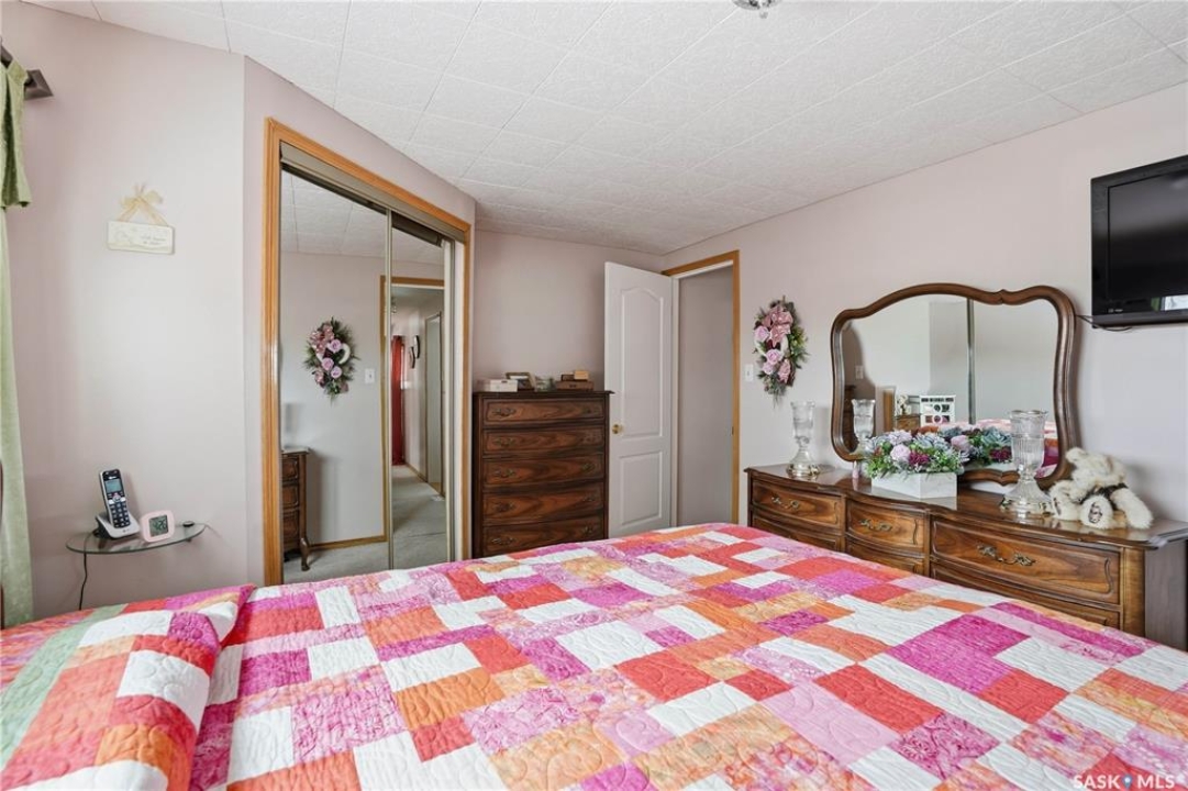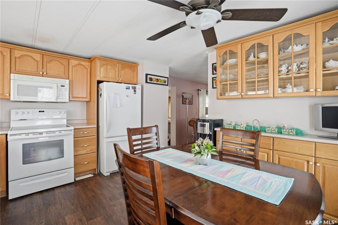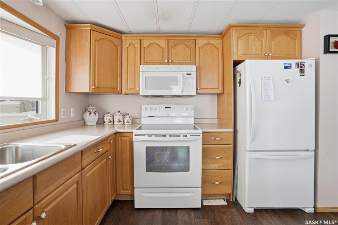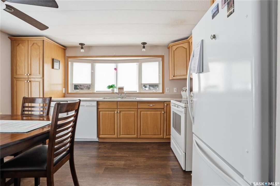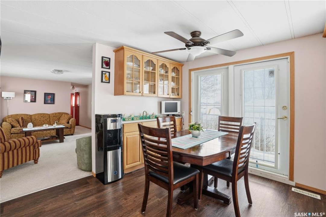 Welcome to a home filled with care, pride, and wonderful memories. Lovingly owned and enjoyed for decades, this original owner property in the community of Coppersands offers a warm and inviting place to call home. Situated on a spacious, fully fenced lot, the outdoor space is truly special. Fully landscaped yard has been beautifully maintained with underground sprinklers, a maintenance free PVC deck and two garden sheds for storage. Front yard offers an abundance of perennials returning year after year. Garden doors from the kitchen lead to an interlocking brick patio area—perfect for relaxing or enjoying time outdoors. A PVC front entry deck welcomes you at the front door, while an asphalt double driveway provides convenient off-street parking for two and easy access to the home. Inside, the home has been thoughtfully expanded with three additions over the years, creating comfortable and functional living spaces. The bright family room addition provides welcoming front entry access, while the second added a storage room plus expanded the bathroom to include a relaxing jetted tub and second vanity alongside the original tub and shower. The third, a large den along the back of the home and features built-in cabinetry and direct access to the PVC landing leading to the side yard and patio. The kitchen offers beautiful oak cabinetry, including a built-in china cabinet and plenty of cupboard space. The living room provides a cozy atmosphere with a corner gas fireplace complete with mantle, while the spacious primary bedroom offers a comfortable retreat at the end of the day. Updates over the years include peaked roof, vinyl windows, drywall interior finishing, updated kitchen cupboards and counters, newer flooring, central vacuum, and shingles. Pad rental is $675/month and includes water, garbage pickup, and street snow removal. Come experience the warmth and pride of ownership this home offers—you may just find it feels like home the moment you arrive.