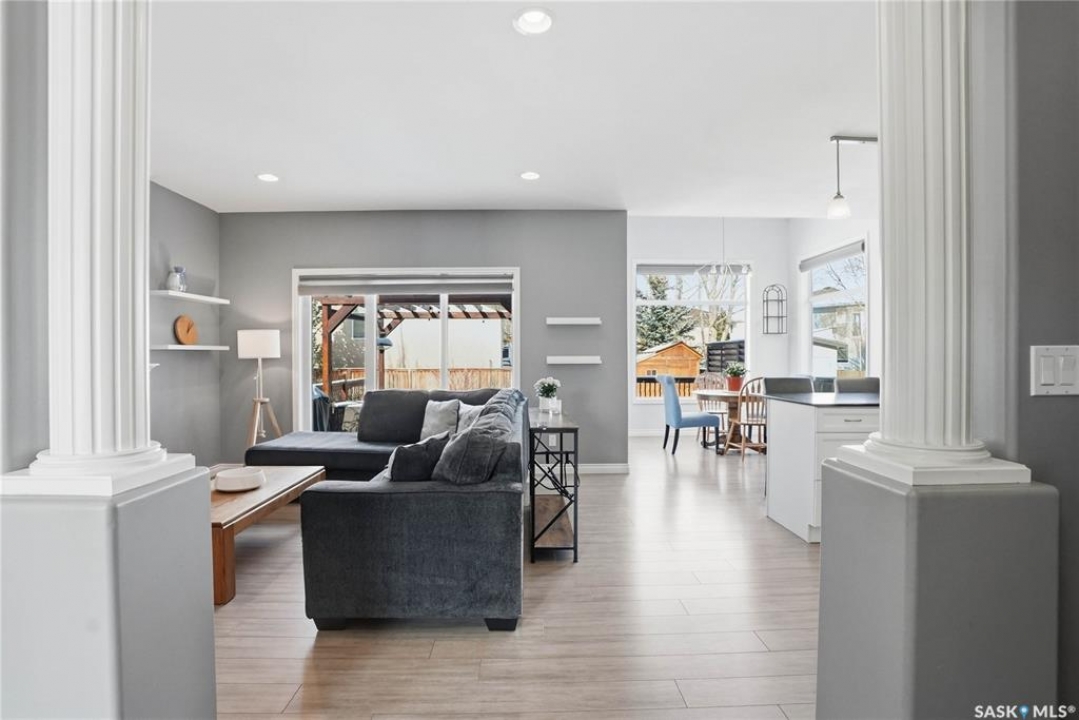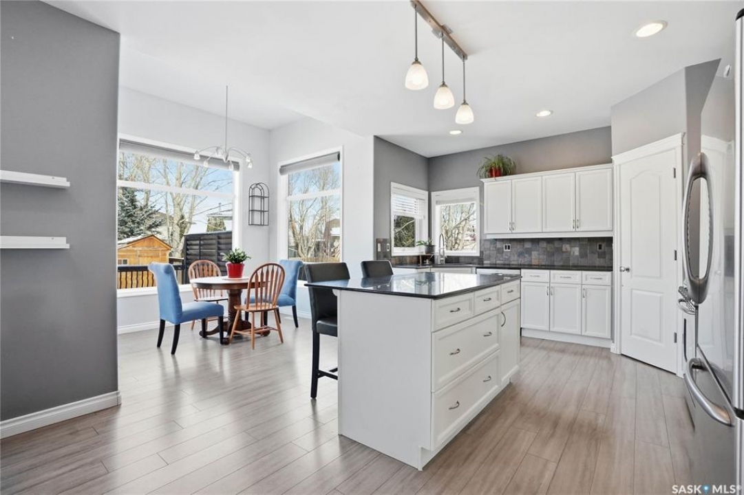 Arbour Creek Gem! Park-facing and perfectly situated on a quiet alcove, this beautiful two-storey home offers 1,872 sq. ft., 4 bedrooms, 4 bathrooms, plus a bonus room and theatre room — an exceptional family home with so much to offer. The property faces a picture-perfect circular park, creating a peaceful setting ideal for family living. Step inside to discover a clean, comfortable home with a classic modern interior. The open-concept main floor features a welcoming great room with a gas fireplace, flowing into a beautiful white kitchen complete with shaker-style cabinetry, stainless steel appliances, granite countertops, tile backsplash, a walk-through pantry, and a central entertainer's island. The kitchen connects to a bright dining area with vaulted ceilings and surrounding windows, overlooking the gorgeous backyard. The main floor also includes a well-equipped laundry and boot room with a full-size closet, countertop and upper cabinetry, along with a powder room. The second level features a wonderful vaulted-ceiling bonus room, three spacious bedrooms, and two full bathrooms. Additional living space awaits in the fully developed basement, sure to impress with updated plush carpet, a large bedroom, oversized bathroom with tile flooring, an office nook, and an incredible family THEATRE room complete with projector, screen, and speakers — perfect for relaxing movie nights. The yard is beautifully landscaped with a deck, pergola, shed, lawn, clover, and plantings, a lovely outdoor space to enjoy. Additional features include a double attached garage, central vacuum, custom blinds, central air conditioning, and updated furnace and hot water heater (2019), newer eaves 2024, shingles 2022. A wonderful opportunity to own a park-facing family home in desirable Arbour Creek.