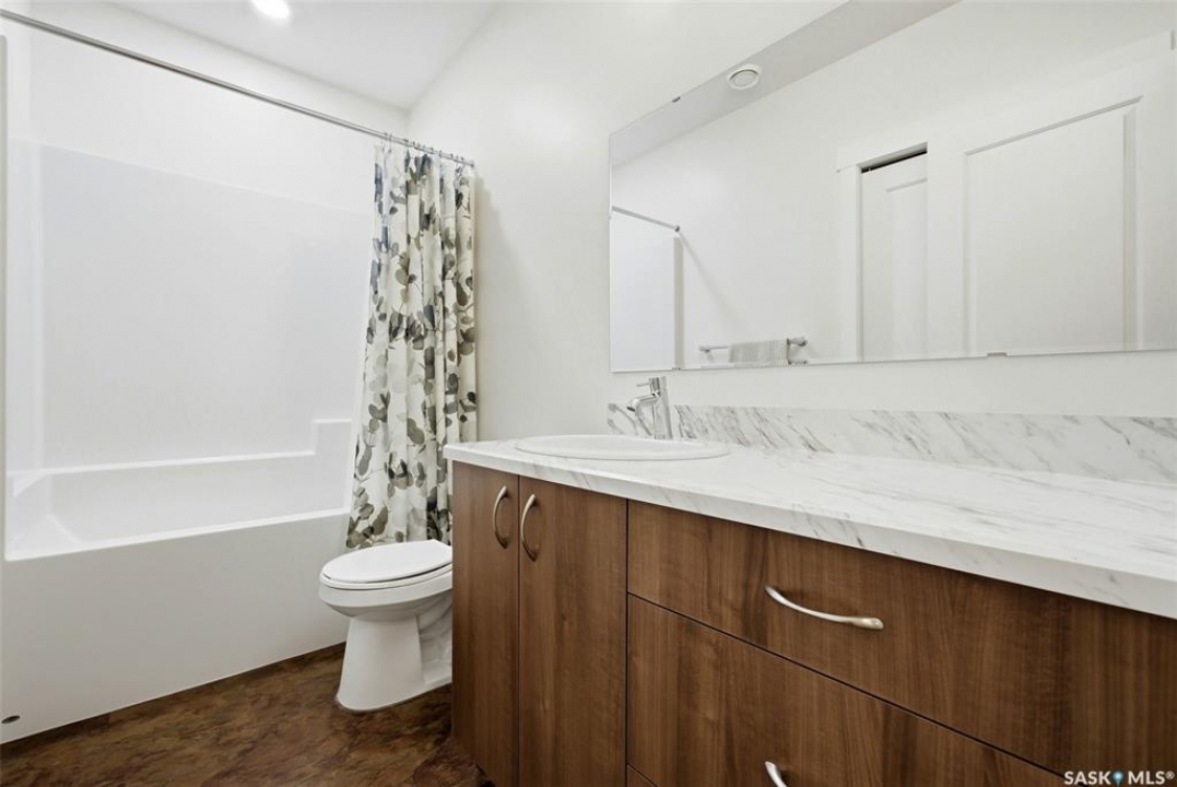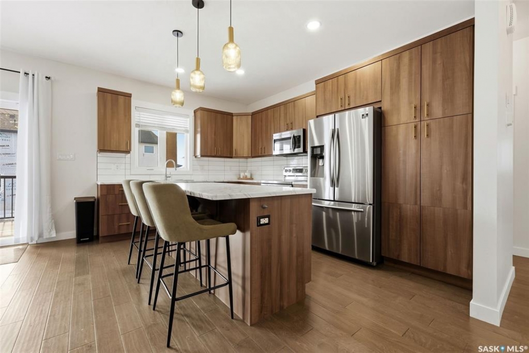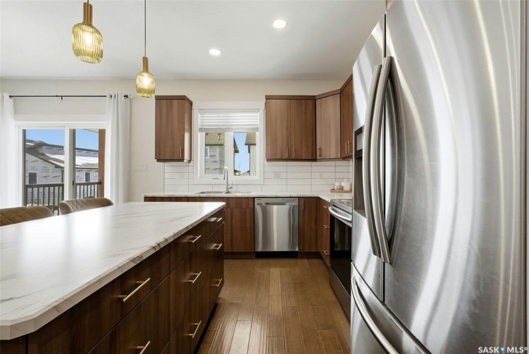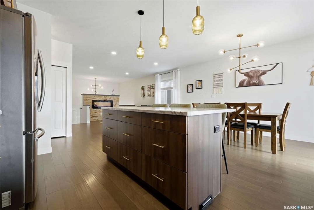 Welcome to this beautiful 2020-built house in the highly sought after family neighbourhood of Discovery Ridge in Pilot Butte, offering modern design, quality finishes, and a spacious layout perfect for families. This 1,480 sq. ft. home with a fully finished basement provides plenty of room to live and entertain. The main floor features a bright open-concept living area highlighted by engineered hardwood floors and a stunning feature fireplace wall, creating a warm and inviting space. The stylish kitchen offers modern cabinetry, stainless steel appliances, and a large island, ideal for cooking and gathering with family and friends. The main level includes three bedrooms, including a spacious primary suite with a 3-piece ensuite, plus an additional full bathroom. Downstairs, the fully finished basement adds even more living space with a large recreation room, two additional bedrooms, and a 4-piece bathroom, perfect for guests or growing families. Step outside to enjoy the fully fenced backyard featuring a covered deck and hot tub, creating the perfect setting for relaxing or entertaining year-round. The property also includes a heated triple attached garage (30' x 24') providing plenty of parking and storage space. Located in the welcoming community of Pilot Butte, this home offers small-town living just minutes from Regina with easy access to parks, schools, and amenities. A fantastic opportunity to own a modern, move-in-ready home with space, style, and comfort.
