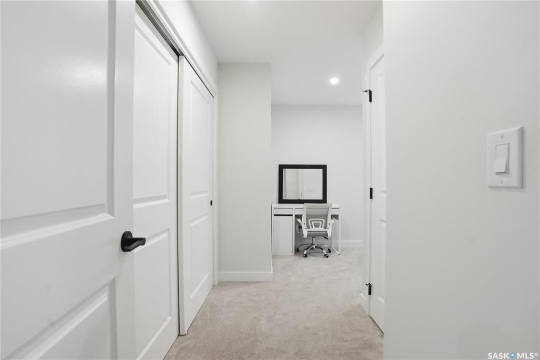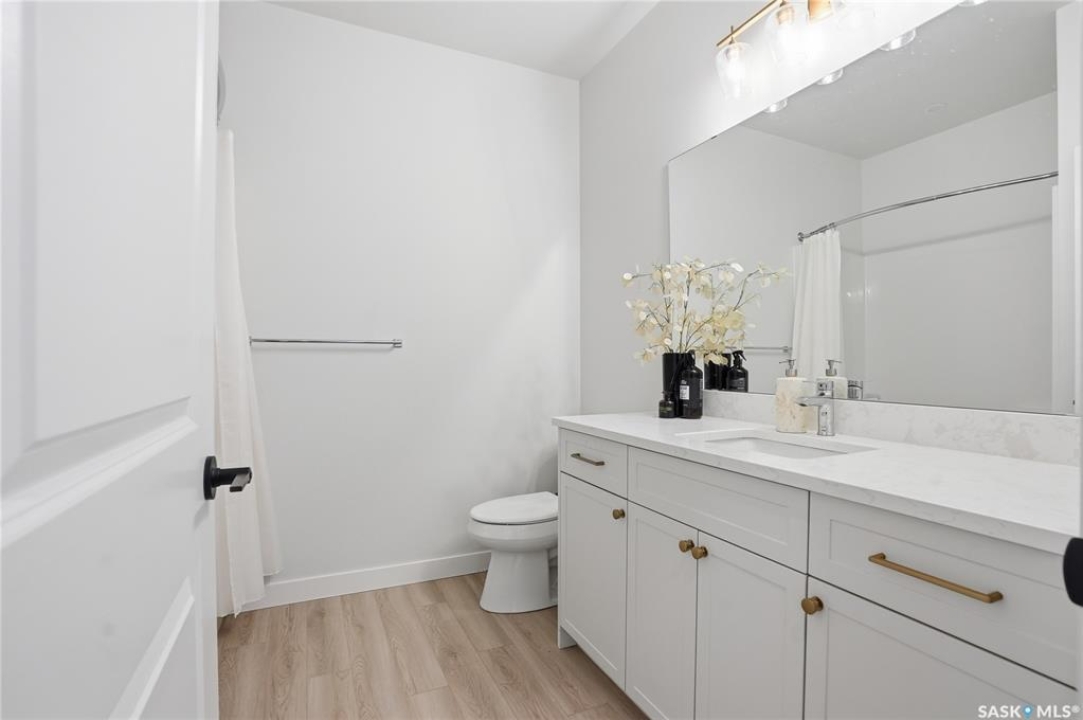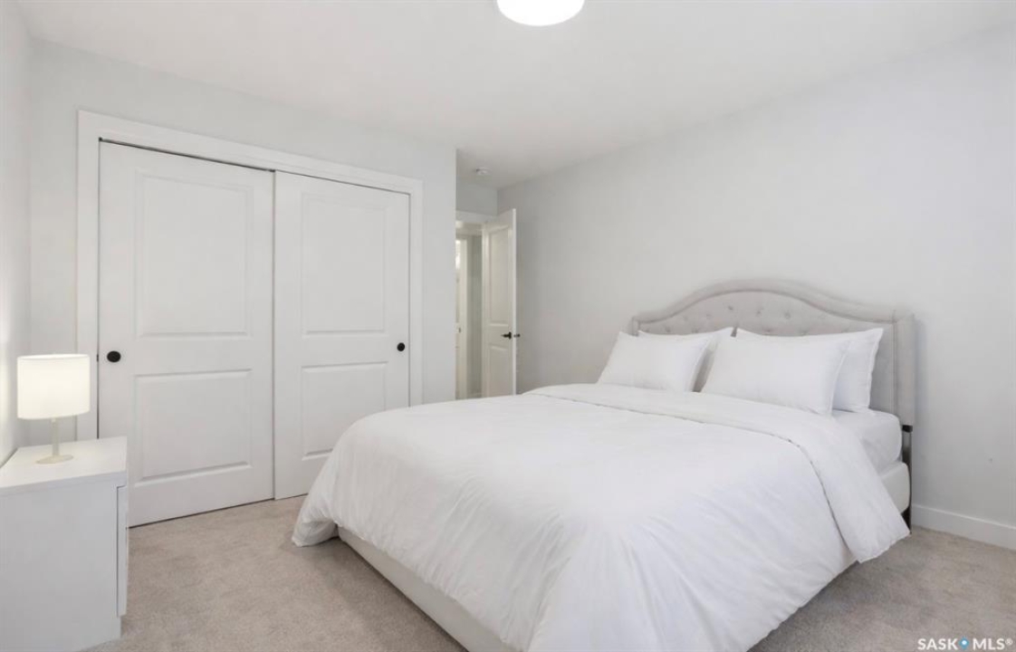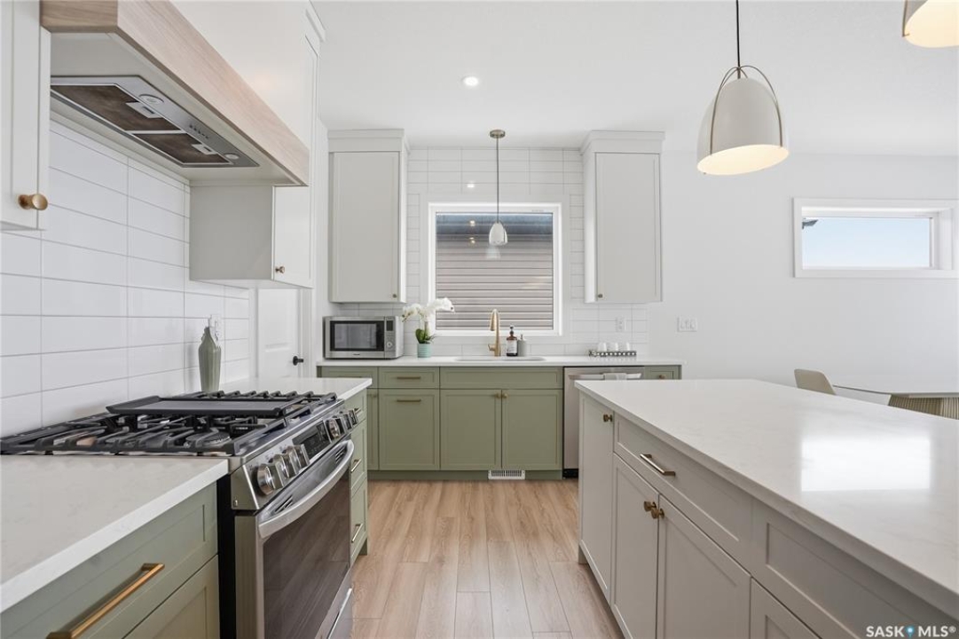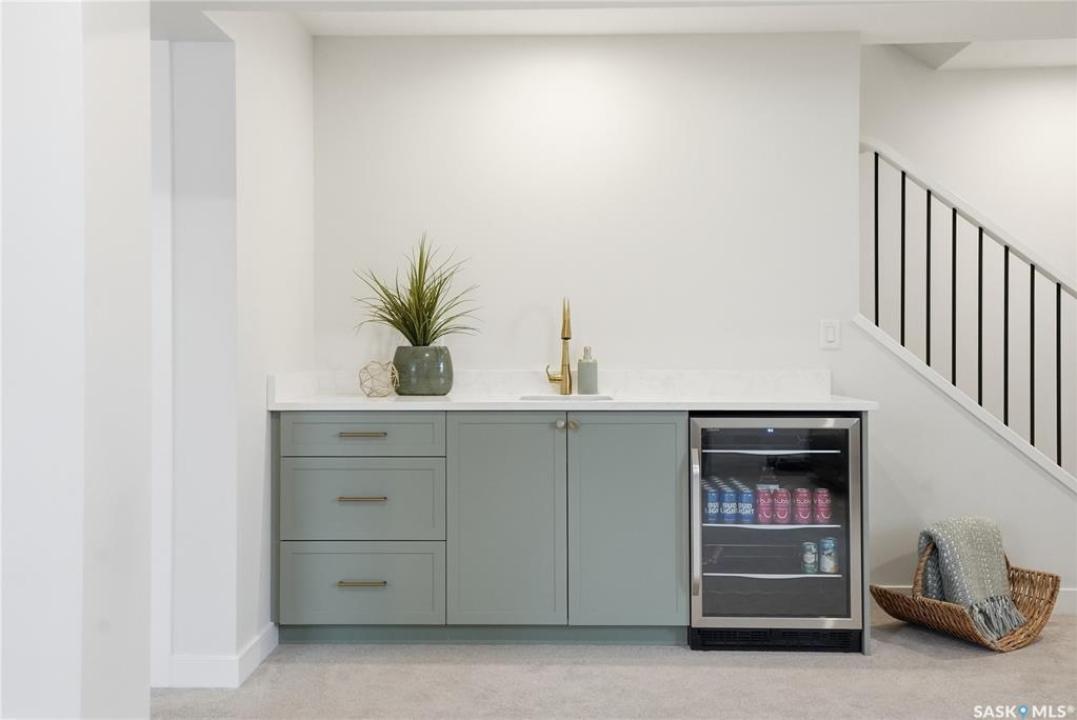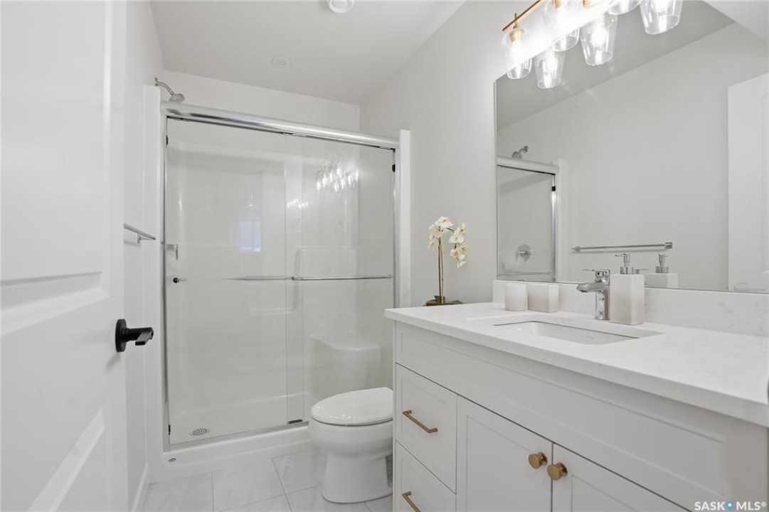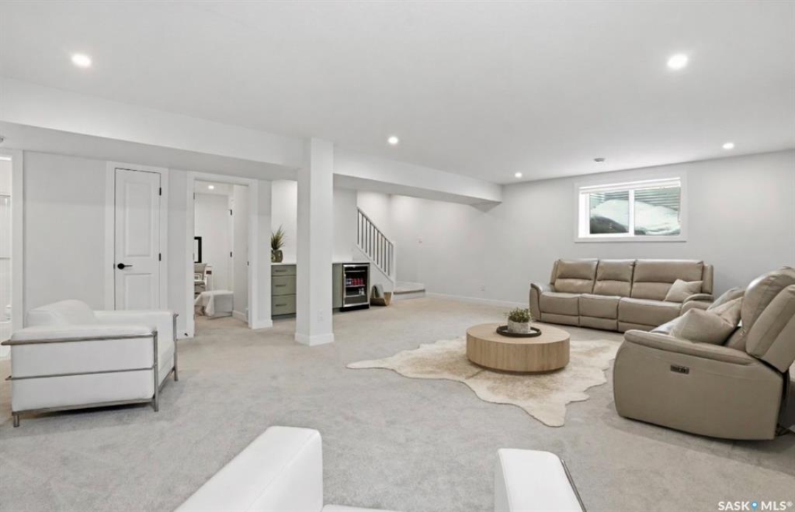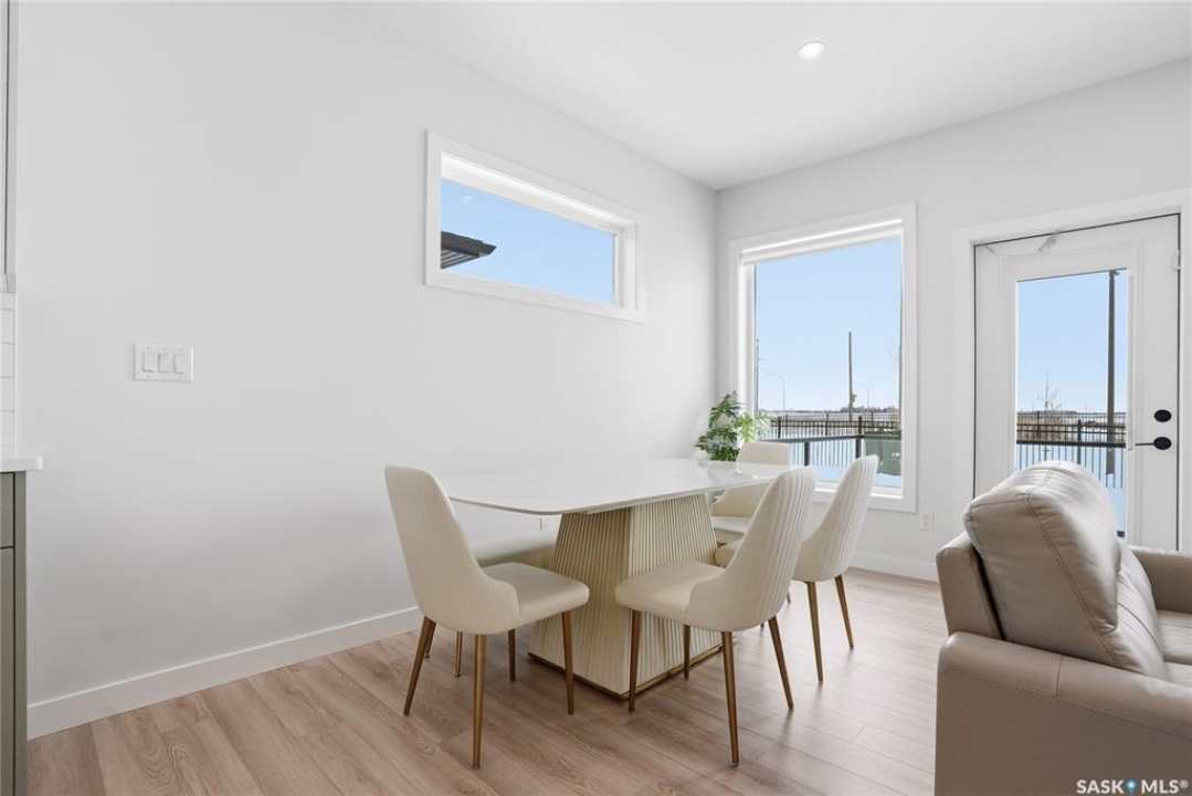 Welcome to Unit #20-515 Delainey located in “Ari by North Ridge” in the sought-after community of Brighton. This like-new, south GREEN SPACE BACKING bungalow style condominium offers 1286 sq ft on the main floor with a beautifully developed lower level and thoughtful upgrades throughout. The customized floorplan offers an excellent layout with bright open living spaces and quality finishes. The kitchen is a standout, featuring full height 9' cabinetry with cabinet lighting, quartz countertops, tile backsplash, a large central island, tiled backsplash, stainless appliances including a gas range, and a well-designed workspace that connects seamlessly to the dining and living areas. The main floor also features a spacious primary suite with lux ensuite, a second bedroom and full bath, plus a separate laundry room w/ built-in shelving. Additional upgrades are evident throughout including upgraded trim work, tile work and upgraded lighting and plumbing fixtures. The fully developed lower level adds impressive additional living space with two large bedrooms (with bright windows), a full 3-piece bathroom, and a beautiful recreation room featuring a linear feature fireplace and a wet bar with mini fridge — a fantastic space for relaxing or entertaining. Additional upgrades include custom window coverings, Energyide,u/g sprinklers, central air, triple pane, and a high efficiency furnace. The 24' deep heated garage is insulated and drywalled. Outdoor living is a highlight with a sunny south facing composite deck (10' x 19') complete with glass railing, gas BBQ outlet, backing directly onto green space and walking paths. Located beside Bear Paw Park and just minutes to McOrmond Drive, this home offers excellent access to Brighton amenities while enjoying a quiet and beautiful setting. An exceptional opportunity for those looking for a stylish, low maintenance home in one of Saskatoon's most desirable neighbourhoods.