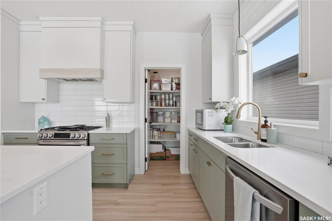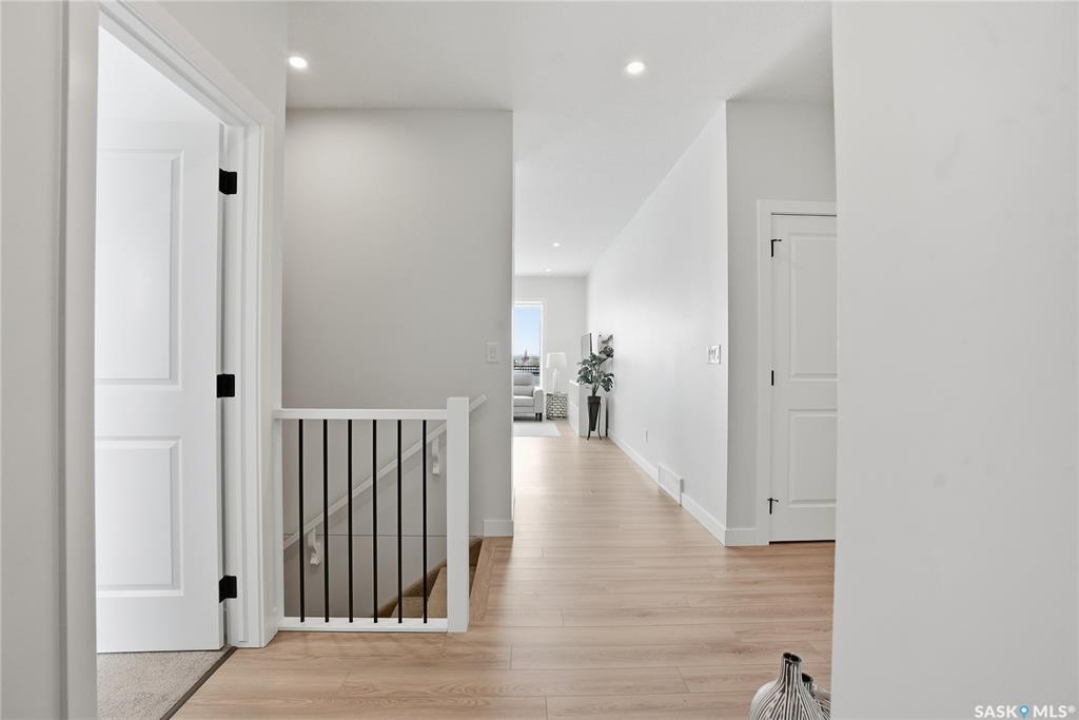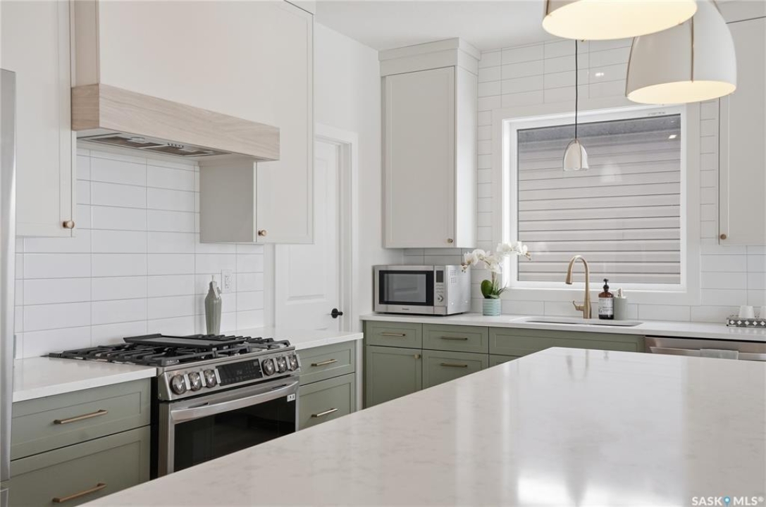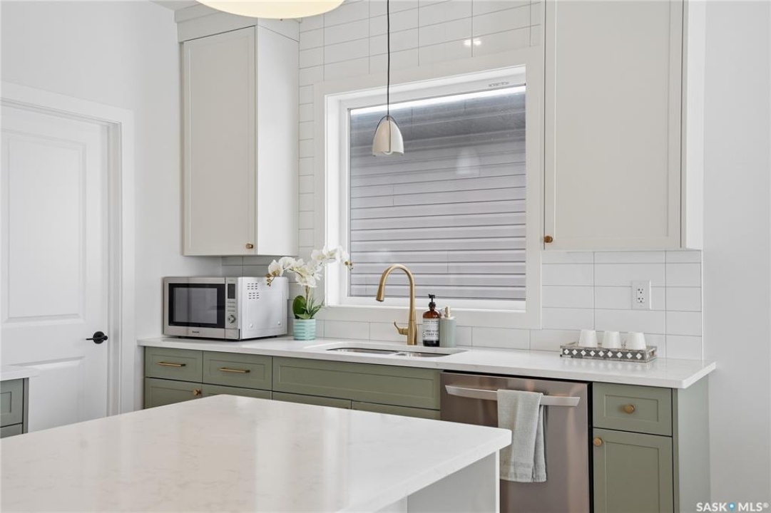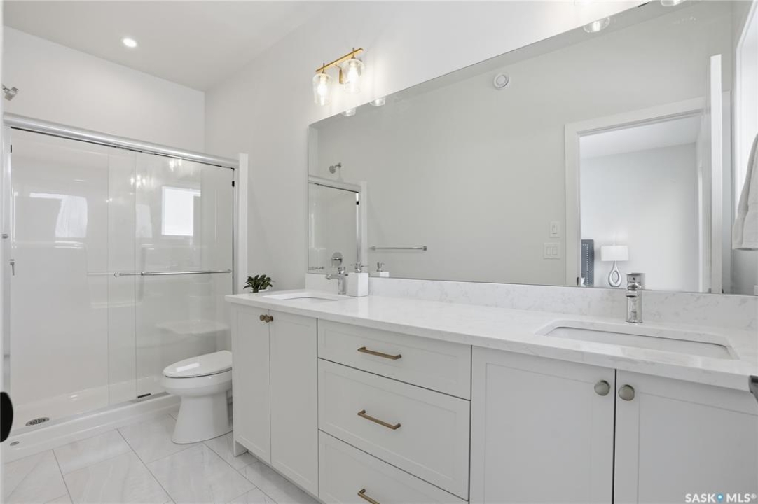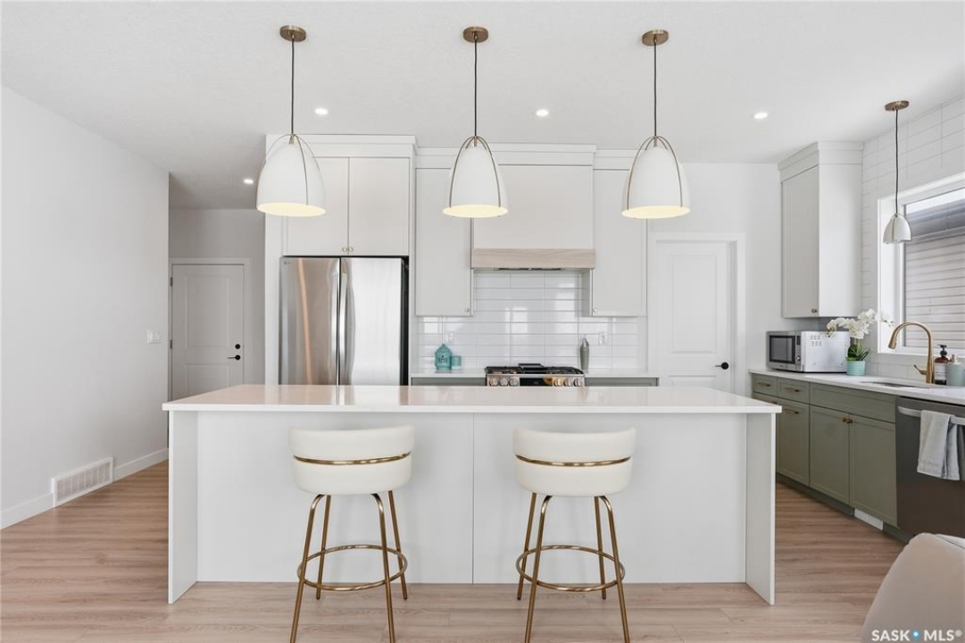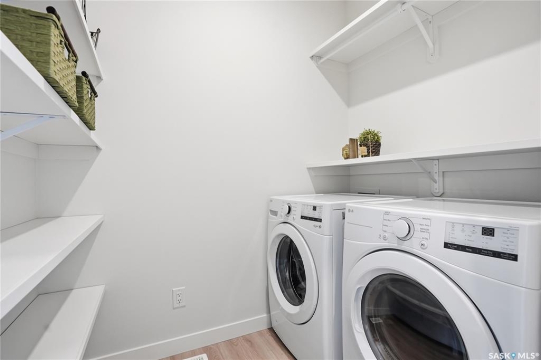 Welcome to Unit #20-515 Delainey located in “Ari by North Ridge” in the sought-after community of Brighton. This like-new, south GREEN SPACE BACKING bungalow style condominium offers 1286 sq ft on the main floor with a beautifully developed lower level and thoughtful upgrades throughout. The customized floorplan offers an excellent layout with bright open living spaces and quality finishes. The kitchen is a standout, featuring full height 9' cabinetry with cabinet lighting, quartz countertops, tile backsplash, a large central island, tiled backsplash, stainless appliances including a gas range, and a well-designed workspace that connects seamlessly to the dining and living areas. The main floor also features a spacious primary suite with lux ensuite, a second bedroom and full bath, plus a separate laundry room w/ built-in shelving. Additional upgrades are evident throughout including upgraded trim work, tile work and upgraded lighting and plumbing fixtures. The fully developed lower level adds impressive additional living space with two large bedrooms (with bright windows), a full 3-piece bathroom, and a beautiful recreation room featuring a linear feature fireplace and a wet bar with mini fridge — a fantastic space for relaxing or entertaining. Additional upgrades include custom window coverings, Energyide,u/g sprinklers, central air, triple pane, and a high efficiency furnace. The 24' deep heated garage is insulated and drywalled. Outdoor living is a highlight with a sunny south facing composite deck (10' x 19') complete with glass railing, gas BBQ outlet, backing directly onto green space and walking paths. Located beside Bear Paw Park and just minutes to McOrmond Drive, this home offers excellent access to Brighton amenities while enjoying a quiet and beautiful setting. An exceptional opportunity for those looking for a stylish, low maintenance home in one of Saskatoon's most desirable neighbourhoods.