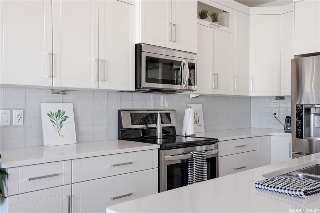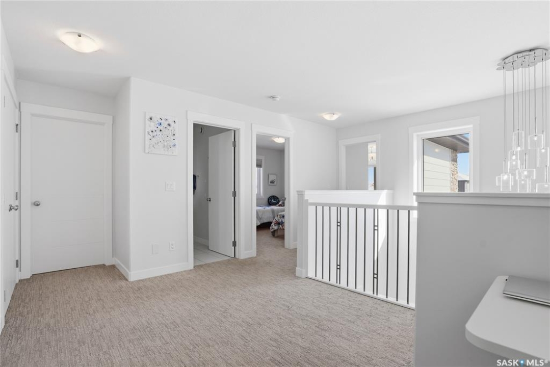 No neighbors behind and million dollar sunset views. Welcome to 619 Fast Crescent in Aspen Ridge - a fully developed 4 bedroom, 4 bathroom walkout backing directly onto the Northeast Swale, one of Saskatoon's most remarkable natural landscapes. From the street the home immediately stands out with clean curb appeal, thoughtful landscaping, and a custom build designed with both style and function in mind. Step inside to a bright east-facing entry with soaring ceilings that create an open and welcoming feel. Durable laminate flooring runs throughout the main floor and leads you into a comfortable living room centered around a gas fireplace. The kitchen checks every box with quartz countertops, modern cabinetry, and a large island that flows seamlessly into the dining area where oversized windows capture the stunning view behind the home. Patio doors lead to the upper deck with stairs down to the yard, making it perfect for enjoying the scenery. The main floor also offers a 2-piece powder room, pantry, and mudroom off the oversized garage. Upstairs you'll find three generously sized bedrooms including a primary suite with double sinks, a custom tiled shower, and a spacious walk-in closet, along with another 4-piece bathroom and convenient second-floor laundry. The fully developed walkout basement adds even more living space with a fourth bedroom, 4-piece bathroom, and a large family room that opens directly onto the covered patio and west-facing backyard. What truly sets this home apart is the setting. The backyard backs directly onto the Northeast Swale, one of the most biodiverse landscapes in the Saskatoon area, offering wide open prairie views, native grasses, wildlife, and incredible sunsets right outside your door. Added value includes all appliances, window treatments, central air conditioning, custom storage, extensive concrete work, and professional landscaping. If you've been waiting for a walkout backing the Swale, this is it!