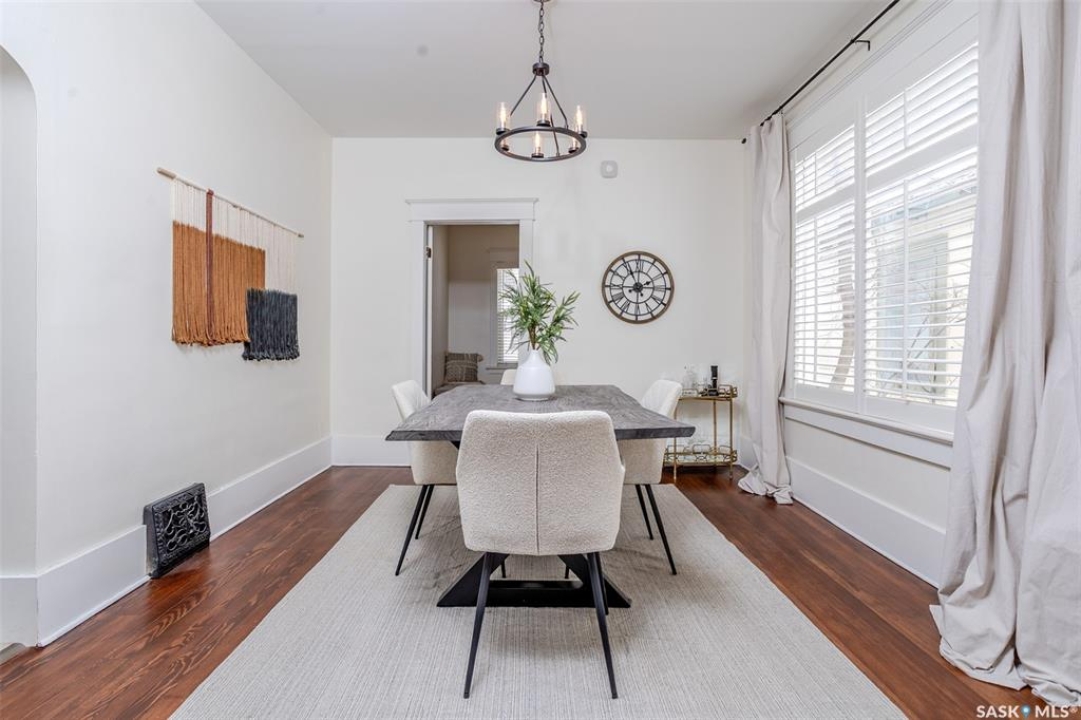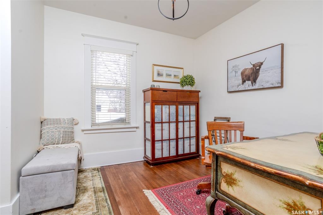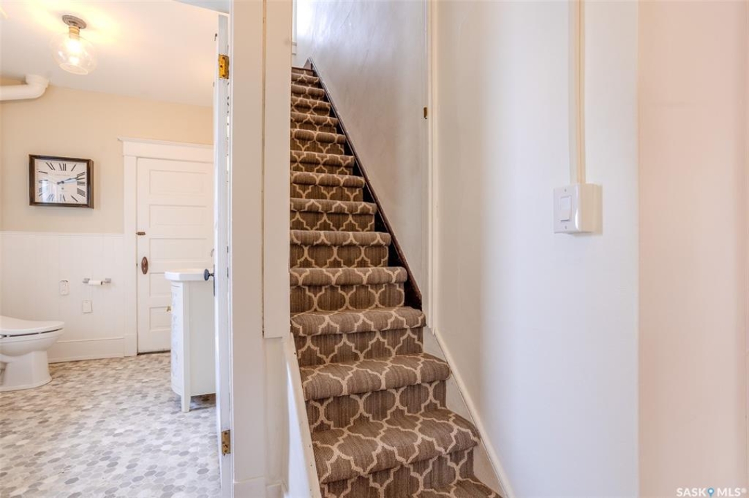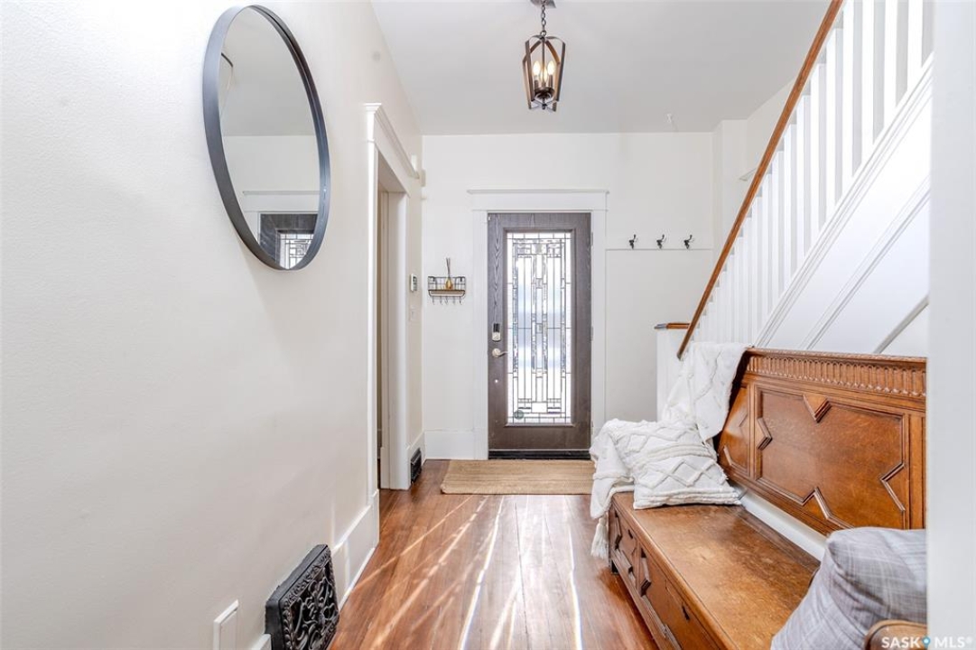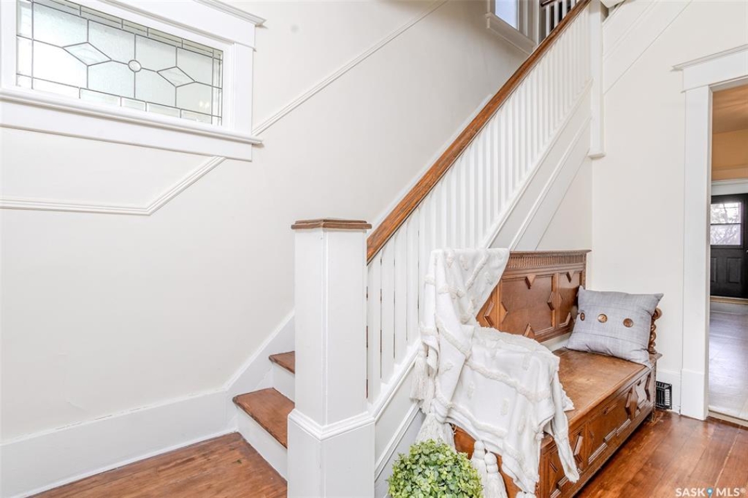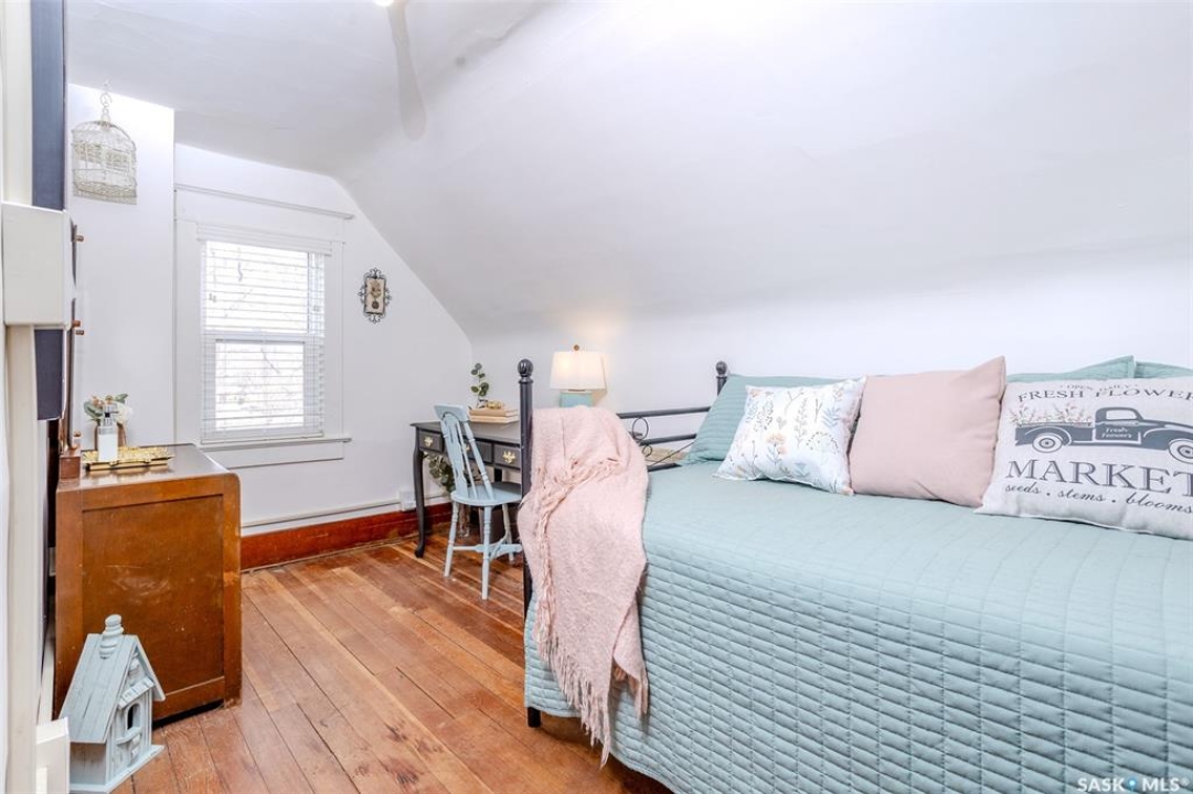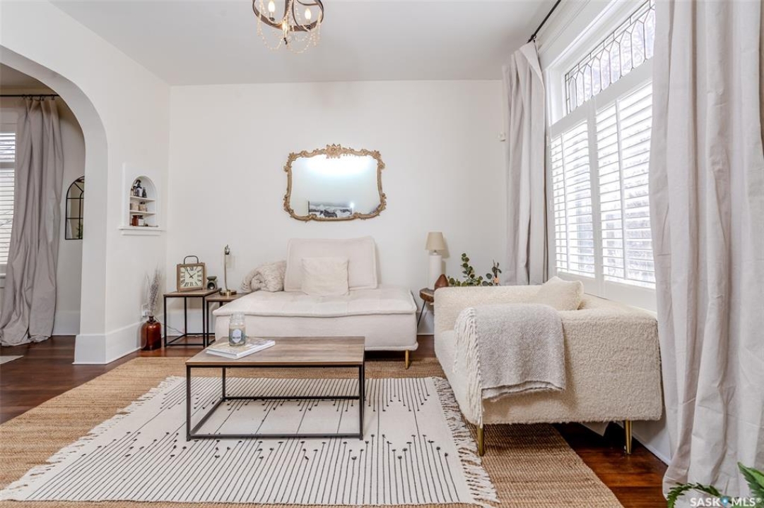 This timeless 2.5 storey character home in the coveted Nutana neighbourhood will not disappoint! The large foyer showcases the staircase and flows into a bright living room, semi formal dining area and a versatile back office or reading nook with convenient powder room. The galley kitchen is functional and well appointed with a gas range, tile backsplash, under cabinet lighting, built in dishwasher and plenty of cabinetry. The second level features two comfortable bedrooms along with a charming sitting room or library with built in shelving, creating the perfect place to relax or read. The beautifully refreshed four piece bathroom includes a claw foot tub, elegant wall sconces, updated wallpaper and access to a Juliet balcony overlooking the backyard. The third level provides two additional bedrooms, offering flexibility for family, guests or home office space. The basement is partially developed and includes a newer three piece bathroom, a den that works well as a hobby room or guest area, and a large utility and laundry space that provides excellent storage. Recent improvements include new furnace (2019), washer/dryer/fridge (2019), windows and exterior doors (2019), exterior paint (2019), electrical update & service extended to garage (2020), new blinds and shutters (2020), interior paint (2023), complete lead pipes replaced (2023), basement bathroom (2024), new detached garage (2024), main floor hardwood refinish (2025), deck (2025), backyard regraded (2025), second floor bathroom update (2025). Located just steps off Broadway Avenue and only minutes to the river valley trails and downtown Saskatoon, this home offers the best of Nutana living with tree lined streets, historic charm and easy access to some of the city's best shops, restaurants and amenities. With extensive upgrades already completed and timeless character preserved, this move in ready home offers a rare opportunity to enjoy classic Nutana charm with the comfort and reliability of modern updates.
