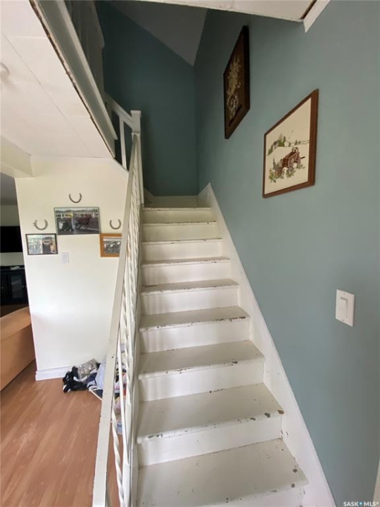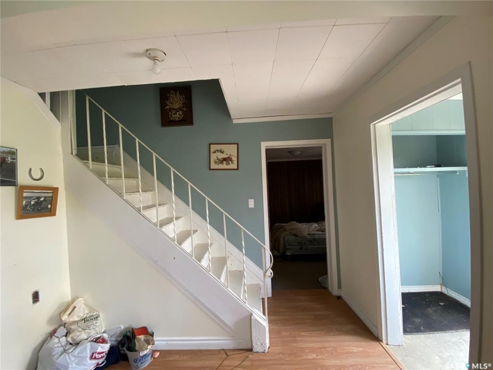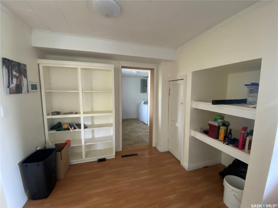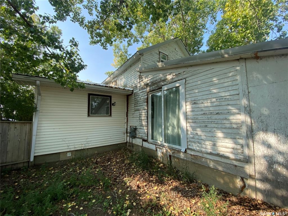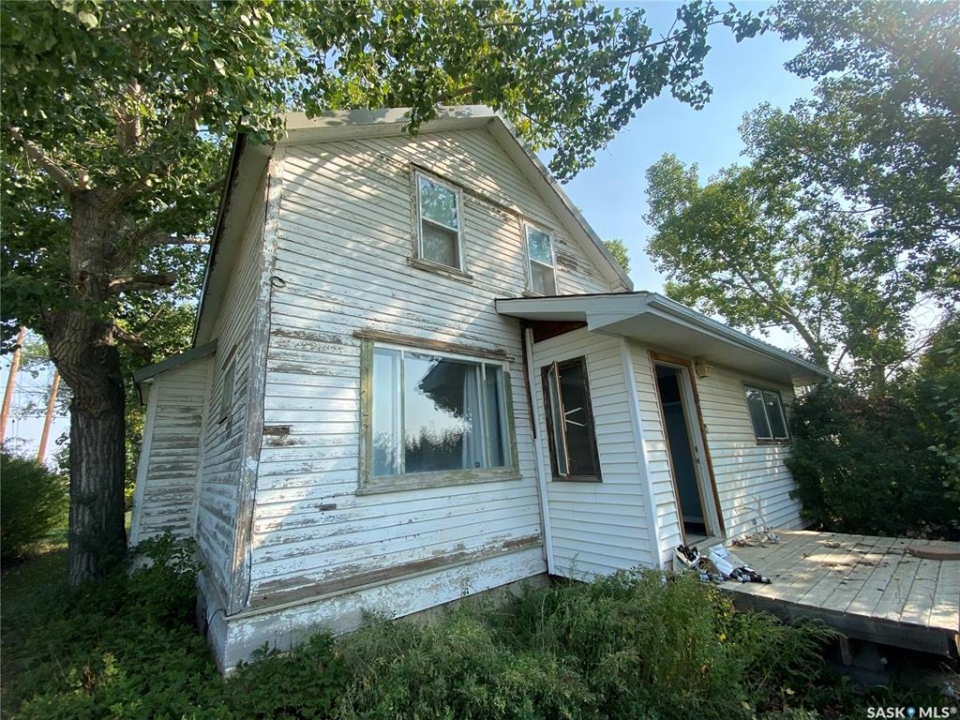 81 Grand Ave, Plenty, SK. This one and a half storey home is situated on two corner lots. Built in 1912 and offers approximately 923 sq.ft. of living space above ground. Some cute character left in this home. The living room is a good sized with built in shelving. The kitchen and dining offer plenty of cupboard space and patio doors as well as access to the back porch. An addition to this home allows for the large laundry room, 4 piece bath and bedroom. On the 2nd level up you will find two more bedrooms and another 4 piece bath. Features to this home include the large yard on a corner lot, large shed in the yard as well as furnace and water heater replaced approx 5 years ago. Call today for more information to to schedule your viewing!