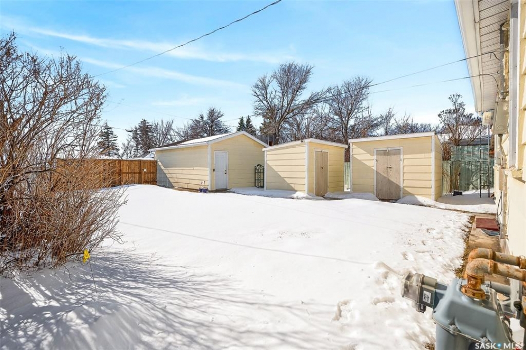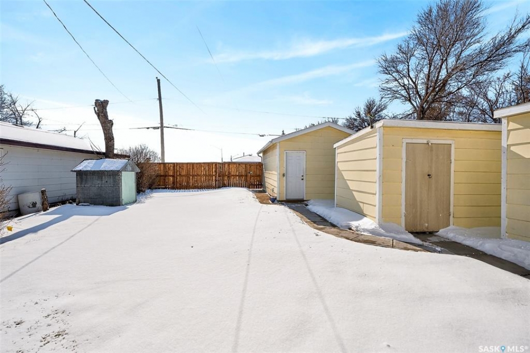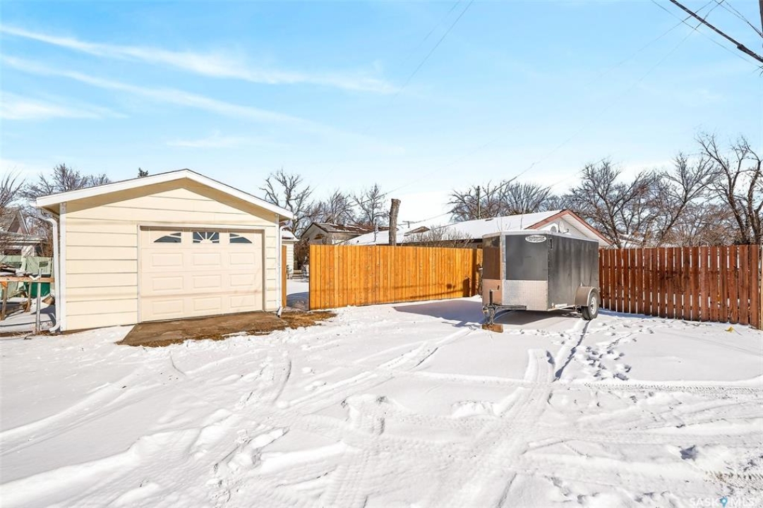 Cute and cozy remodelled 2 bedroom, 1 bathroom home has an additional den and a spacious family room in the partially finished basement. Pride of ownership is obvious with the many upgrades in the past 8 years, making this a first time home buyers dream. It would also be enjoyed by anyone looking to downsize to a solid, move in ready house. You will love the built in fireplace downstairs ready to warm up the space as well as the ambiance while cuddling around the couch for movie night or gathering to play games. Some of the upgrades include newer windows & shingles, new water & sewer lines, newer garage & sheds (3), fully fenced yard, new paint, floors, & lighting throughout, new bathroom & refreshed kitchen. Location is desirable with close proximity to the valley, walking paths, Cornerstone Christian School and the CFB Moose Jaw base. If this sounds like the home for you, reach out today to book a viewing!