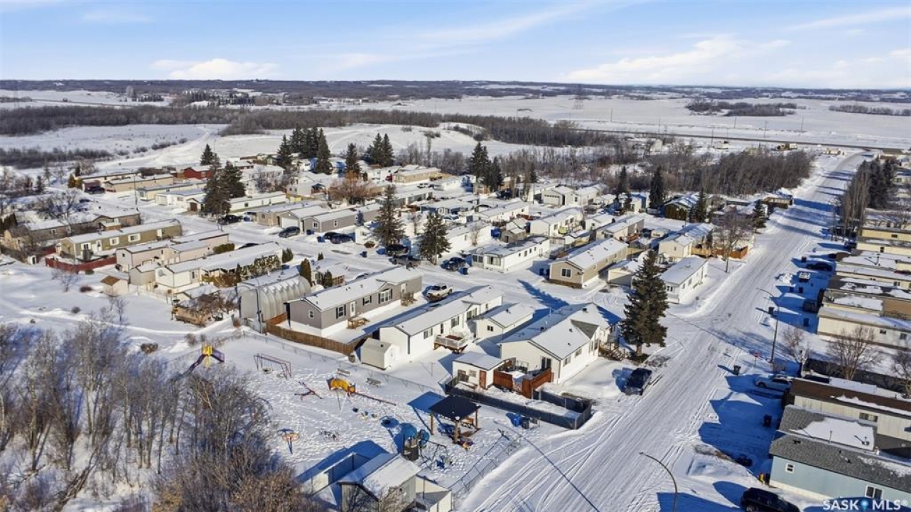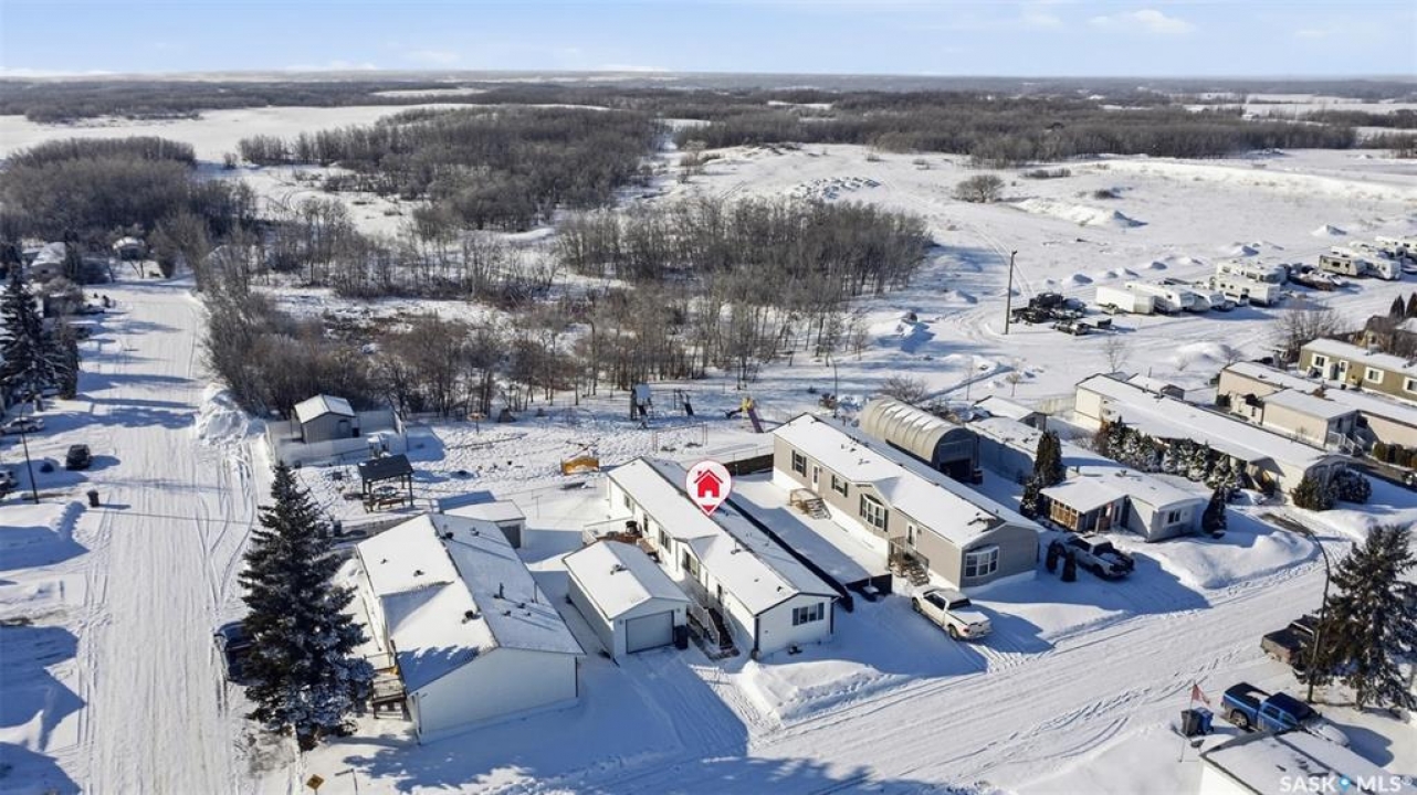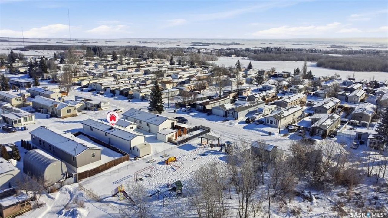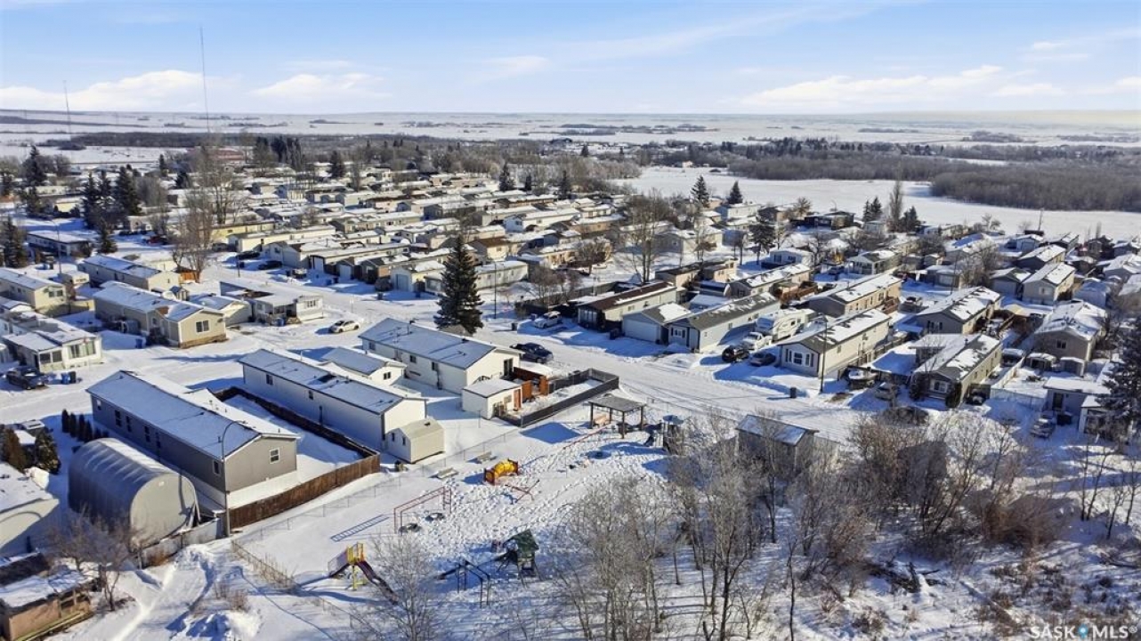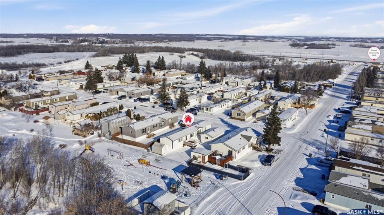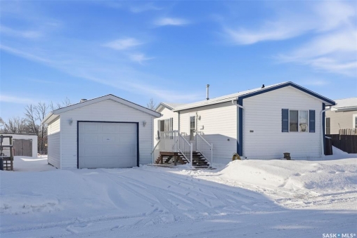 Escape the hustle and bustle of city living without sacrificing convenience or affordability! Located just minutes from Saskatoon, this well-maintained 2006 SRI-built modular home offers 1,216 sq. ft. of comfortable living space in the welcoming community of Sunset Estates Mobile Home Park, less than 10 minutes east of Saskatoon off Highway 5. Situated on a 50' x 100' leased lot backing directly onto a play park, this home offers a peaceful setting with plenty of room for families to enjoy. Inside, you'll appreciate the bright and open layout featuring cathedral ceilings and a spacious open-concept kitchen, dining, and living area—perfect for everyday living and entertaining. The thoughtfully designed floor plan includes 3 bedrooms and 2 full bathrooms. Two bedrooms and a 4-piece bathroom are located at the front of the home, while the private primary suite at the back features a walk-in closet and a large 4-piece ensuite. A generous laundry/utility room adds extra functionality and storage. Outside, the property includes a 14' x 26' garage, a deck, garden shed, and a double-wide driveway (half paved, half gravel). Additional features include central air conditioning, built-in dishwasher, fridge, stove, hood fan, all existing window coverings, and an automatic garage door opener—making this home truly move-in ready. Residents of Sunset Estates enjoy convenient on-site amenities including a gas station, convenience store, community centre, rental office, and playground area. Lot rent is $725/mo as well as the $80/mo RM fee & $45/mo water levy. Buyers must obtain park approval from management as a condition of purchase and verify current lot fees. If you've been looking for affordable living close to the city with a quieter lifestyle, this is a fantastic opportunity worth seeing!
