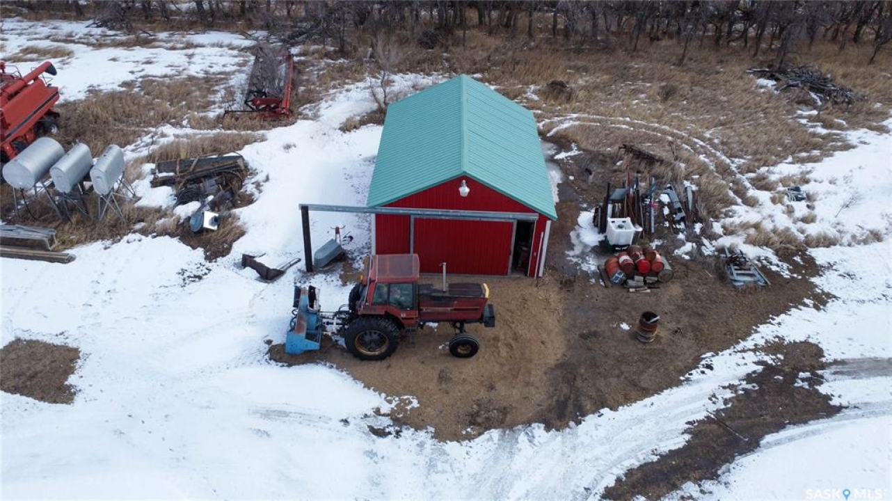Peaceful Acreage Living on 29.38 Acres! Escape the hustle and enjoy the space and serenity this beautiful 29.38-acre property has to offer. This 1,380 sq. ft. bungalow features 3 bedrooms and 1 bathroom, providing comfortable and functional country living. The main floor offers a bright and inviting layout with a spacious living area, large windows that fill the home with natural light, and a welcoming kitchen with plenty of cabinet space. Three comfortable bedrooms complete the main level. The home also features a full unfinished basement, offering tons of potential for future development — whether you envision additional living space, a recreation area, extra bedrooms, or plenty of storage. Outside, the property truly shines. Enjoy wide-open space with 29.38 acres of land, ideal for hobby farming, animals, gardening, or simply embracing peaceful rural living. The property includes multiple outbuildings including a barn and shops, providing excellent space for storage, projects, or equipment. For added durability and low maintenance, the house, barn, and shops all feature metal roofs. Whether you're looking for room to grow, a hobby farm, or a private acreage retreat, this property offers endless possibilities and the chance to create your own piece of country paradise.