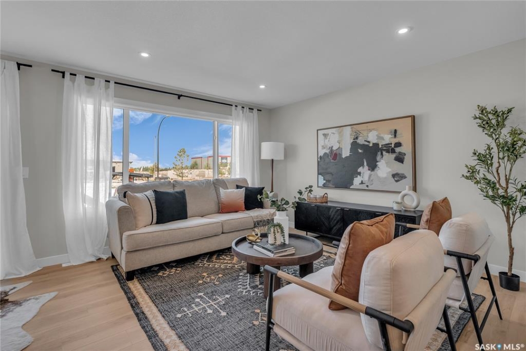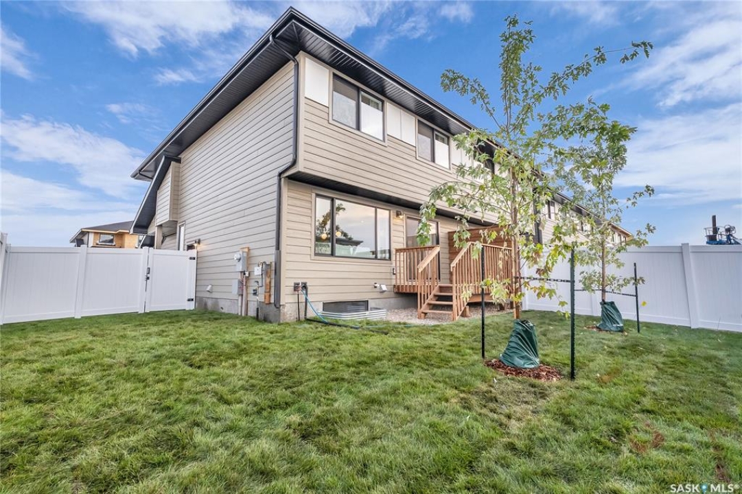 SHOWHOME now open! 419-155 McFaull Way. Welcome to Wilson's Ranch — where modern design meets everyday functionality. This well-crafted 3-bedroom, 2.5-bath semi-detached home (Duplex B) offers an open-concept layout ideal for both daily living and entertaining. Highlights include a dedicated podcast and home office space, a spacious primary suite with a walk-in closet and ensuite, double attached garage and the convenience of an upper-level laundry room. The stylish kitchen flows effortlessly into the dining and living areas, creating a bright, inviting atmosphere perfect for gathering with family and friends. Enjoy a fully fenced and landscaped backyard and deck with privacy wall. Situated just steps from Wilsons Lifestyle Centre, The Keg Steakhouse + Bar, Save-On-Foods, Landmark Cinemas, and Motion Fitness, this location offers unbeatable access to essential amenities. With nearby parks, future schools, and public transit, it's a community designed to grow with you. All North Prairie homes are protected under the Saskatchewan Home Warranty Program. PST & GST included with rebate to builder. Photos are for reference only and may not reflect the exact unit. *First-Time Home Buyer Price: $481,425. Eligibility for the First Time Home Buyer GST rebate is determined solely by CRA. Purchasers are responsible for confirming they meet all eligibility requirements. If a rebate is not approved or is reduced, the Purchaser is responsible for paying the full GST amount.