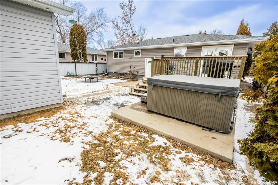 This well-maintained bungalow has been lovingly cared for by the same owners over the past 20 years. The bright living room is filled with natural light, creating a welcoming space to relax. Just around the corner, the dining area features patio doors that lead out to a sunny deck—perfect for enjoying meals or morning coffee outdoors. The eat-in kitchen offers a practical galley layout that keeps everything close at hand, making it easy to cook while chatting with family or keeping an eye on the kids. Down the hallway, you'll find three comfortable bedrooms and a 3pc bathroom. The lower level adds plenty of extra living space. There's a cozy family room ideal for movie nights or game days, along with two flexible den areas. One is currently used as a bedroom, while the other would make a great home office or hobby room. A three-piece bathroom, laundry area, and additional storage space complete the basement. Step outside and enjoy your own private retreat. With a spacious deck, patio block area & a hot tub for relaxing evenings. The 24x28 heated oversized-double garage offers even more possibilities—whether you need a workshop, extra storage, or the ultimate man cave!