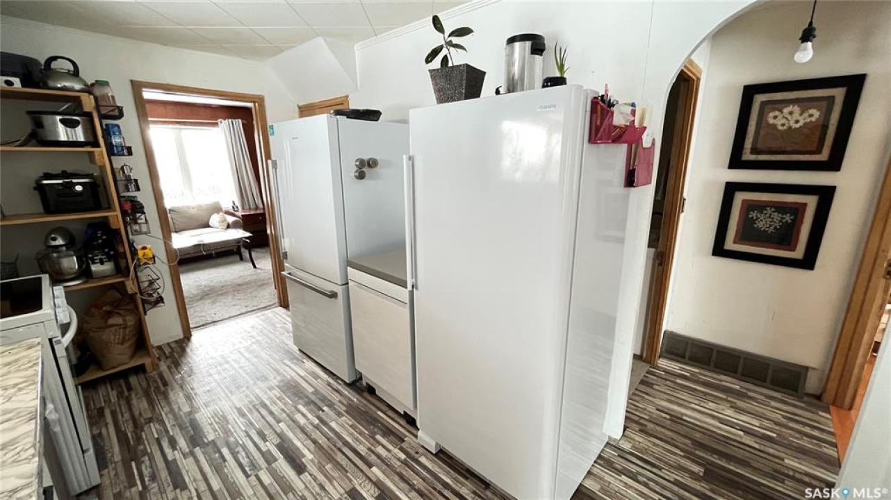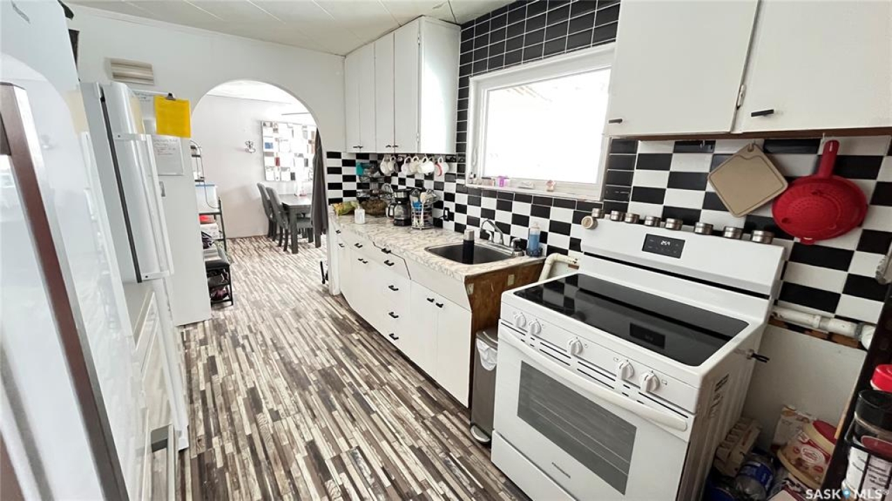 Charming Upgraded Home in Tompkin, SK. Inside, you'll find three spacious bedrooms and a bright, adaptable den that can easily accommodate a single bed, offering an ideal space for guests or a home office. The heart of the home is kept cozy with a professionally repaired forced air furnace, providing reliable warmth throughout the seasons. The kitchen and laundry areas shine with a full suite of new appliances, including an all-in-one washer/dryer unit and a standup freezer, ensuring daily routines are as convenient as they are efficient. Throughout the home, new flooring and windows create a fresh atmosphere while enhancing energy efficiency. Upgrades continue behind the scenes, with an updated electrical panel offering 100 Amp service and new wiring in both the kitchen and bathroom. For added peace of mind, all doors are equipped with new locks, and the stylish curtains remain optional, allowing you to personalize your space. One of the attached garages has been thoughtfully converted into a heated shop space with electric baseboard heating, ready to be transformed into whatever you need—a mother-in-law suite, a man-cave, a she-shed, or any creative retreat you envision. If you're interested in carrying on the current business, the seller is willing to include the inventory, offering a unique opportunity for entrepreneurial buyers. This rare Tompkin home offers flexibility, comfort, and business potential all under one roof. Schedule a viewing and experience all that this exceptional property has to offer!
