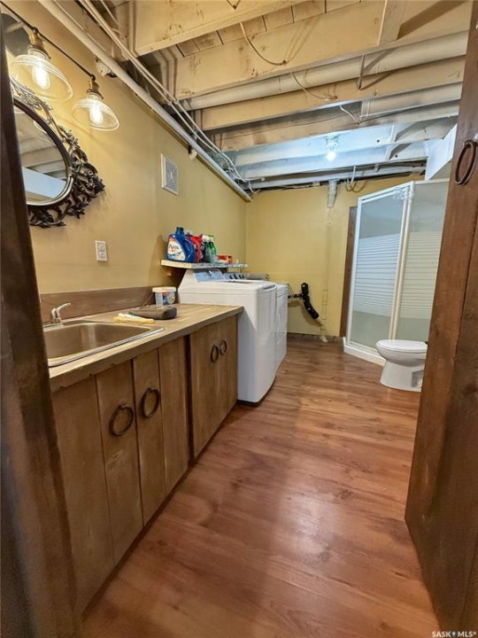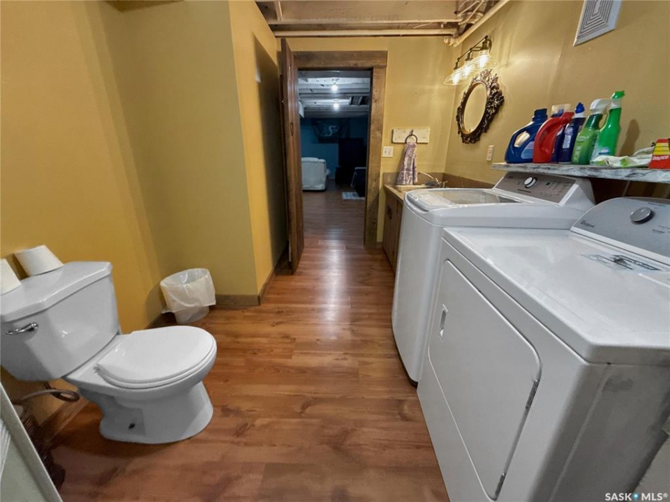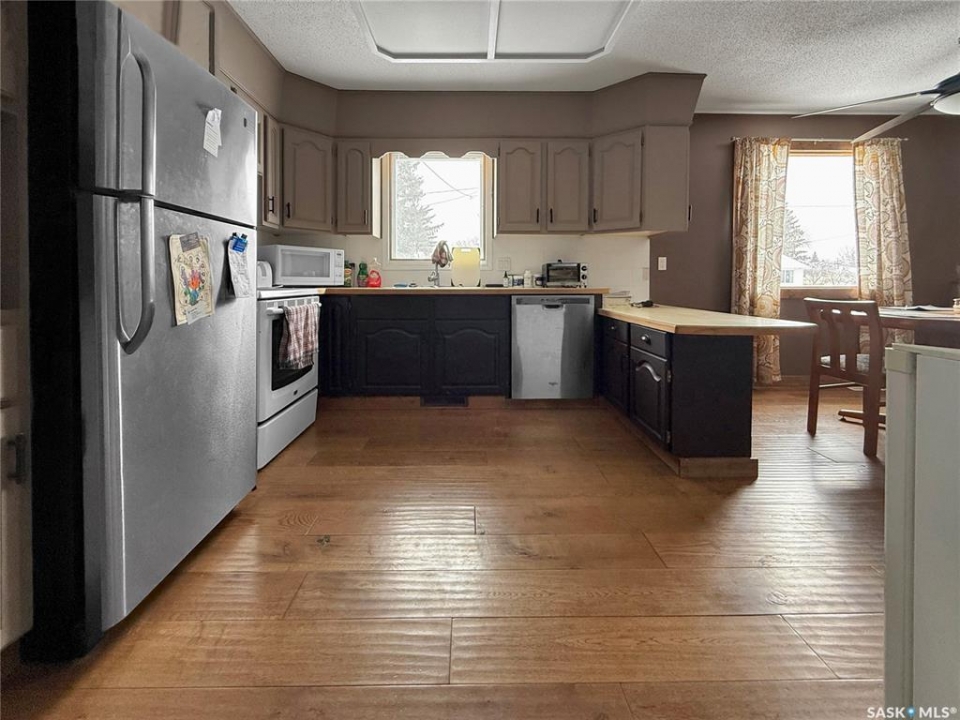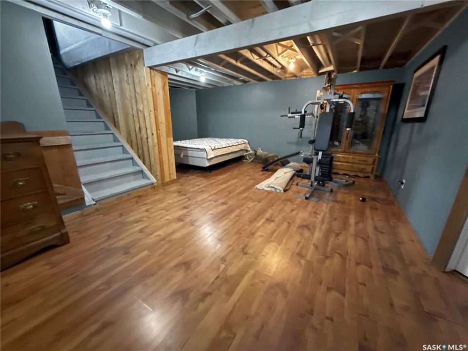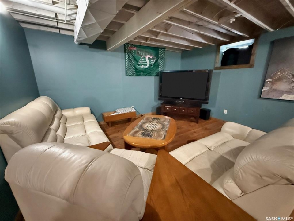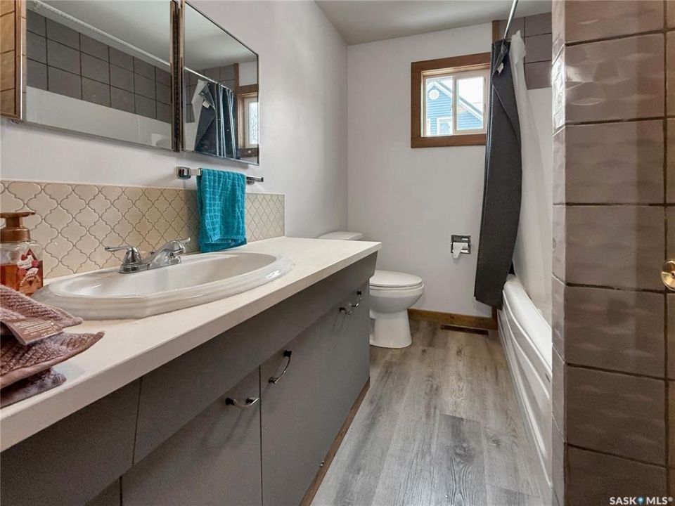 If your after a 4 bed, 2 bath house on a girthy fenced lot in the heart of Rocanville: here she be. A ton of potential, updated shingles, furnace & AC make this bangin' bungalow slide to the top of your roc city lists! East facing kitchen, dining and living area with a ton of windows with copious amounts of that rich potashville natural light. The main floor is separated with business on the front and the party at the rear with a large bank of closets dividing out the main house and bedrooms. One main floor bedroom boasts a 2 pc en suite and a slick sliding patio door to a great sized back yard. The main floor also has a fresh coat of paint, refreshing and reviving the cupboards and some excellent barn door accents. Down stairs an oversized rec room with fireplace steal the show. An extra office/bedroom in the basement add extra value to the basement with the basement laundry and 3 pc bath completing this package deal. Don't hesitate on this homie spot in the heart of roc city!
