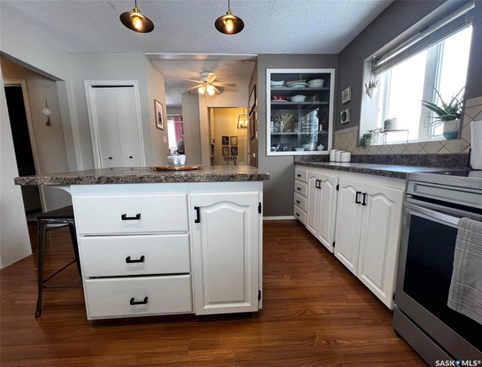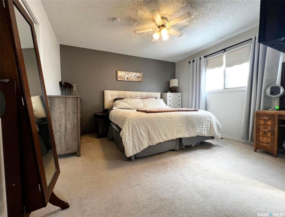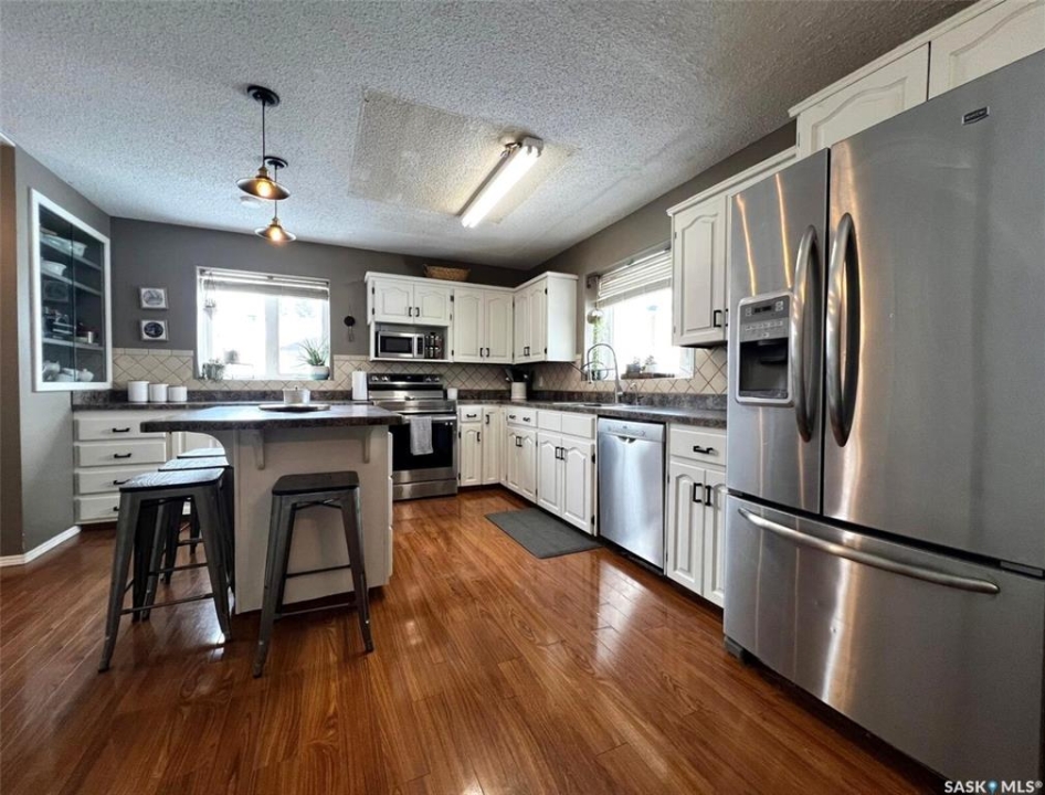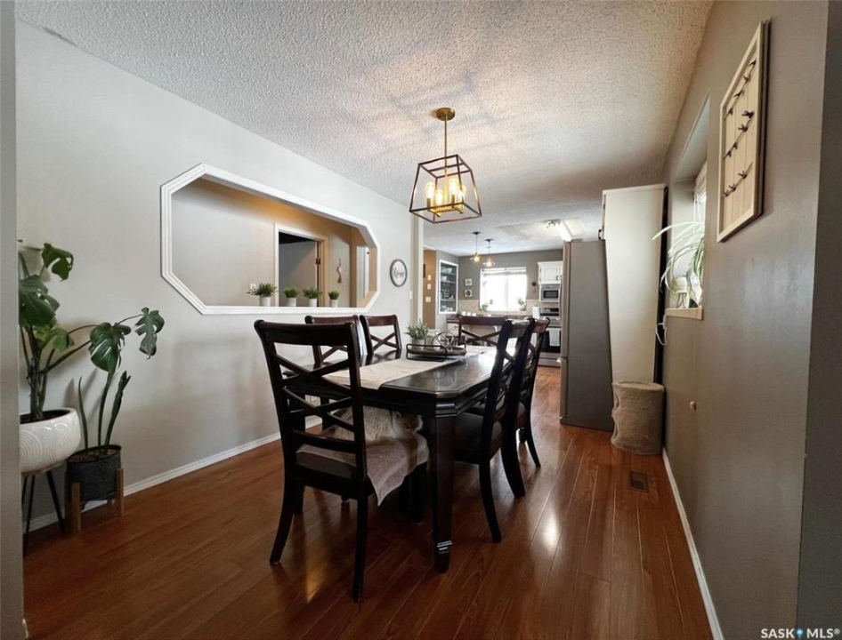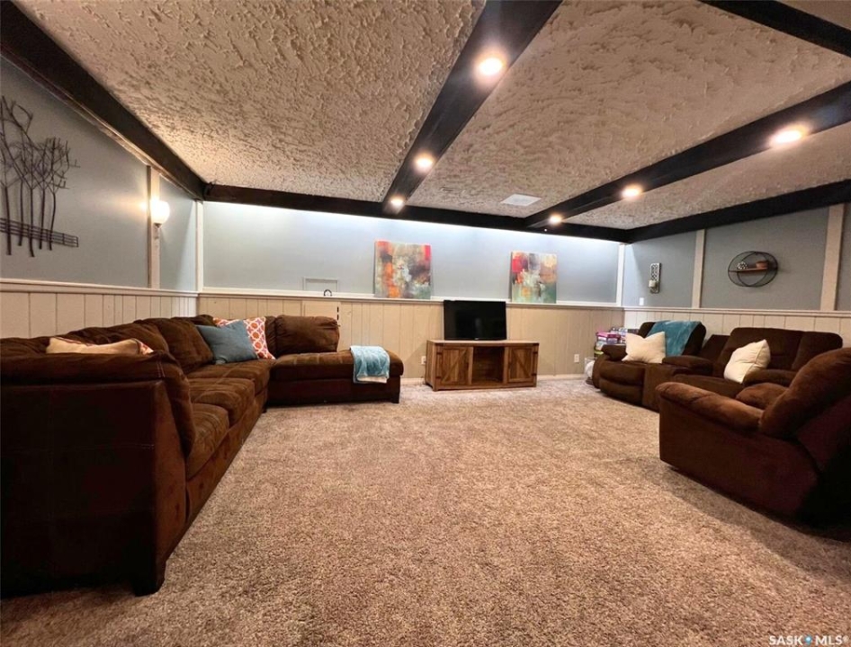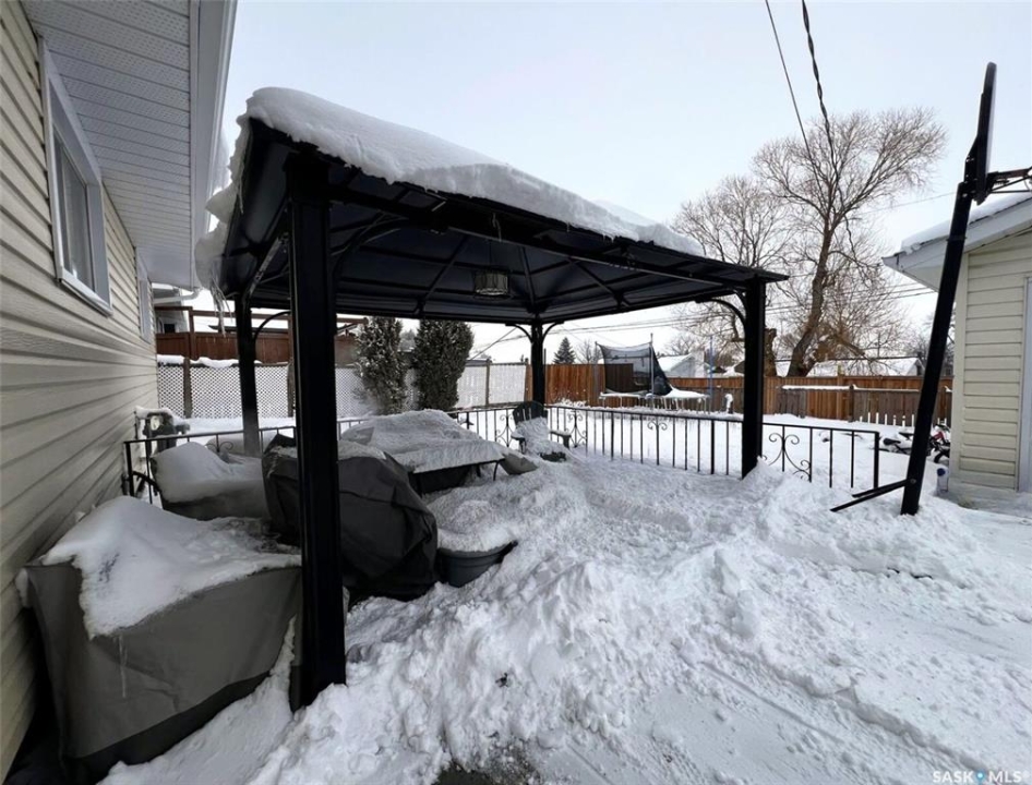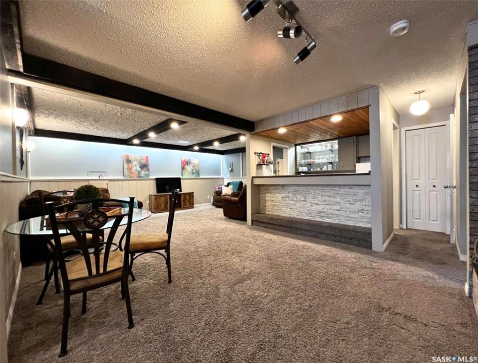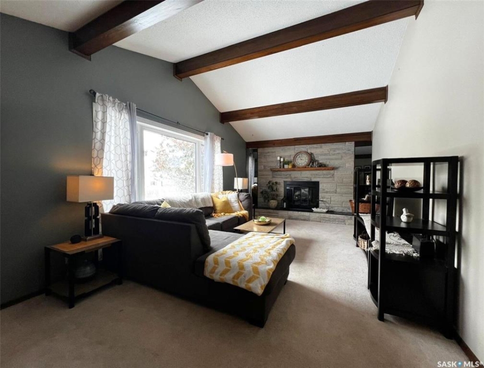 Located in a highly-desirable northeast neighbourhood, this home rests in a circular flow & faces a lovely open area with mature trees & grassy open space. In front, the yard is low maintenance with decorative rock & juniper clusters, while the driveway stretches behind the house to the garage. The exterior of the home is in great condition with a fenced yard, a gazebo on a concrete patio, & the covered front deck presents a warm welcome. The tidy front entry hosts a coat closet ahead, while to your left, the living room is very inviting with airy, vaulted ceilings featuring dark beams, there is a bright PVC picture window, & a beautiful feature of this space is the statement electric fireplace framed by stone surround. The cheerful dining room hosts a window & a peekaboo to the hallway, providing a feeling of openness. This area connects seamlessly through to the bright kitchen with ample white cabinetry, stainless steel appliances, a pantry, & an island with a double-end overhang for barheight seating with pendant lights above. Behind here is both the back entry & the convenient main-floor, practical laundry room with storage. Down the hallway there is a 4-piece bathroom, 2 comfortable sized bedrooms side-by-side, & across from these sits the spacious primary bedroom with twin closets & a private 3-piece ensuite. The full basement is well suited for entertaining, a kids zone, & more. At the base of the stairs you are greeted by an elegant paneled wall along an open area which leads to a wet bar, an attractive brick gas fireplace, & a secondary living room which would make a great TV zone. Also nearby there is a tastefully updated 3-piece bath which features ceramic tile floors, a tiled shower & backsplash, another spacious bedroom with 2 windows & a closet, there is a bonus room with a barn door for a guest bed or other, & there are storage options in several locations.**Note: presentation of offers for this listing will be received Thursday, Mar 19th at 6:00PM.