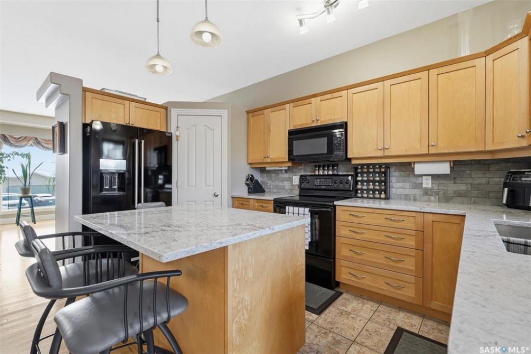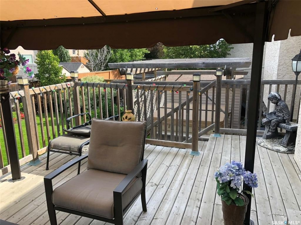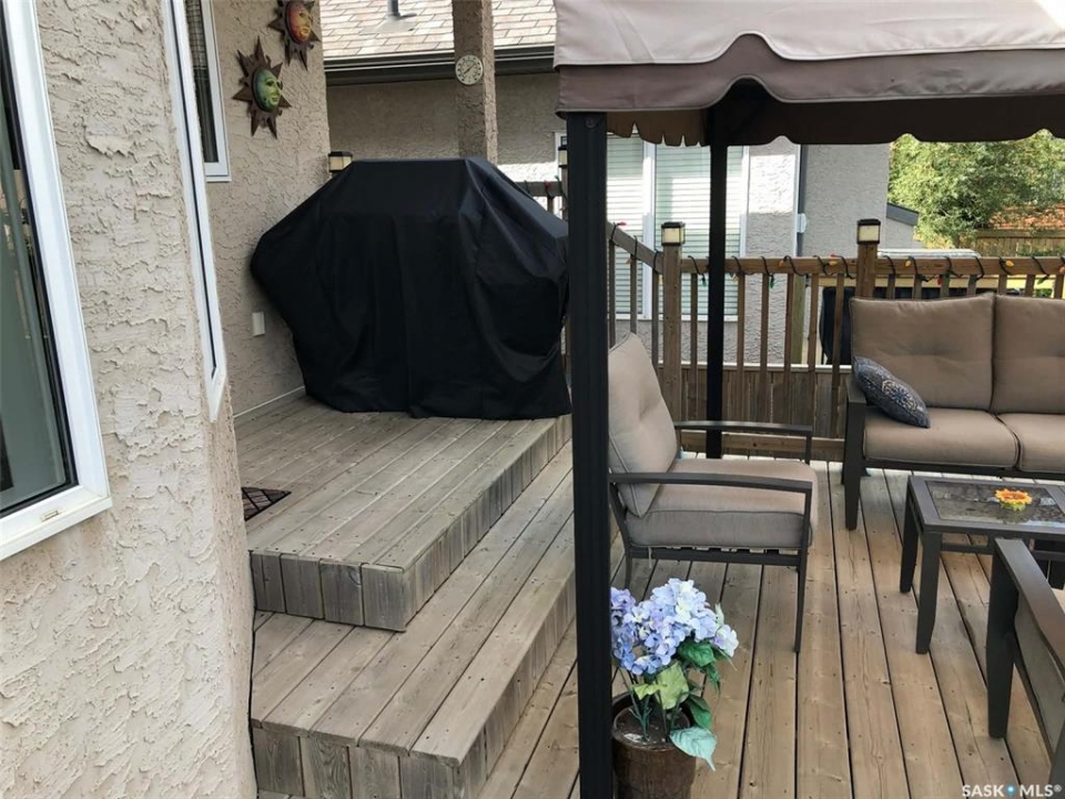 Welcome home to 510 Greaves Lane, nestled in one of Saskatoon's most sought-after family-friendly neighbourhoods — beautiful Willowgrove. Lovingly maintained by its original owners since it was built, this meticulously cared-for Campbell Custom Home is ready to welcome its next family. Sunny and bright with generous windows throughout, the home flows beautifully with large rooms and a warm feel from top to bottom. The kitchen is a true heart-of-the-home space, featuring new quartz countertops, a farmhouse-style stainless steel sink, a pantry, and a full appliance package. The primary ensuite has been thoughtfully renovated, and peace of mind comes easy with new shingles (2024), a new water heater (2025), and a well-maintained furnace. The bright basement family room and games room offer even more space to spread out. Step outside to a backyard built for living — a multi-tiered professionally built deck, a Coast Spas "Manhattan" hot tub with built-in sound system, a firepit area, fully fenced yard with underground sprinklers front and back, and an outdoor shed. The heated, fully insulated garage completes the package. All of this just minutes from top-rated schools, parks, and shopping in a neighbourhood loved for its friendly community feel. Homes this well-loved don't come along often — come see it for yourself.