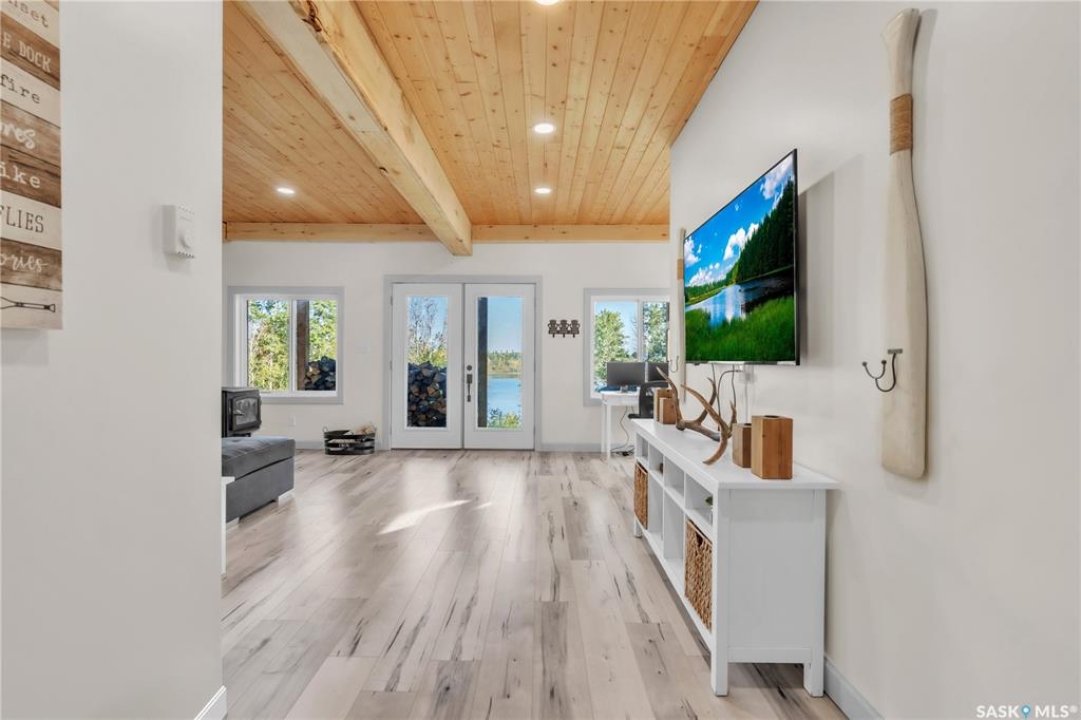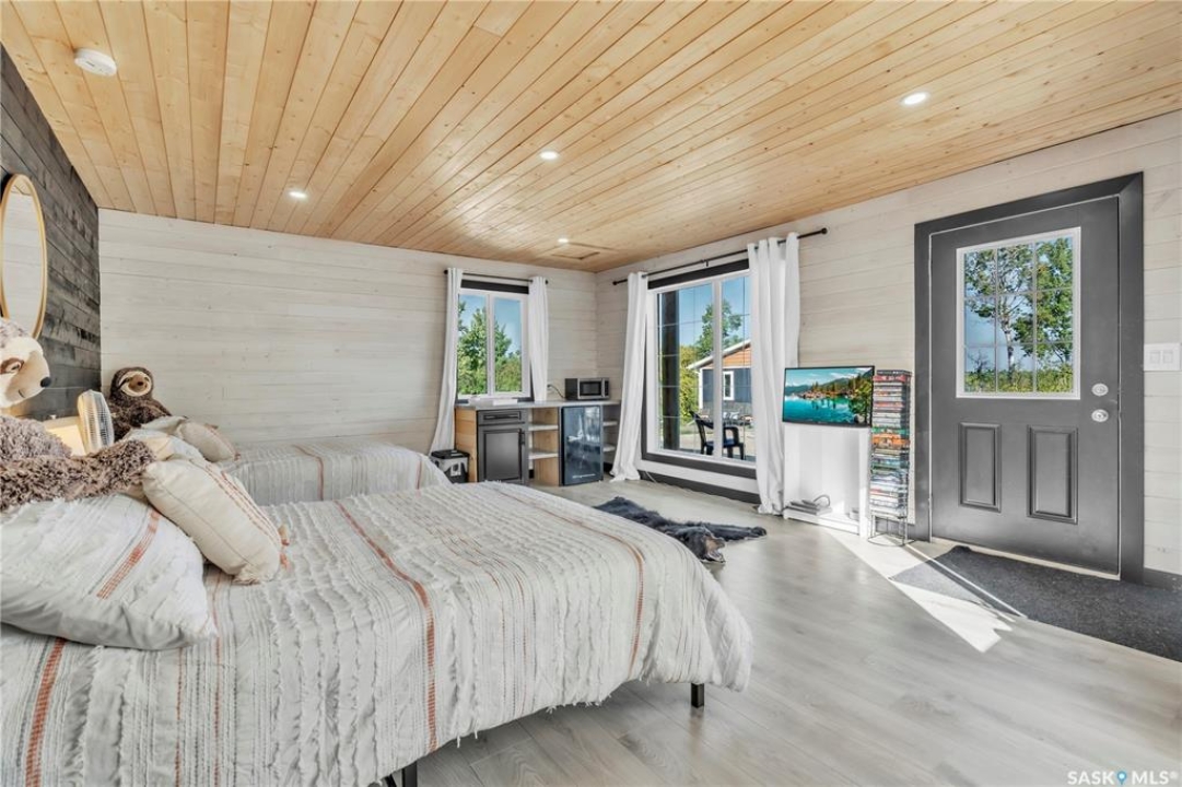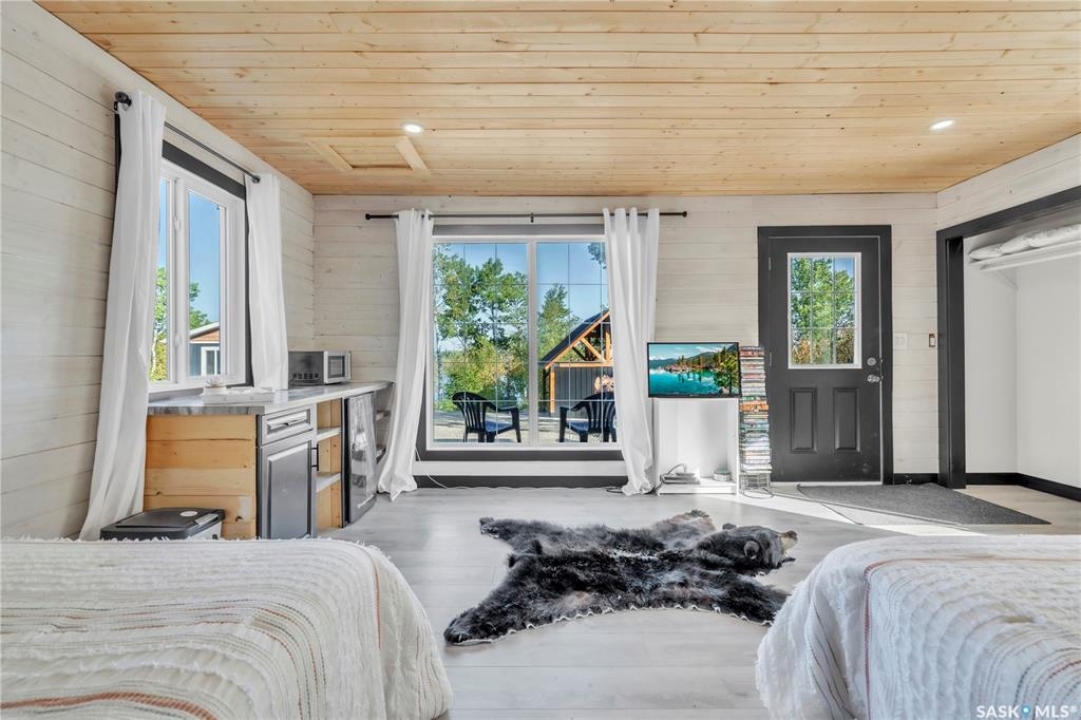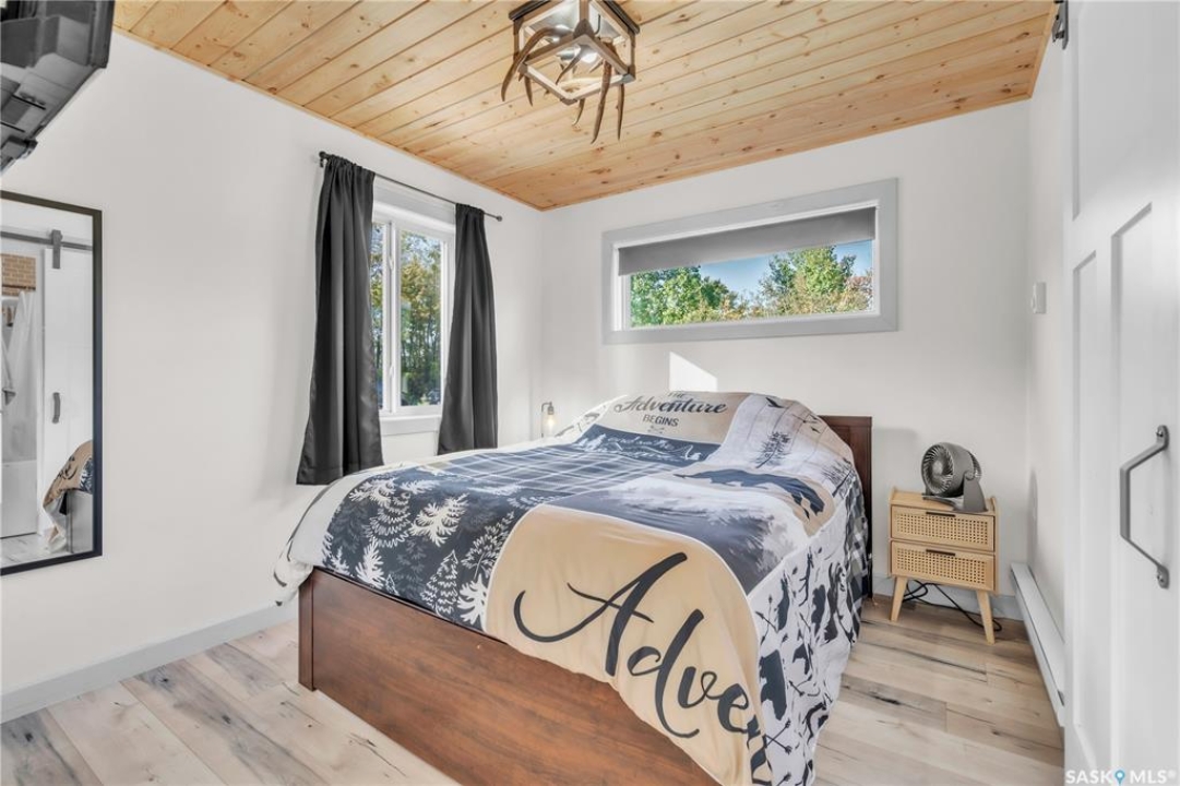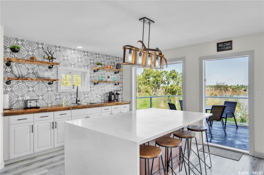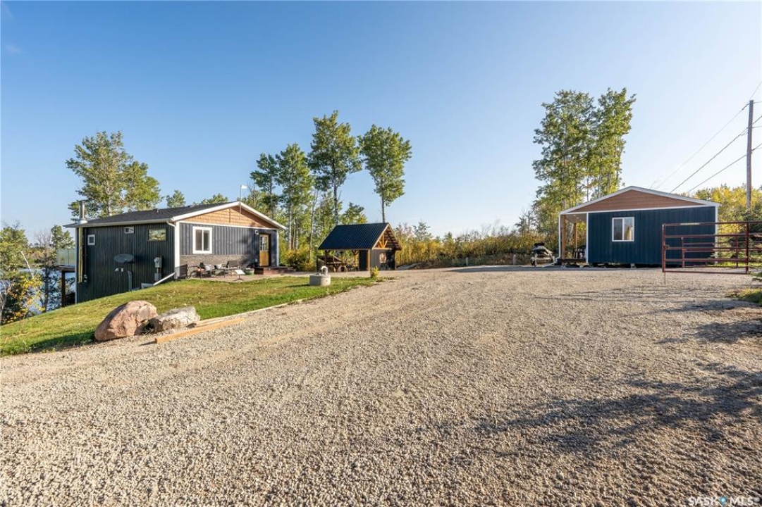 Tucked into a quiet subdivision on Murphy Lake, this stunning year-round home offers the perfect blend of comfort, privacy, and lake life. With three bedrooms, two bathrooms, and a separate bunkhouse for guests, this property was designed for making memories. The main floor features the primary bedroom with access to a four-piece bathroom and laundry. The bright open kitchen is the heart of the home, showcasing live-edge wood shelving, a large quartz island, and expansive windows with lake views and fill the space with natural light. The walkout basement adds two additional bedrooms, a three-piece bathroom, a thoughtfully designed bar area, and a spacious family room centered around a cozy wood stove, perfect for chilly mornings or a winter escape. Outside, the beautifully landscaped yard invites you to relax and entertain. A custom stamped concrete walkway leads to a fire pit area and outdoor kitchen ready for your BBQ and big screen TV. The 15' x 19' bunkhouse creates a private retreat for overnight guests or teenagers, while mature trees on both sides of the property provide exceptional privacy. A private path leads directly from the home to Murphy Lake, where you can easily launch your boat off your very own dock or spend the day fishing, cruising, or paddle boarding. Serviced by a cistern and septic system, this property is located approximately 1.5 hours north of Lloydminster and just over an hour southeast of Cold Lake. The town of Loon Lake is only 15 minutes away and offers groceries, restaurants, a medical clinic, and a golf course, with many additional lakes and parks nearby to explore.