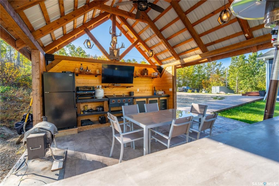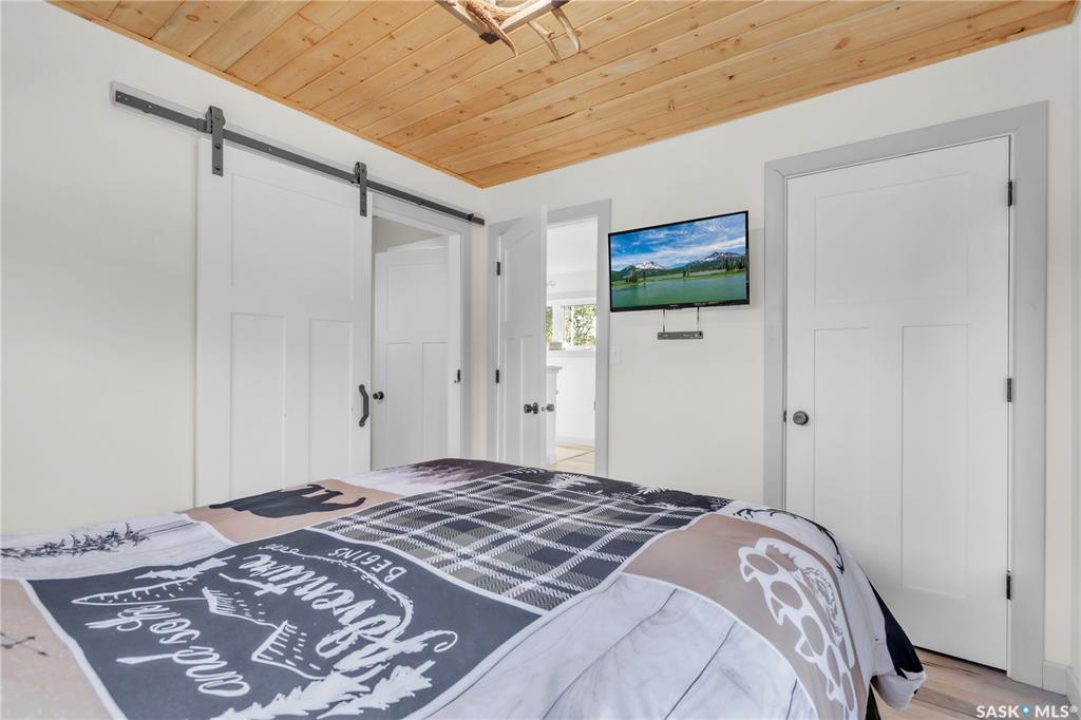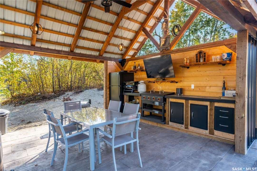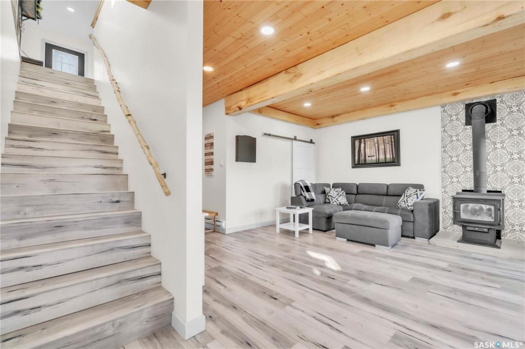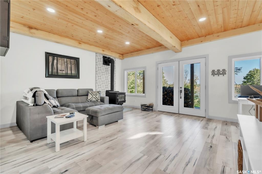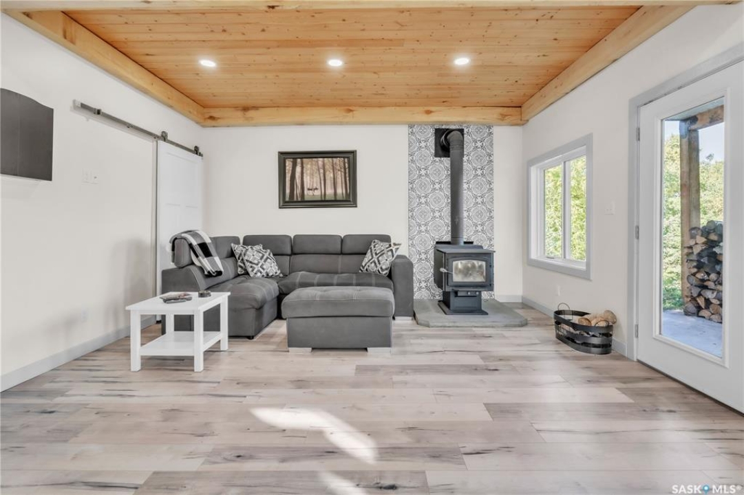Tucked into a quiet subdivision on Murphy Lake, this stunning year-round home offers the perfect blend of comfort, privacy, and lake life. With three bedrooms, two bathrooms, and a separate bunkhouse for guests, this property was designed for making memories. The main floor features the primary bedroom with access to a four-piece bathroom and laundry. The bright open kitchen is the heart of the home, showcasing live-edge wood shelving, a large quartz island, and expansive windows with lake views and fill the space with natural light. The walkout basement adds two additional bedrooms, a three-piece bathroom, a thoughtfully designed bar area, and a spacious family room centered around a cozy wood stove, perfect for chilly mornings or a winter escape. Outside, the beautifully landscaped yard invites you to relax and entertain. A custom stamped concrete walkway leads to a fire pit area and outdoor kitchen ready for your BBQ and big screen TV. The 15' x 19' bunkhouse creates a private retreat for overnight guests or teenagers, while mature trees on both sides of the property provide exceptional privacy. A private path leads directly from the home to Murphy Lake, where you can easily launch your boat off your very own dock or spend the day fishing, cruising, or paddle boarding. Serviced by a cistern and septic system, this property is located approximately 1.5 hours north of Lloydminster and just over an hour southeast of Cold Lake. The town of Loon Lake is only 15 minutes away and offers groceries, restaurants, a medical clinic, and a golf course, with many additional lakes and parks nearby to explore.
