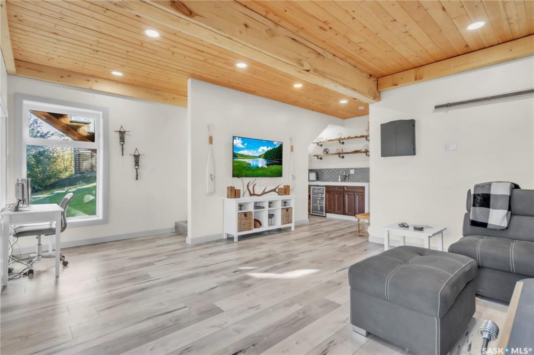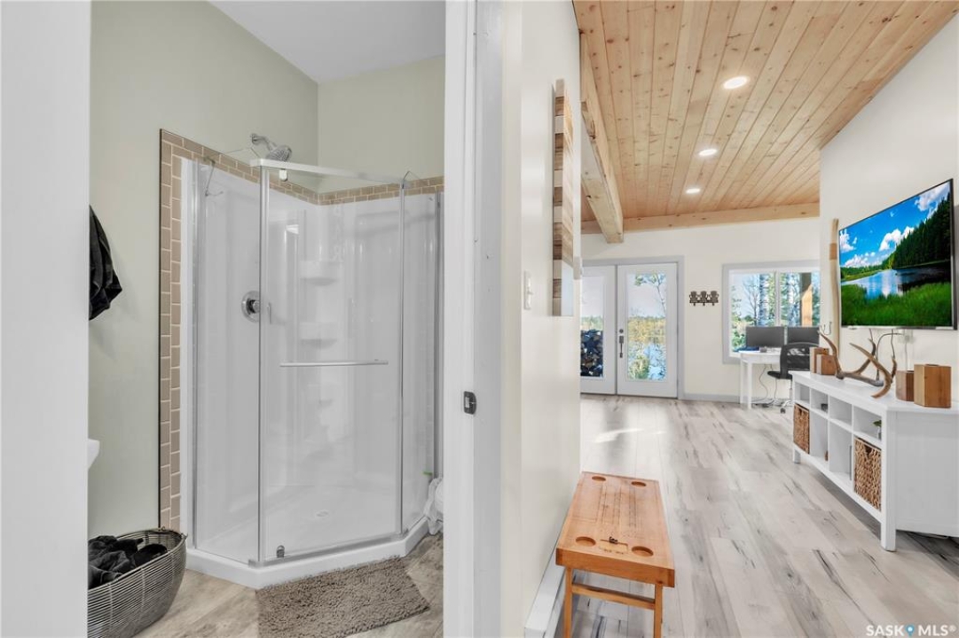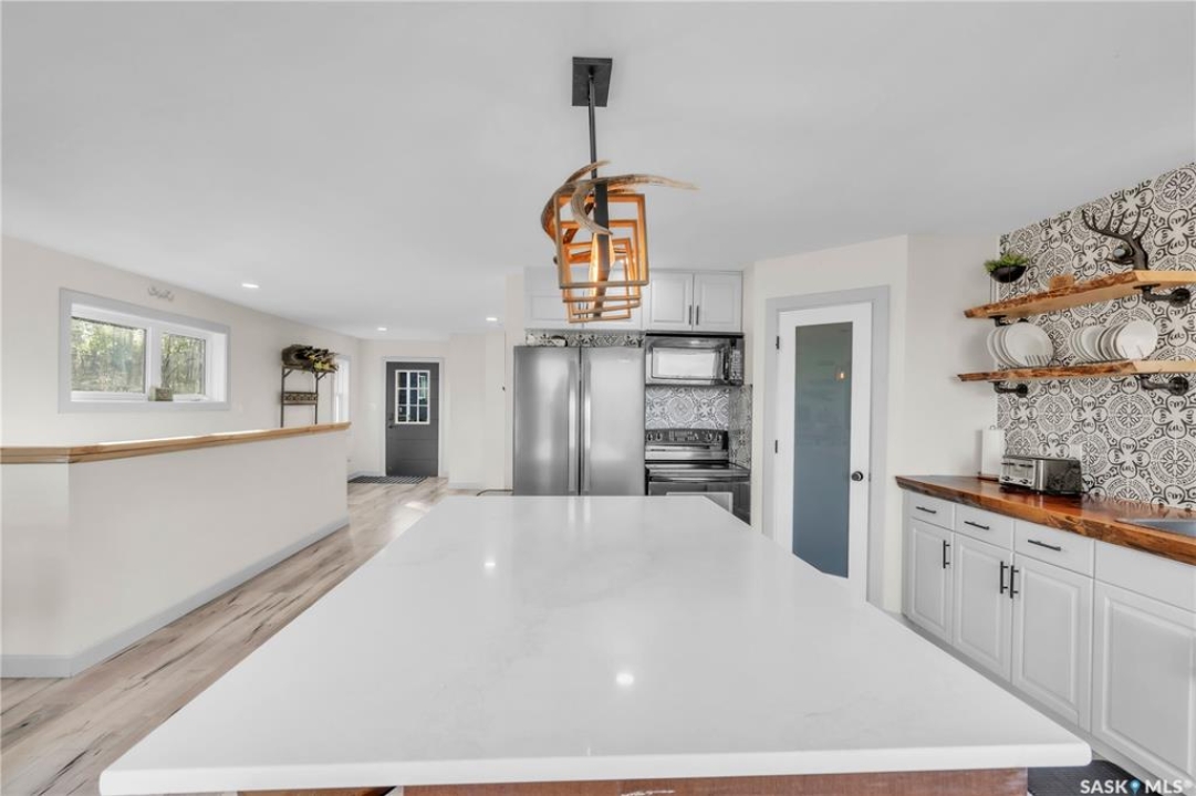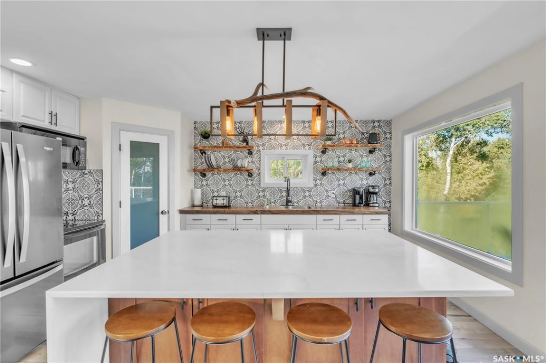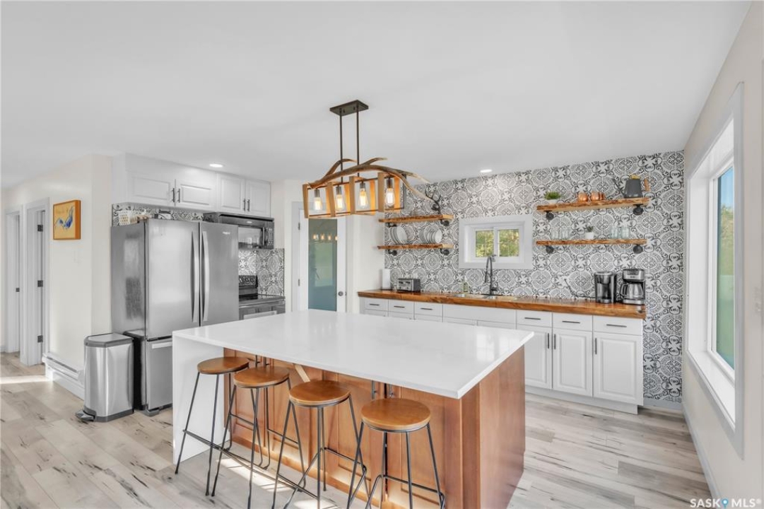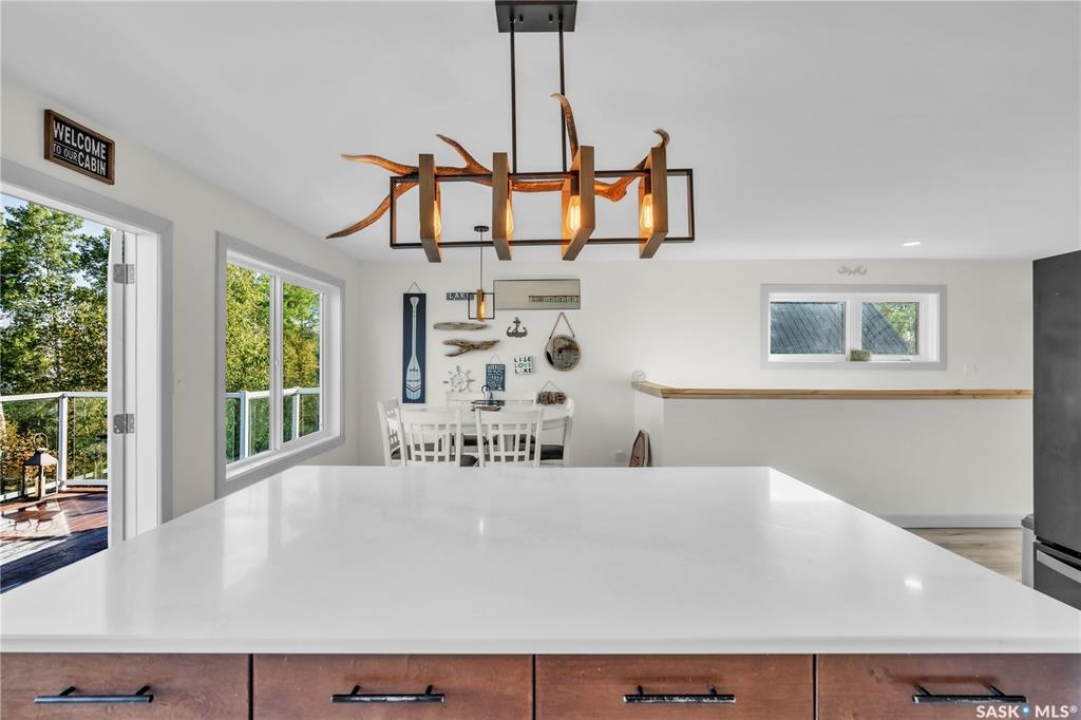 Tucked into a quiet subdivision on Murphy Lake, this stunning year-round home offers the perfect blend of comfort, privacy, and lake life. With three bedrooms, two bathrooms, and a separate bunkhouse for guests, this property was designed for making memories. The main floor features the primary bedroom with access to a four-piece bathroom and laundry. The bright open kitchen is the heart of the home, showcasing live-edge wood shelving, a large quartz island, and expansive windows with lake views and fill the space with natural light. The walkout basement adds two additional bedrooms, a three-piece bathroom, a thoughtfully designed bar area, and a spacious family room centered around a cozy wood stove, perfect for chilly mornings or a winter escape. Outside, the beautifully landscaped yard invites you to relax and entertain. A custom stamped concrete walkway leads to a fire pit area and outdoor kitchen ready for your BBQ and big screen TV. The 15' x 19' bunkhouse creates a private retreat for overnight guests or teenagers, while mature trees on both sides of the property provide exceptional privacy. A private path leads directly from the home to Murphy Lake, where you can easily launch your boat off your very own dock or spend the day fishing, cruising, or paddle boarding. Serviced by a cistern and septic system, this property is located approximately 1.5 hours north of Lloydminster and just over an hour southeast of Cold Lake. The town of Loon Lake is only 15 minutes away and offers groceries, restaurants, a medical clinic, and a golf course, with many additional lakes and parks nearby to explore.