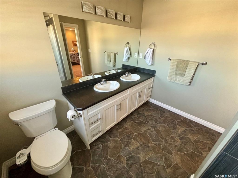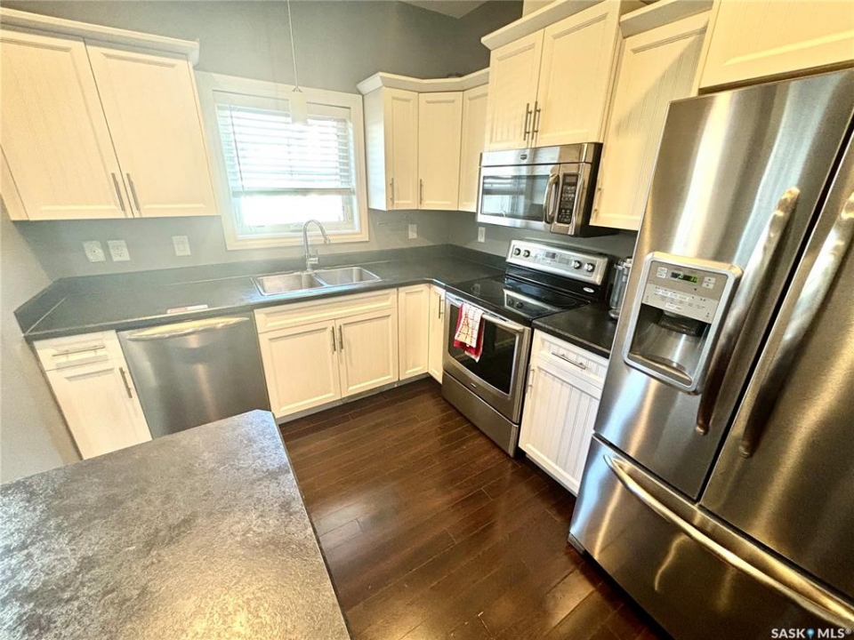 Very nice large unit located in Evergreen. Entering you will find a main floor office / den area, 2 piece washroom and direct entry to the garage. Open concept living, dining and kitchen. The kitchen also features stainless steel appliances and patio door out to the large deck. Upstairs you will find 3 bedrooms with a very large primary suite. It features dual sinks in the en suite and a huge walk in closet. The basement is fully developed with a kitchen area and its own laundry, along with an additional two bedrooms and 4 piece washroom. This unit shows very well and completes complete with central air!