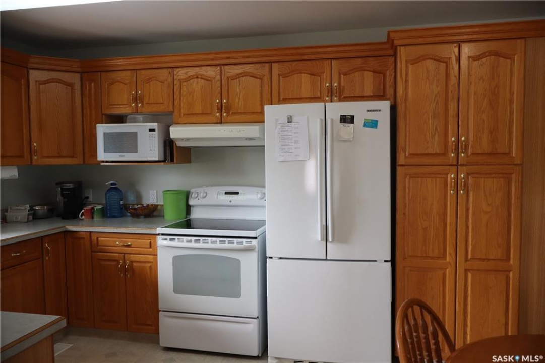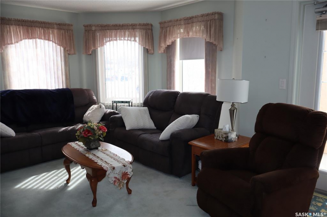 This immaculate condo is located in the Town of Assiniboia and offers custom oak cabinets along with prefinished woodwork. The kitchen includes a pantry and a lazy Susan, complemented by an open layout. The primary suite features a half bath and a walk-in closet. A large laundry room with storage room is a great convenience. Each suite has its own natural gas forced-air furnace. Heated underground parking and storage are included, and there's convenient access via an elevator entrance. Enjoy stunning views of downtown Assiniboia from both the windows and the balcony. This pristine property is move-in ready and has been carefully maintained for many years. The furniture is negotiable with the sale. Quick possession available.