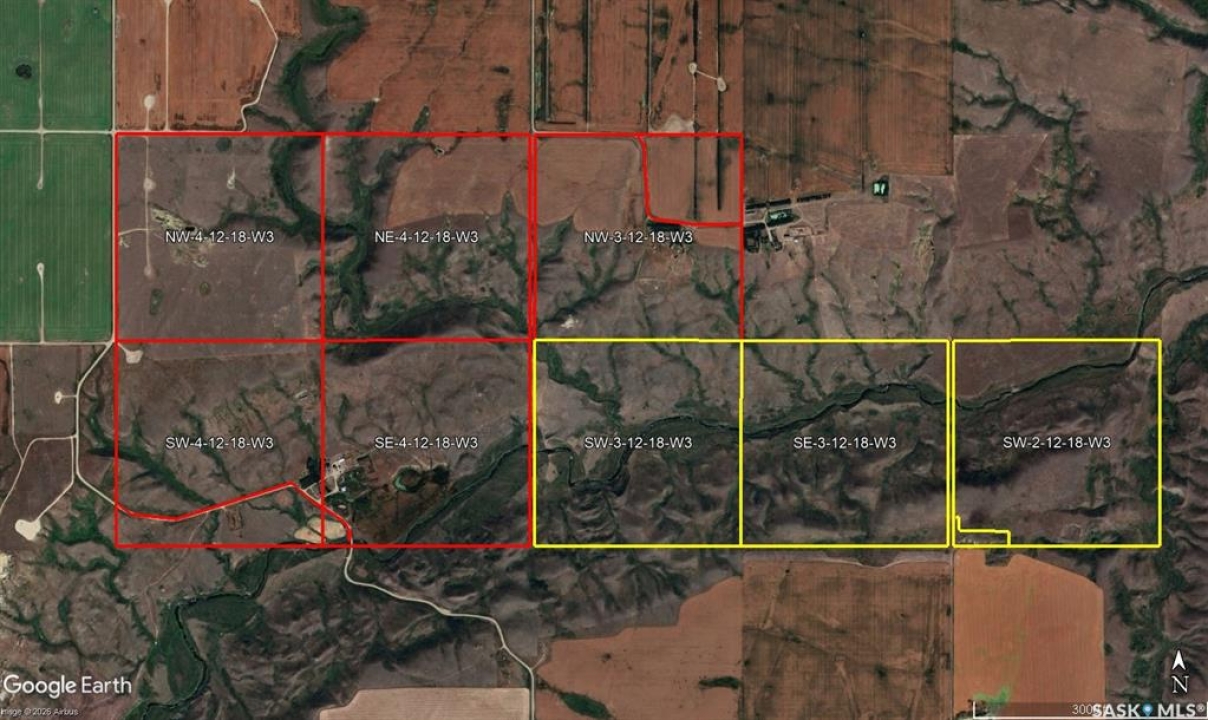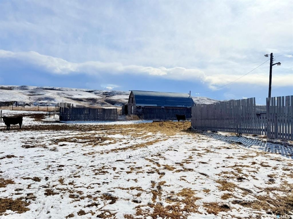 Welcome to the scenic ranch lands of Southwestern Saskatchewan. Located just 13 miles southeast of Gull Lake (population 908) on a well-maintained gravel road off a secondary highway, this historic working ranch offers a rare opportunity to own a productive mixed farming and cattle operation. Tucked into a picturesque valley is the well-kept yard site featuring a 1,044 sq. ft., 3-bedroom home, barn, corrals, and supporting outbuildings designed for a functional livestock operation. The property spans eight quarters of strategically located land in the RM of Webb No. 138, including five deeded quarters and three provincial Crown lease quarters, totaling 1,262 acres. The Crown lease land is currently leased, and the successful buyer will have the opportunity to apply to Saskatchewan's Ministry of Agriculture to have the leases transferred, subject to approval. The property also benefits from five surface leases providing additional annual revenue. Infrastructure is well established with ample fresh water, power service, maintained fencing, cattle guards, hydrants, water troughs, and working corrals, making this a ready-to-operate ranch setup. The area is also known for sand and gravel deposits, and the property may present future aggregate resource potential, subject to buyer verification. House Updates & Improvements • 2024 – New siding, most windows, and doors • 2022 – New shingles, fascia, and soffit • 2021 – New basement bathroom with shower and updated electrical panel • Reverse osmosis and water softener systems • High-efficiency furnace Land is available for the 2026 growing season. This is a great opportunity to acquire a productive ranch with strong infrastructure, reliable water, revenue potential from surface leases, and possible long-term resource value in a beautiful valley setting.