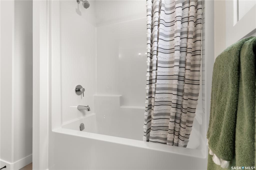 Discover this stunning 2,213 sq ft two-story brand-new build in Pilot Butte. This elegant home features a triple front-attached garage and a separate side entrance, offering both convenience and curb appeal. As you step inside, you're welcomed by an open and spacious floor plan, perfect for modern family living. The front entry welcomes you with a defined foyer and coat storage, leading to a versatile den/bedroom—ideal for a home office, guest room, or main-floor bedroom. The heart of the home features an open-concept kitchen, dining, and living area. The kitchen is centrally located with a large island, ample cabinetry, and a walk-in pantry, providing excellent workspace and storage. It flows seamlessly into the dining area and spacious living room, which is anchored by an electric fireplace. A conveniently located main-floor bathroom includes a tub/shower combo, making it ideal for guests or family use. The mudroom off the entry offers built-in storage and functionality for busy households. Upstairs, the primary bedroom is generously sized and features a walk-in closet and a private ensuite with dual sinks and a walk-in acrylic shower, creating a true retreat. Three additional bedrooms are well proportioned and thoughtfully placed, offering flexibility for family, guests, or home office use. Two bedrooms are located at the front of the home, while another is set toward the rear, providing excellent separation and privacy. A centrally located family room offers a perfect secondary living space for relaxing, homework, or movie nights. The upper-level laundry is conveniently positioned near the bedrooms. A full four-piece bathroom serves the secondary bedrooms, and linen storage is neatly incorporated for added practicality. (PST/GST are included within purchase price). Note: Interior photos are from a previous build of the same model; finishes and colours may vary.