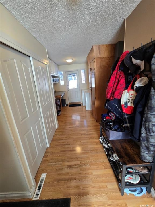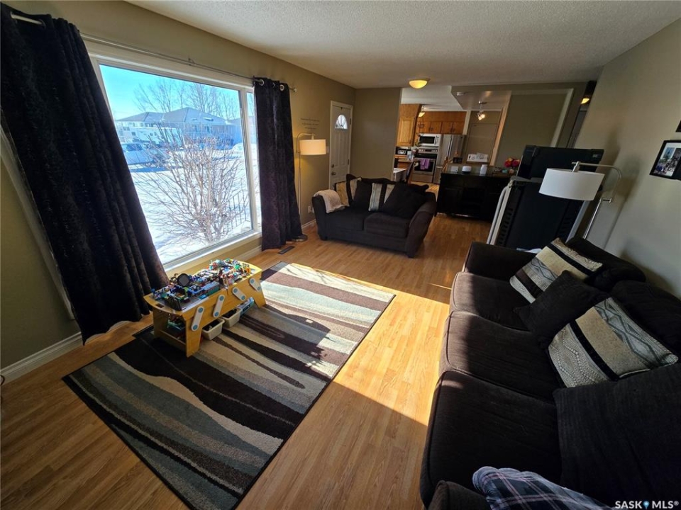 Welcome to 420 Martin Crescent in Sedley, Saskatchewan, a friendly prairie community located between Regina and Weyburn, offering great local amenities including a K–8 school, hockey rink, daycare, and active community atmosphere. This stylish 1,210 sq. ft. bungalow sits on a spacious double+ lot and offers plenty of room for family living both inside and out. The home features five bedrooms, two bathrooms, a heated single attached garage, durable brick and siding exterior, and a large covered back deck overlooking the yard and chain-link dog run. Entry through the garage welcomes you into a practical mud room complete with extensive closet and cabinet storage, main floor laundry, and direct access to the covered deck and backyard. To the right of the entry is a well-sized kitchen equipped with a full set of appliances and ample workspace. Adjacent to the kitchen is a comfortable dining area that flows nicely through the main living spaces. At the far end of the home, the large living room offers abundant natural light through oversized windows and provides a perfect space for entertaining or relaxing. The main floor also includes a 4-piece bathroom, a guest/children's bedroom, and the primary bedroom featuring matching closets. Downstairs opens to a renovated family room ideal for movie nights or a play area for kids. Off the family room are two additional bedrooms and a second bathroom with custom shower and heated floors. A fifth bedroom is framed and boarded with two windows and ready for finishing. The basement also includes a utility room (with storage) plus a second storage space. Storage is a key feature of this home, with additional space in the garage entry nook, mud room cabinets, hallway closets, and basement areas. Outside, the double+ lot provides plenty of green space for kids and pets. With space, functionality, and small-town charm, this home is ready for its next family—schedule your viewing today and see all that 420 Martin Crescent has to offer.