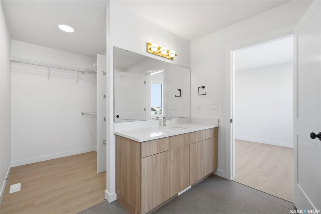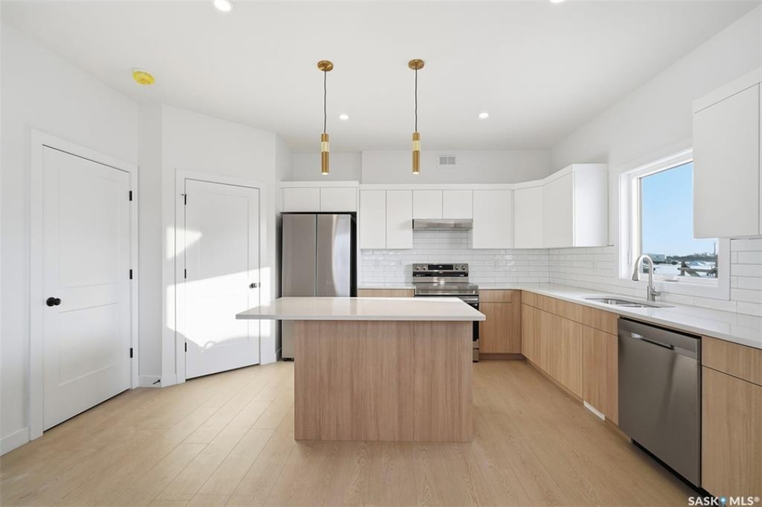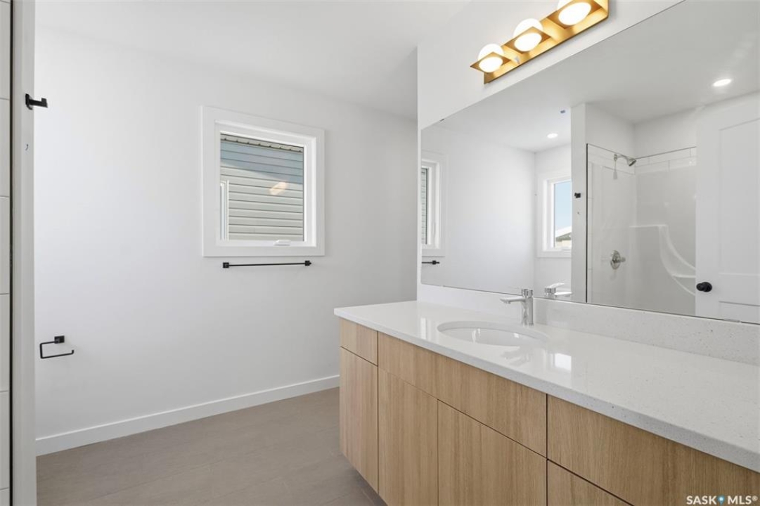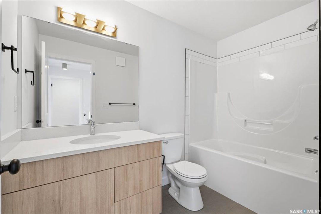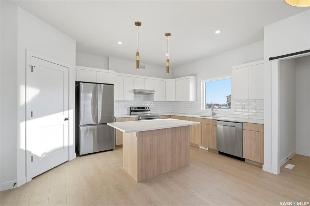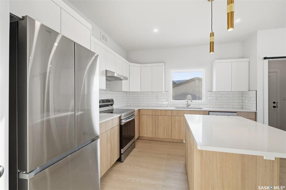 Brand New Two-Storey in Lake Vista, Martensville! Ready for possession in May. Welcome to modern living in Lake Vista—Martensville's newest and most sought-after community! This brand new 1,451 sq. ft. two-storey home blends fresh, airy design with smart functionality, all just steps from scenic ponds, parks, and schools. Enjoy peace of mind with a New Home Warranty and move-in readiness in just 7-8 weeks! Features You'll Love: Bright, open-concept main floor with modern finishes Large kitchen with quartz countertops, tiled backsplash, stainless steel appliance package, oversized island & walk-in pantry 3 bedrooms upstairs, including a spacious primary suite with 3-piece ensuite and walk-in closet Convenient 2nd-floor laundry (washer & dryer included!) Stylish tile flooring in all bathrooms 3 bathrooms total throughout the home Exterior & Lot Perks: Striking curb appeal with upgraded siding, trim, and stonework Double concrete parking pad at the back with paved alley access Mudroom entry from the backyard, prepped for a future double detached garage Corner lot for extra space and light This home offers unmatched value in a prime location—perfect for families or first-time buyers looking for quality, convenience, and style. Don't miss your chance to own in Lake Vista—contact your REALTOR � today to book a private tour!