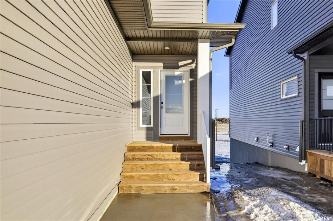 Welcome to the "Richland" model by North Ridge Development Corporation. This 1947 square foot partial walk out 2-Storey home has a main floor consisting of a large kitchen with walk thru pantry and island, a good sized dining and living area, mudroom and 2-pce bath. This floorplan also has a second floor with 3 bedrooms, a bonus room, a 4-piece main bathroom, 4-piece ensuite and laundry. Some unique features, providing a fresh and modern look, include high quality shelving in all closets, quartz countertops, vinyl plank flooring, and an upgraded trim package. This home includes a heat recovery ventilation system, high efficient furnace. As well, an oversized double attached garage, front driveway, front landscaping, and rear deck with aluminum railing. Saskatchewan New Home Warranty. GST/PST included in purchase price with any rebates to builder. Saskatchewan Home Warranty Premium Coverage. *Home is now complete and ready for possession* Call to View!