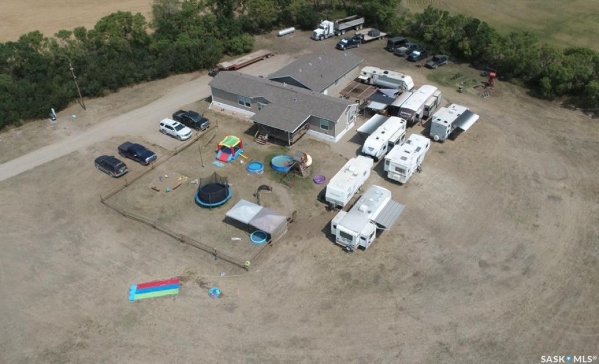 Tucked away on a no-thru road, just 15 minutes from the Town of Outlook with only 3 minutes of gravel...sits this move in ready, 4 acre West Outlook Acreage. This well-designed home features 3 Bedrooms and 2 Bathrooms with a thoughtful separate kids/parents floor plan that offers comfort and functionality. A dedicated playroom area gives families their own space while keeping the main living areas free and inviting. The heart of the home includes an open kitchen with breakfast bar seating just steps from the beautiful deck to take in those stunning country views! A true standout feature of this property is the impressive 30' x 34' heated garage/shop. Fully equipped with a half bathroom, sloped concrete floors, 220v plug, workbench, side-mount opener and even air conditioning, its perfectly set up for projects, storage, or a home-based business! Outdoors, the property continues to impress with a functional cook shack, 7 CAMPSITES (5 serviced with power, water, septic...2 only power and water) a propane hook-up for BBQ and a garden area with a trenched water line- offering both lifestyle and potential income opportunities! This is country living at its best- private, functional and packed with features!
