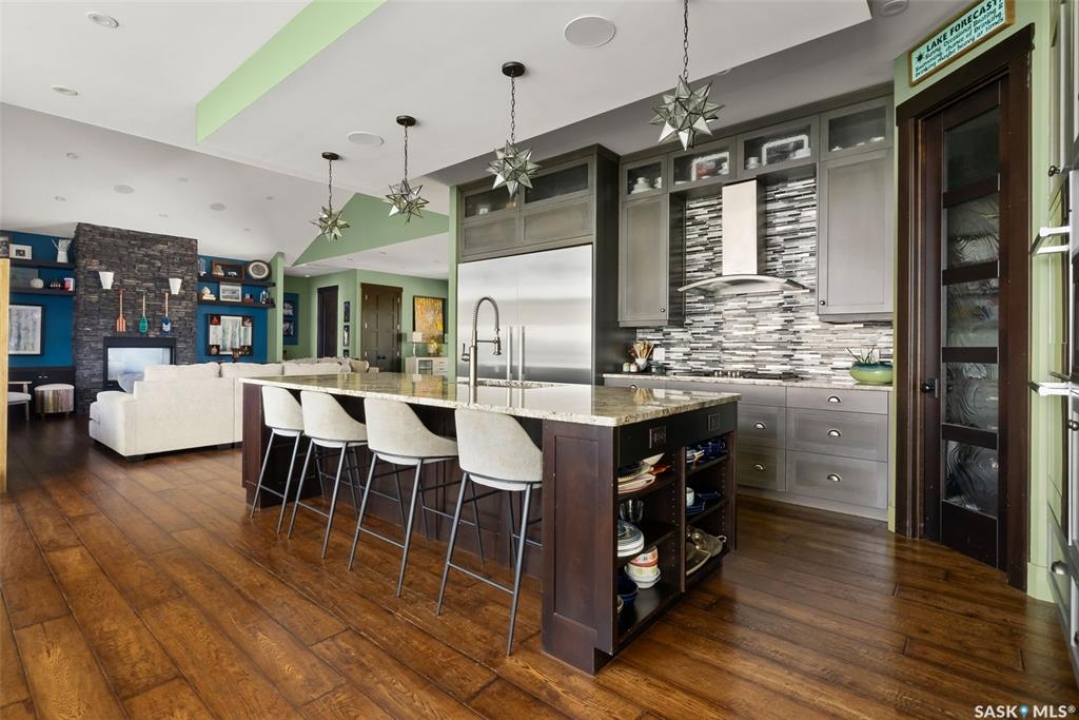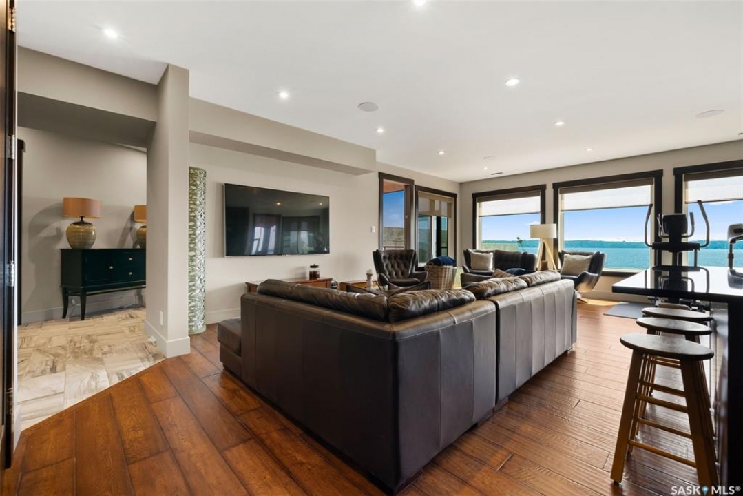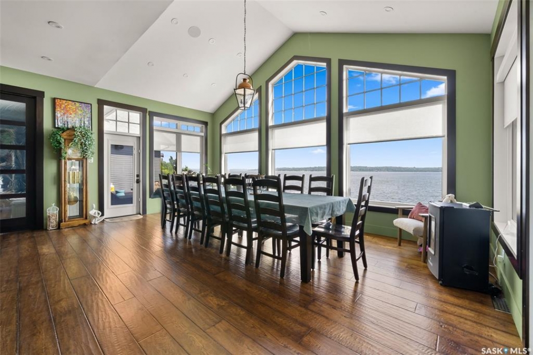 SPRAWLING AND SPECTACULAR LAKESIDE OASIS AT SUNDALE! Nothing is overlooked on the construction & appointments on this fine property. Custom solid cherry millwork by Shaver's Sash and Door including stairs, spiral staircase, doors, trims & cabinetry. Engineered hand-scraped hardwood and ceramic tile throughout most of the main & walkout levels. 10' coffered ceilings on the main floor & 9' ceilings below. LUTRON motorized blinds and full smart home integration: control temperature, lighting, blinds, music, and TVs from your smartphone. All TVs included, powered by a built-in Dolby Atmos sound system. The 4-car garage features heated floors & spray foam insulation. The gourmet kitchen boasts top-tier MIELE appliances including gas cooktop, built-in fridge, oven & dishwasher. Expansive granite island & counters & premium BLUM soft-close drawer system. Primary ensuite features a California walk-in closet, a spa-like steam shower a standalone tub and an advanced heated toilet. All bathrooms include deluxe tiled showers (except powder room). Upstairs, two children's rooms with walk-in closets & a Jack-and-Jill bath. Walkout lower level includes huge rec room, mudroom, 2 additional bedrooms and 2 more bathrooms. Home theatre screen room with HD projector, screen & dual-row seating. Three screened-in porches, outdoor deck, outdoor shower & foot wash station. Structural slab foundation with 170 x 25-foot piles extending beneath the paving stones for unmatched stability. ICF walls, & open web joist (OWJ) flooring system. Full spray foam insulation envelope for exceptional energy efficiency. Exterior finished with Hardie board siding & 50-year shingles. Negotiable docks & lifts offer flexible lakefront enjoyment. Utilities: Reverse osmosis water system serviced by an on-site plant at the resort ($450/month). Reliable E1 sewer system.