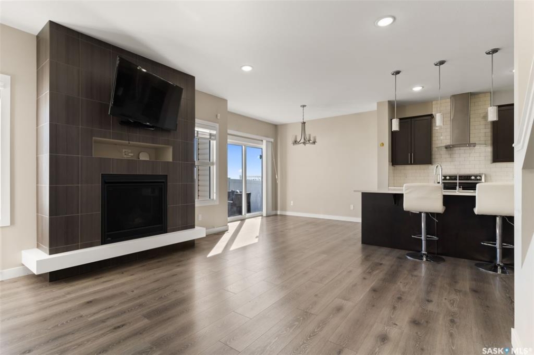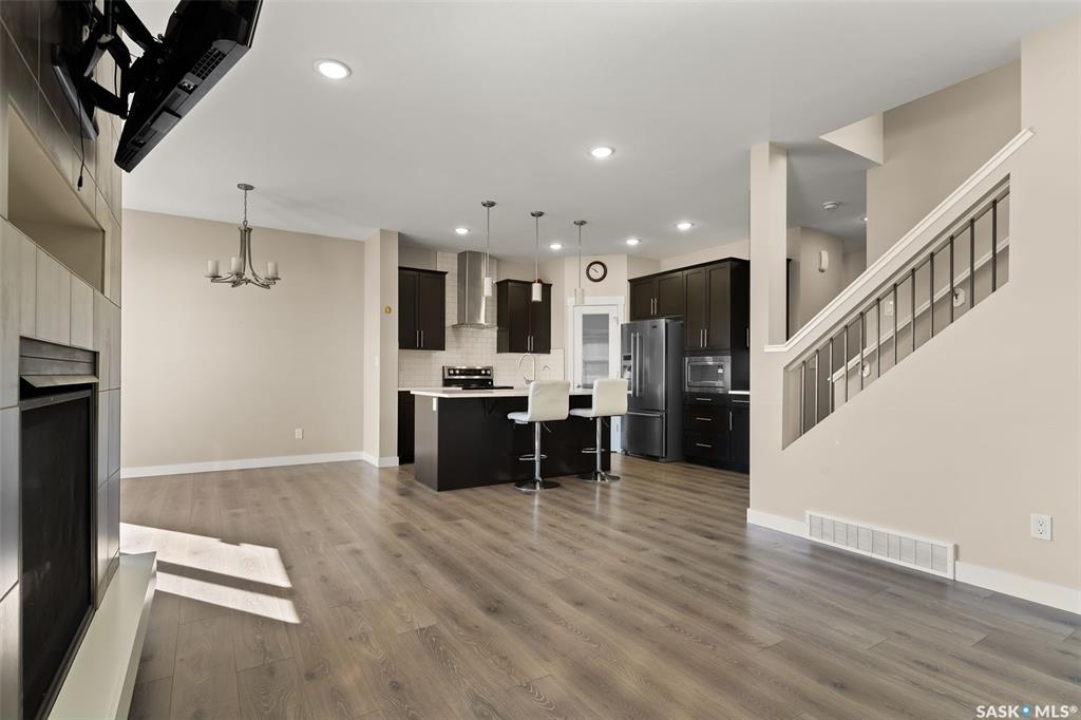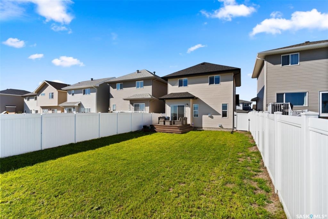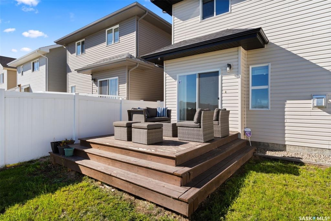 Welcome to this stunning 2-storey home in the highly sought-after Greens on Gardiner! Built in 2017, this well-maintained property offers 1,646 sq ft of thoughtfully designed living space, perfect for families or professionals alike. The bright, open-concept main floor showcases modern finishes throughout, including a stylish kitchen with dark cabinetry, tile backsplash, stainless steel appliances, and a large island with seating—ideal for entertaining. The adjoining dining area provides direct access to the fully fenced backyard, while the spacious living room is anchored by a sleek feature wall with a cozy gas fireplace. Upstairs, you'll find 3 generous bedrooms, including a primary retreat with a 4-piece ensuite, along with a second full bathroom and the convenience of second-floor laundry. The basement remains open for development, offering excellent future potential. Step outside to enjoy the large deck—perfect for summer gatherings—backing open space for added privacy and unobstructed views. Additional features include central A/C, natural gas heating, a double attached fully insulated garage, and a concrete driveway with ample parking. Ideally located close to parks, schools, and all east-end amenities, this move-in-ready home delivers the perfect combination of comfort, style, and location.