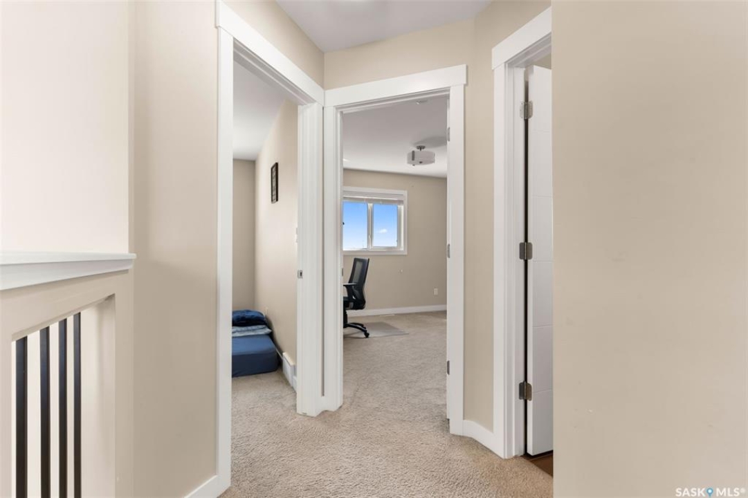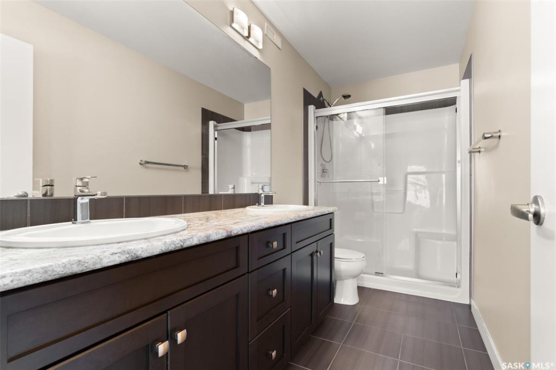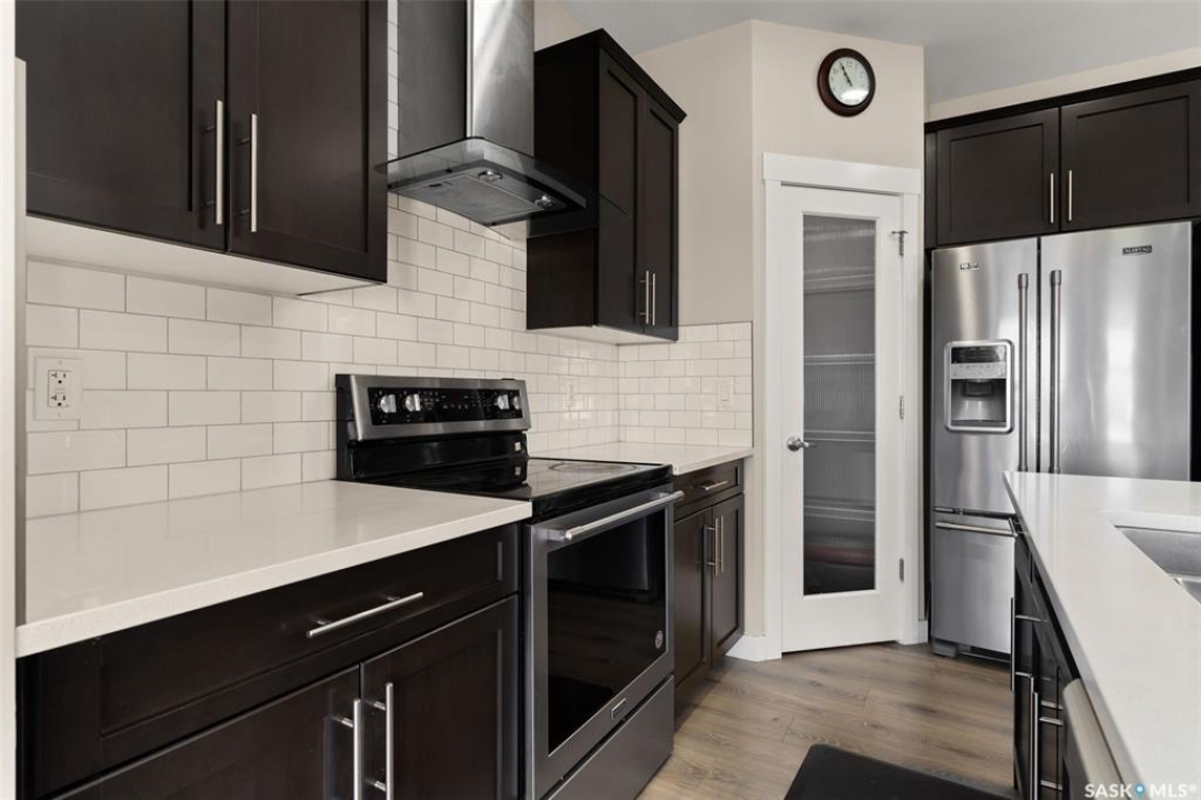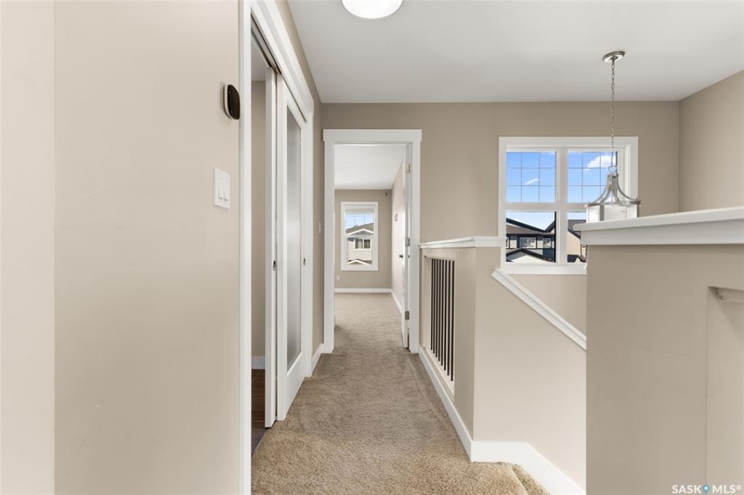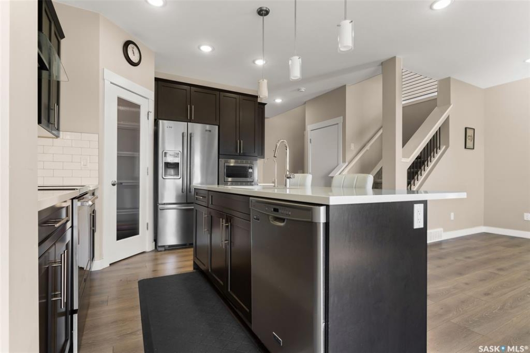 Welcome to this stunning 2-storey home in the highly sought-after Greens on Gardiner! Built in 2017, this well-maintained property offers 1,646 sq ft of thoughtfully designed living space, perfect for families or professionals alike. The bright, open-concept main floor showcases modern finishes throughout, including a stylish kitchen with dark cabinetry, tile backsplash, stainless steel appliances, and a large island with seating—ideal for entertaining. The adjoining dining area provides direct access to the fully fenced backyard, while the spacious living room is anchored by a sleek feature wall with a cozy gas fireplace. Upstairs, you'll find 3 generous bedrooms, including a primary retreat with a 4-piece ensuite, along with a second full bathroom and the convenience of second-floor laundry. The basement remains open for development, offering excellent future potential. Step outside to enjoy the large deck—perfect for summer gatherings—backing open space for added privacy and unobstructed views. Additional features include central A/C, natural gas heating, a double attached fully insulated garage, and a concrete driveway with ample parking. Ideally located close to parks, schools, and all east-end amenities, this move-in-ready home delivers the perfect combination of comfort, style, and location.