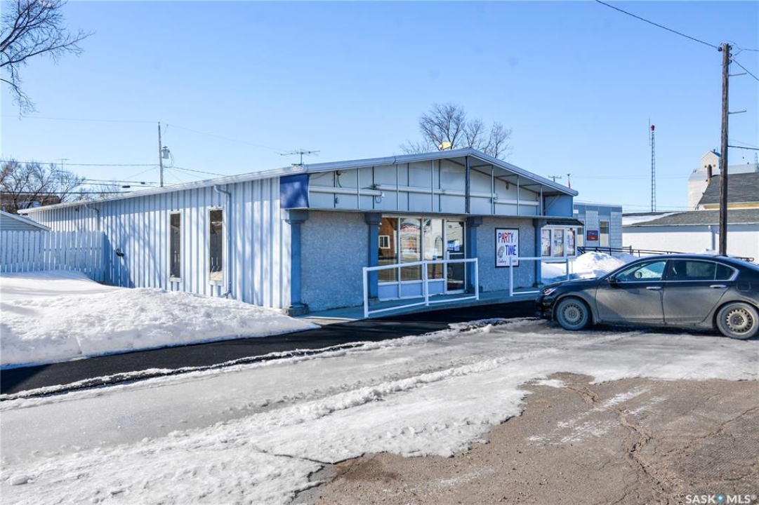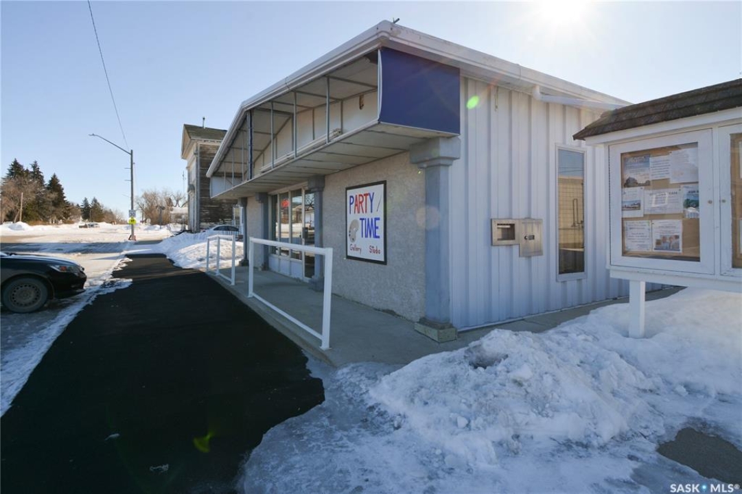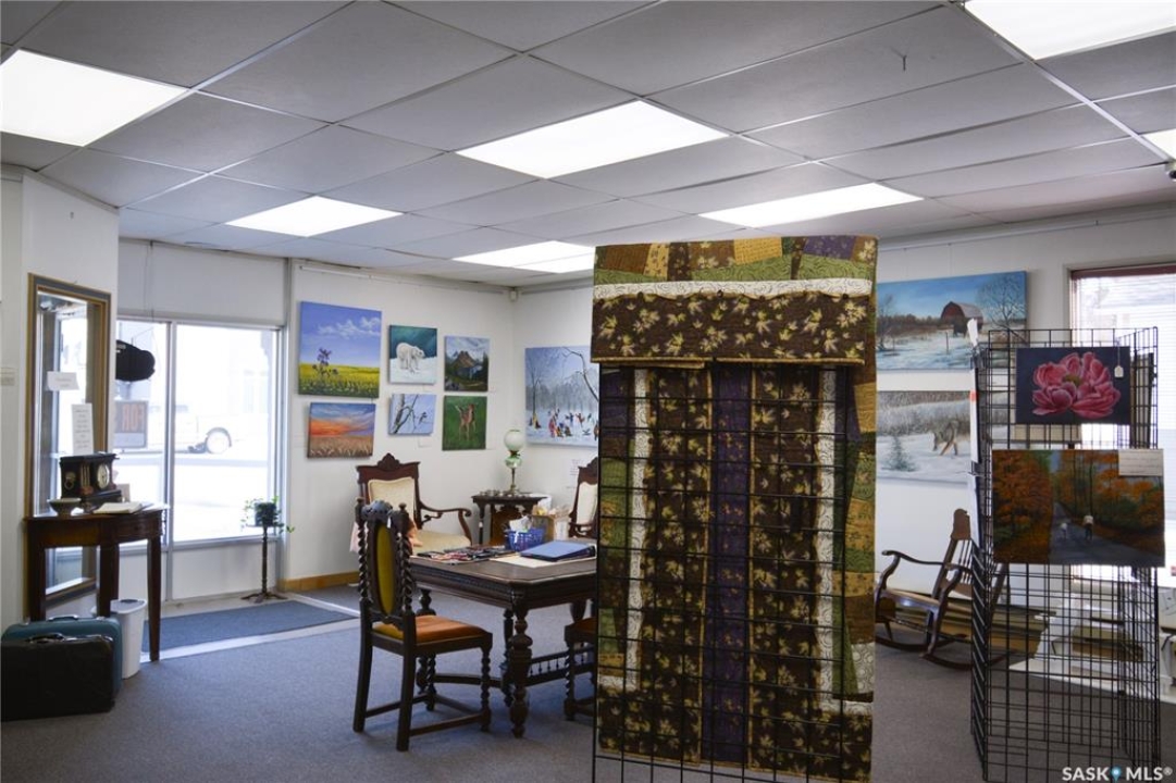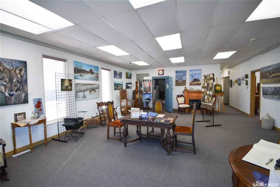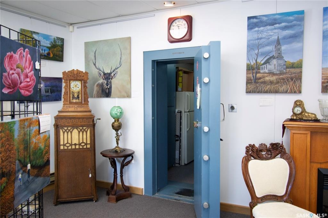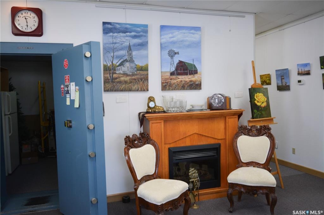 Ideally located near Last Mountain Lake, this versatile commercial property in Govan offers excellent potential for a variety of business ventures. Formerly a credit union and currently operating as an art gallery, the building provides 2,180 sq. ft. of functional space on a generous lot of over 9,000 sq. ft. The exterior features durable, low-maintenance metal cladding, while the rear of the property includes convenient parking with two electrical outlets. A 10' x 12' storage shed is also included, complete with an existing mower. Inside, the front entrance opens into a spacious, open-concept area currently used for art display, offering flexibility for retail, office, or showroom use. This main space connects to a secure safe, two additional rooms, and leads toward the rear of the building. Along the way, you'll find a washroom and utility room. The substantial rear area expands your possibilities further, featuring a second washroom, a custodial room with sink, a kitchen area, and an additional safe. Most lighting throughout the building has been upgraded to energy-efficient LED fixtures. This well-maintained property presents a fantastic opportunity to establish or expand your business in a welcoming community close to the lake.