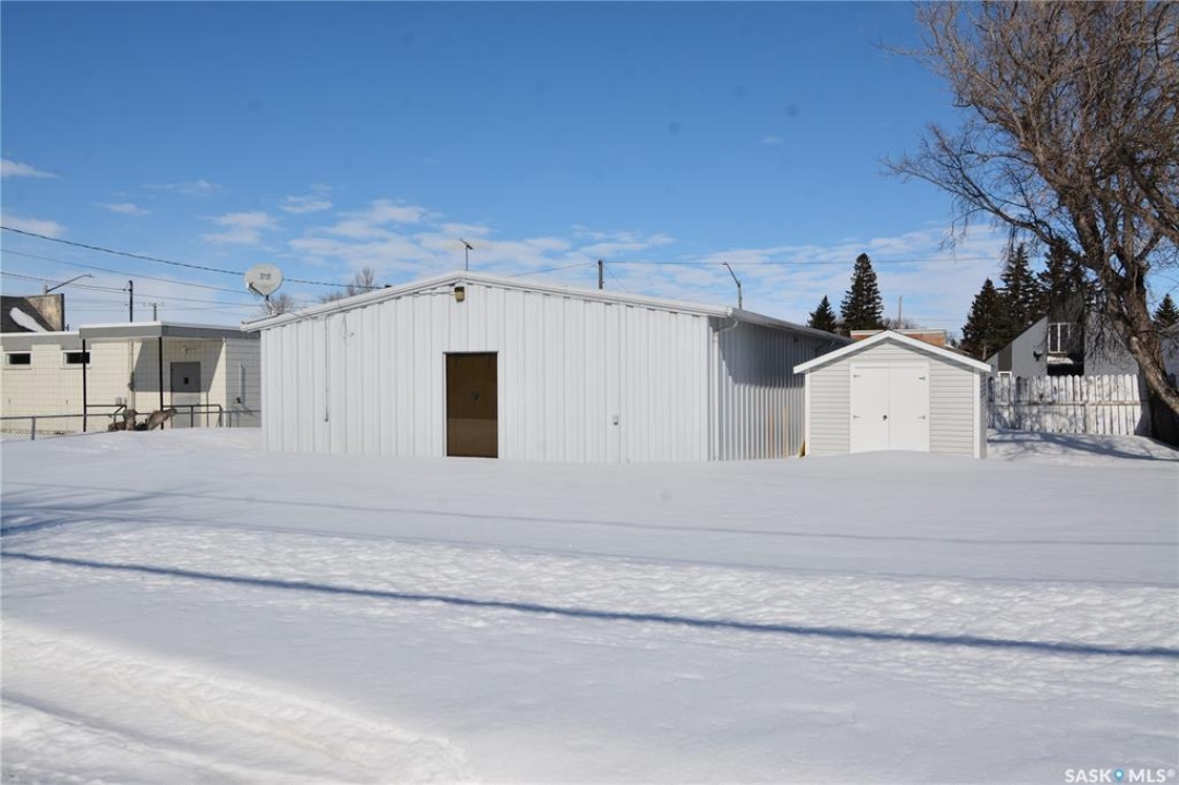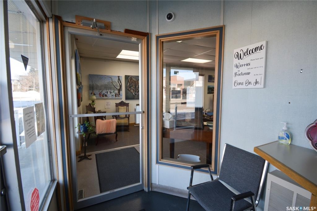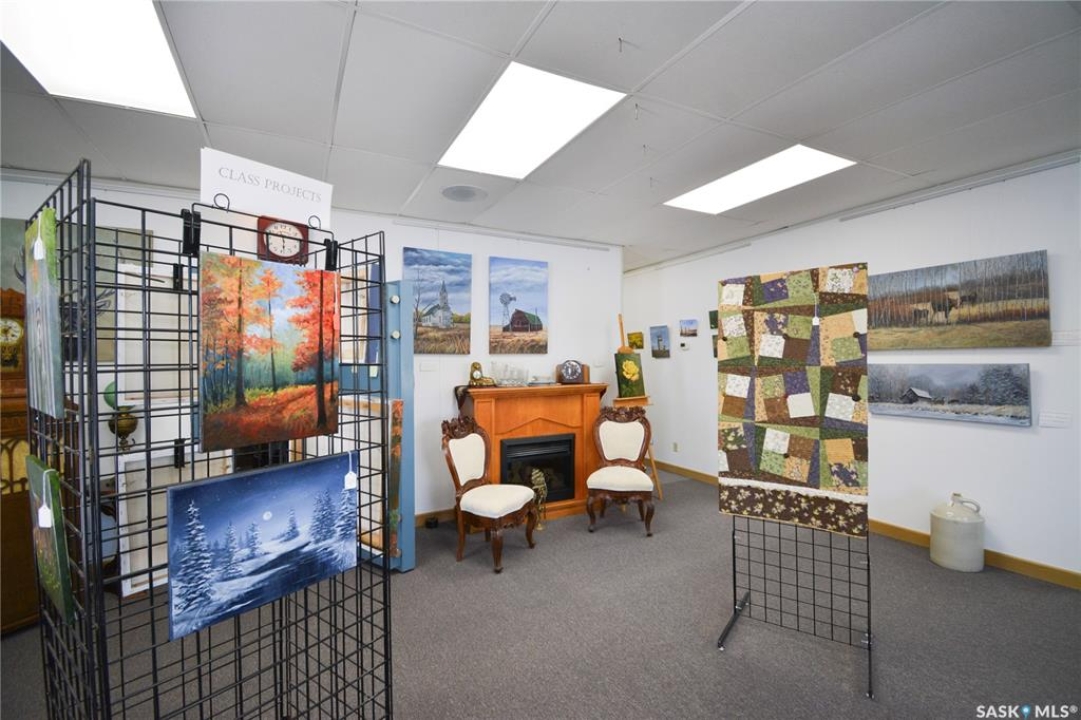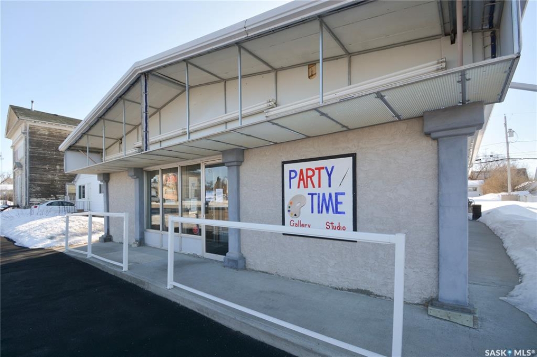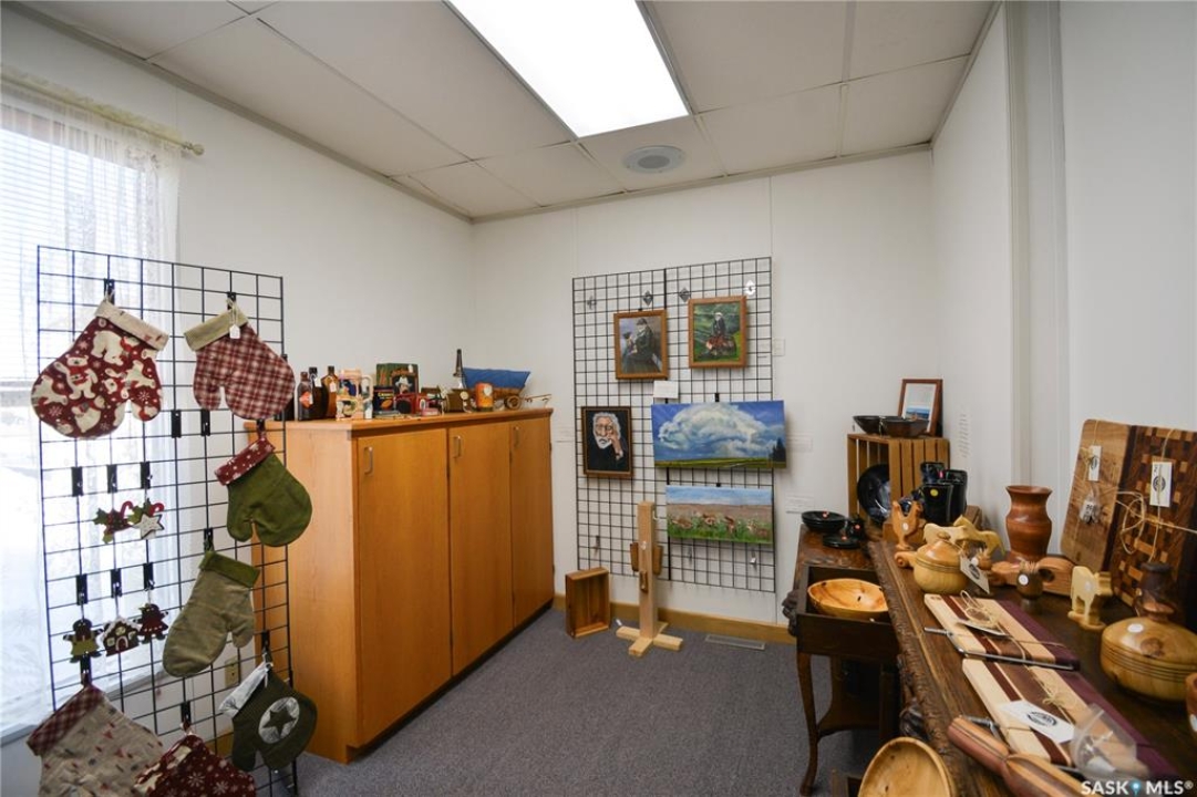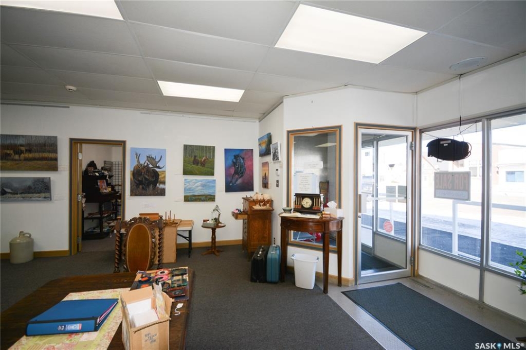 Ideally located near Last Mountain Lake, this versatile commercial property in Govan offers excellent potential for a variety of business ventures. Formerly a credit union and currently operating as an art gallery, the building provides 2,180 sq. ft. of functional space on a generous lot of over 9,000 sq. ft. The exterior features durable, low-maintenance metal cladding, while the rear of the property includes convenient parking with two electrical outlets. A 10' x 12' storage shed is also included, complete with an existing mower. Inside, the front entrance opens into a spacious, open-concept area currently used for art display, offering flexibility for retail, office, or showroom use. This main space connects to a secure safe, two additional rooms, and leads toward the rear of the building. Along the way, you'll find a washroom and utility room. The substantial rear area expands your possibilities further, featuring a second washroom, a custodial room with sink, a kitchen area, and an additional safe. Most lighting throughout the building has been upgraded to energy-efficient LED fixtures. This well-maintained property presents a fantastic opportunity to establish or expand your business in a welcoming community close to the lake.