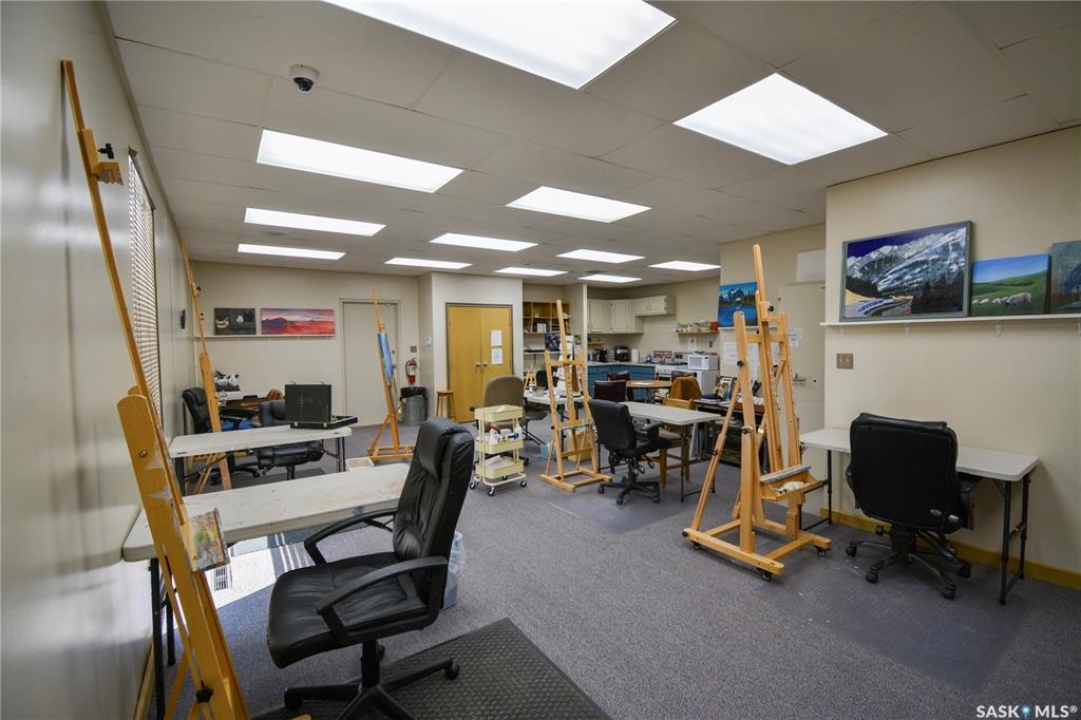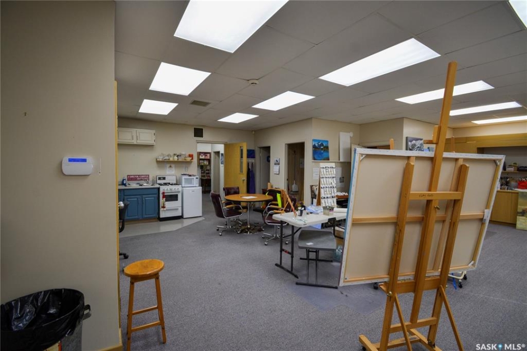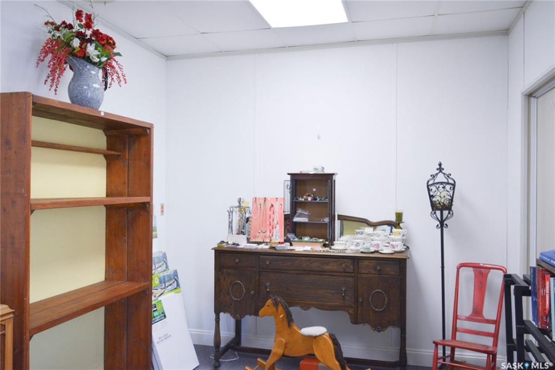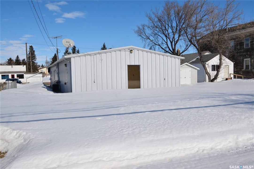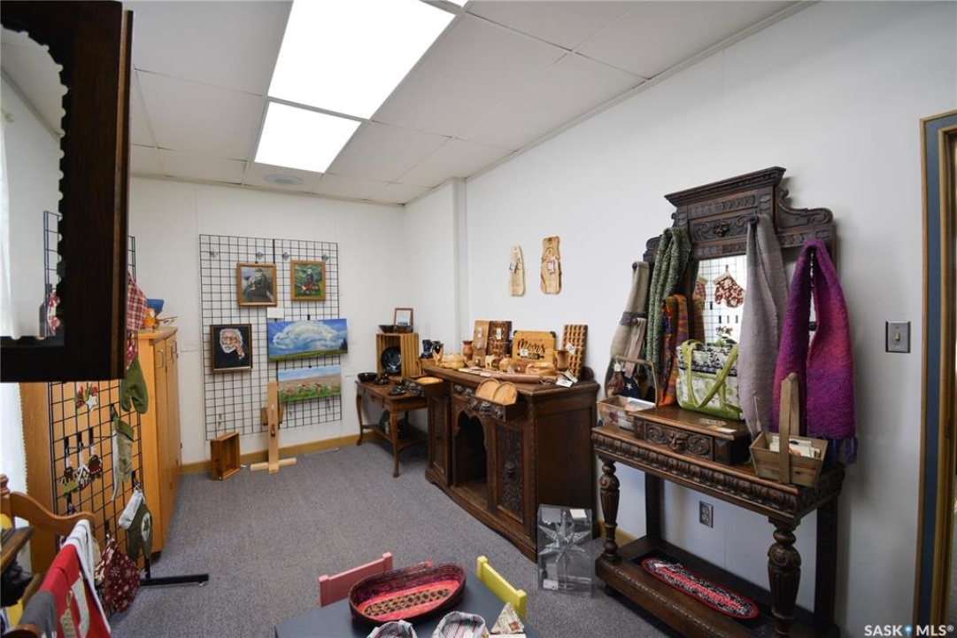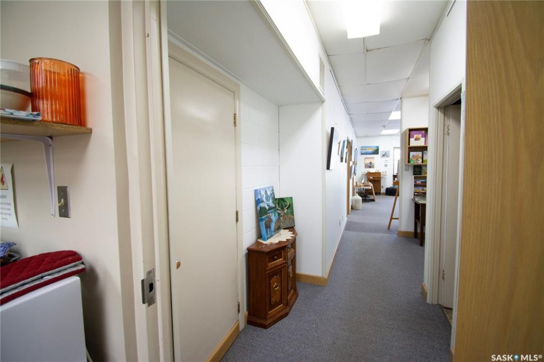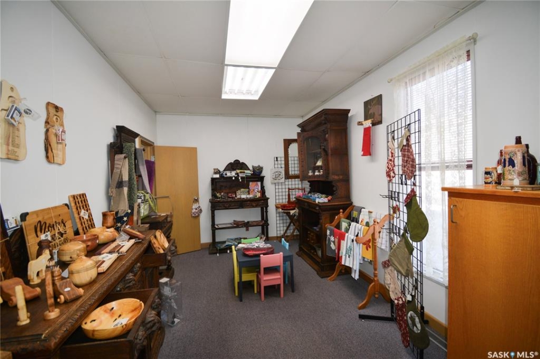 Ideally located near Last Mountain Lake, this versatile commercial property in Govan offers excellent potential for a variety of business ventures. Formerly a credit union and currently operating as an art gallery, the building provides 2,180 sq. ft. of functional space on a generous lot of over 9,000 sq. ft. The exterior features durable, low-maintenance metal cladding, while the rear of the property includes convenient parking with two electrical outlets. A 10' x 12' storage shed is also included, complete with an existing mower. Inside, the front entrance opens into a spacious, open-concept area currently used for art display, offering flexibility for retail, office, or showroom use. This main space connects to a secure safe, two additional rooms, and leads toward the rear of the building. Along the way, you'll find a washroom and utility room. The substantial rear area expands your possibilities further, featuring a second washroom, a custodial room with sink, a kitchen area, and an additional safe. Most lighting throughout the building has been upgraded to energy-efficient LED fixtures. This well-maintained property presents a fantastic opportunity to establish or expand your business in a welcoming community close to the lake.