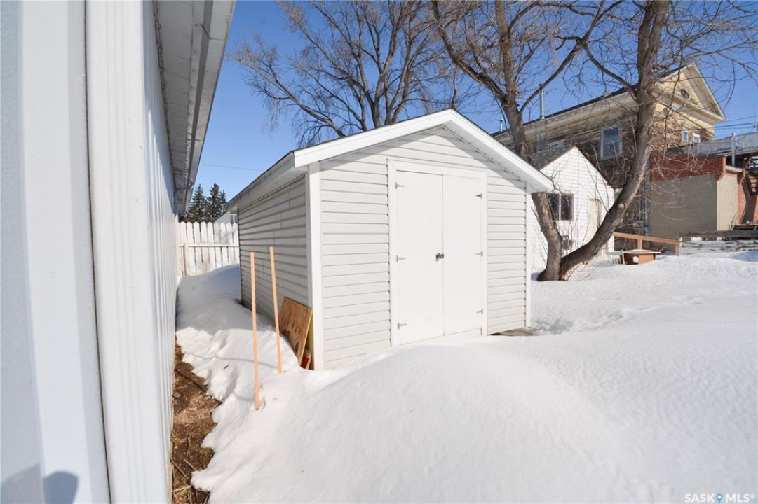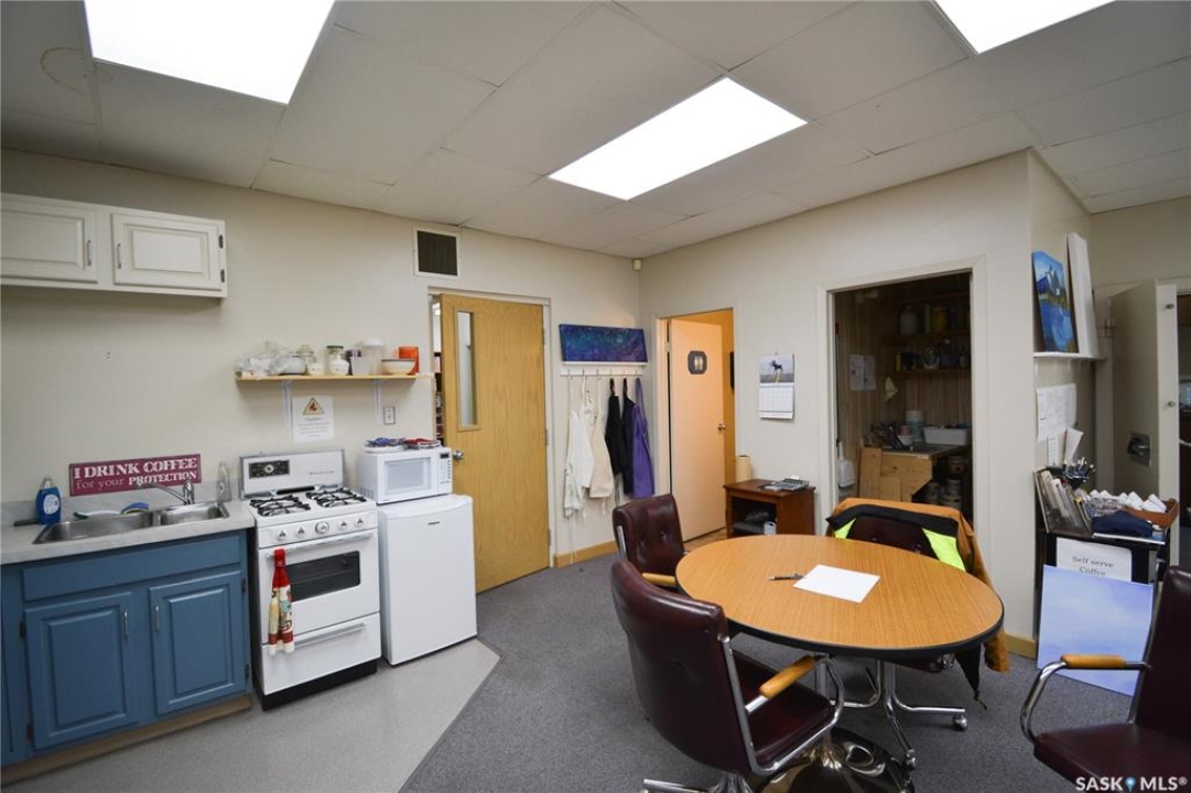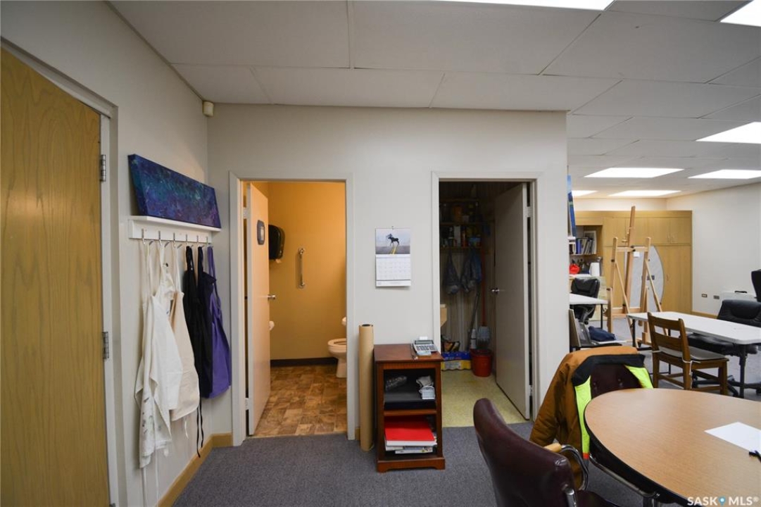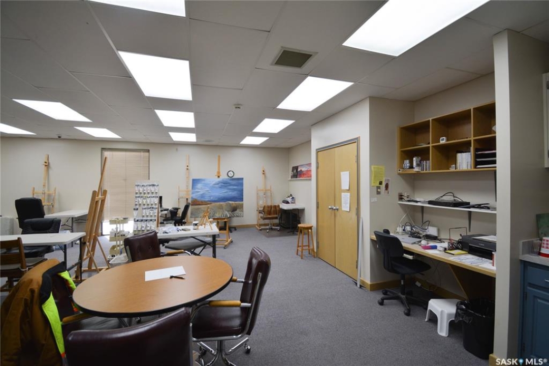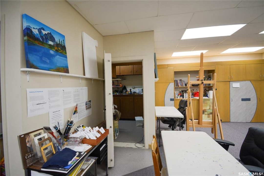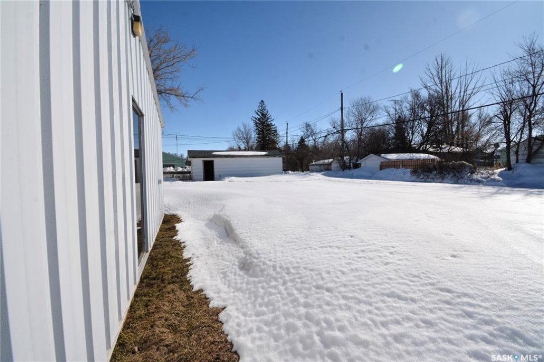 Ideally located near Last Mountain Lake, this versatile commercial property in Govan offers excellent potential for a variety of business ventures. Formerly a credit union and currently operating as an art gallery, the building provides 2,180 sq. ft. of functional space on a generous lot of over 9,000 sq. ft. The exterior features durable, low-maintenance metal cladding, while the rear of the property includes convenient parking with two electrical outlets. A 10' x 12' storage shed is also included, complete with an existing mower. Inside, the front entrance opens into a spacious, open-concept area currently used for art display, offering flexibility for retail, office, or showroom use. This main space connects to a secure safe, two additional rooms, and leads toward the rear of the building. Along the way, you'll find a washroom and utility room. The substantial rear area expands your possibilities further, featuring a second washroom, a custodial room with sink, a kitchen area, and an additional safe. Most lighting throughout the building has been upgraded to energy-efficient LED fixtures. This well-maintained property presents a fantastic opportunity to establish or expand your business in a welcoming community close to the lake.